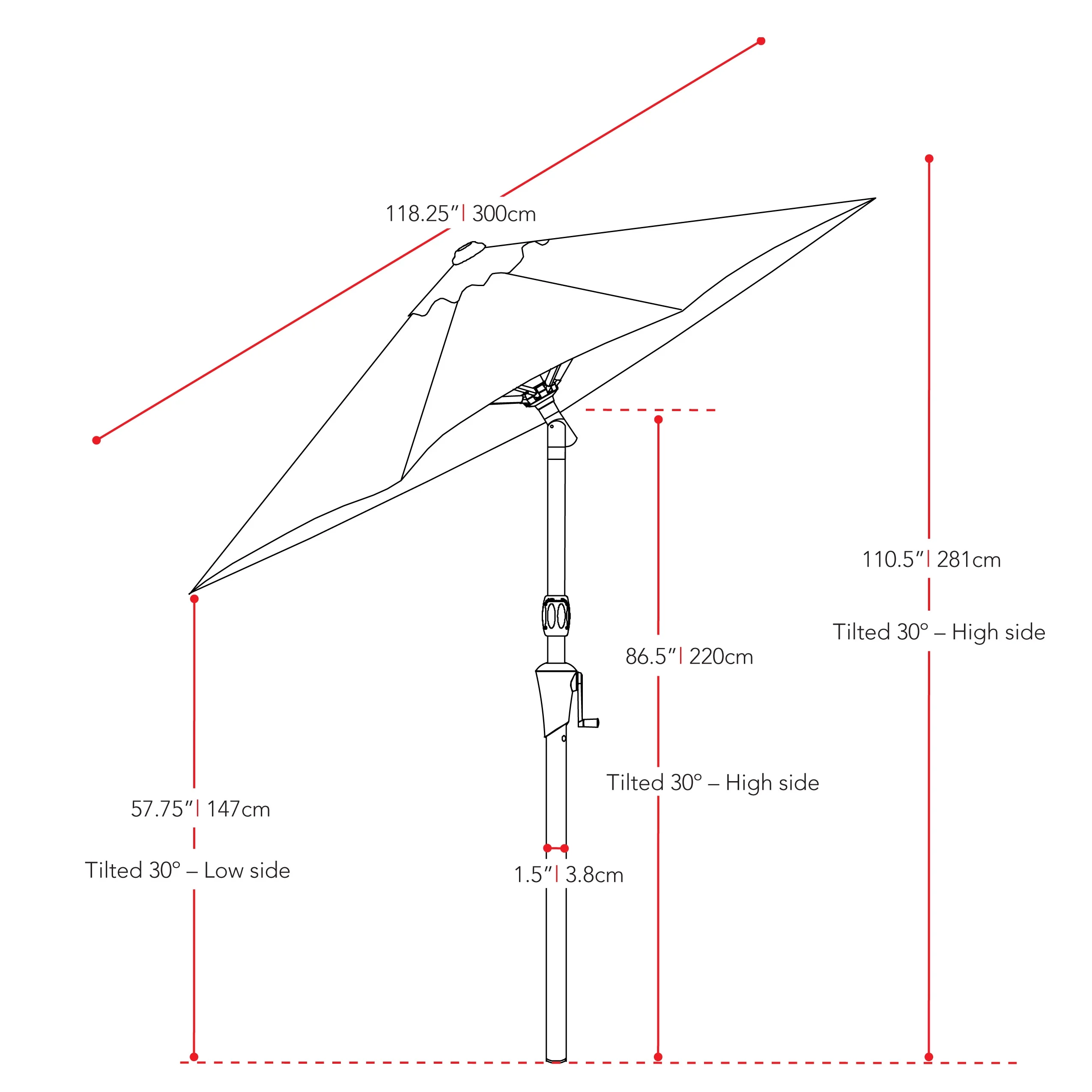 - VERSATILE DESIGN: 3m | 10ft umbrella diameter; 1.5in | 3.8cm pole diameter that fits most patio tables, this round market umbrella is a must-have for your outdoor patio space.