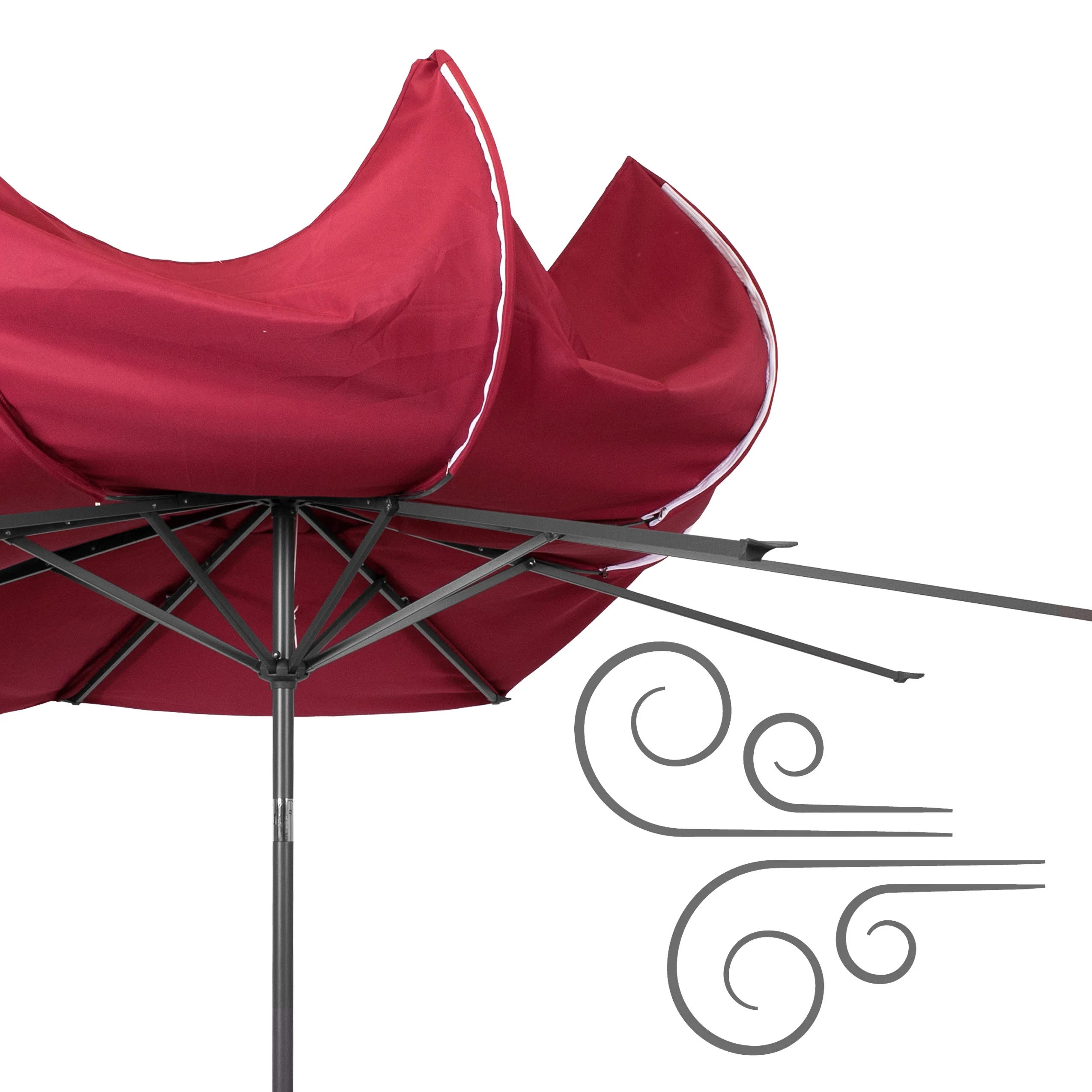 - WIND RESISTANT: With a vented canopy and 8 steel flex arms that bend and release to prevent damage and tipping in strong winds, this outdoor umbrella stands strong in a variety of outdoor conditions.