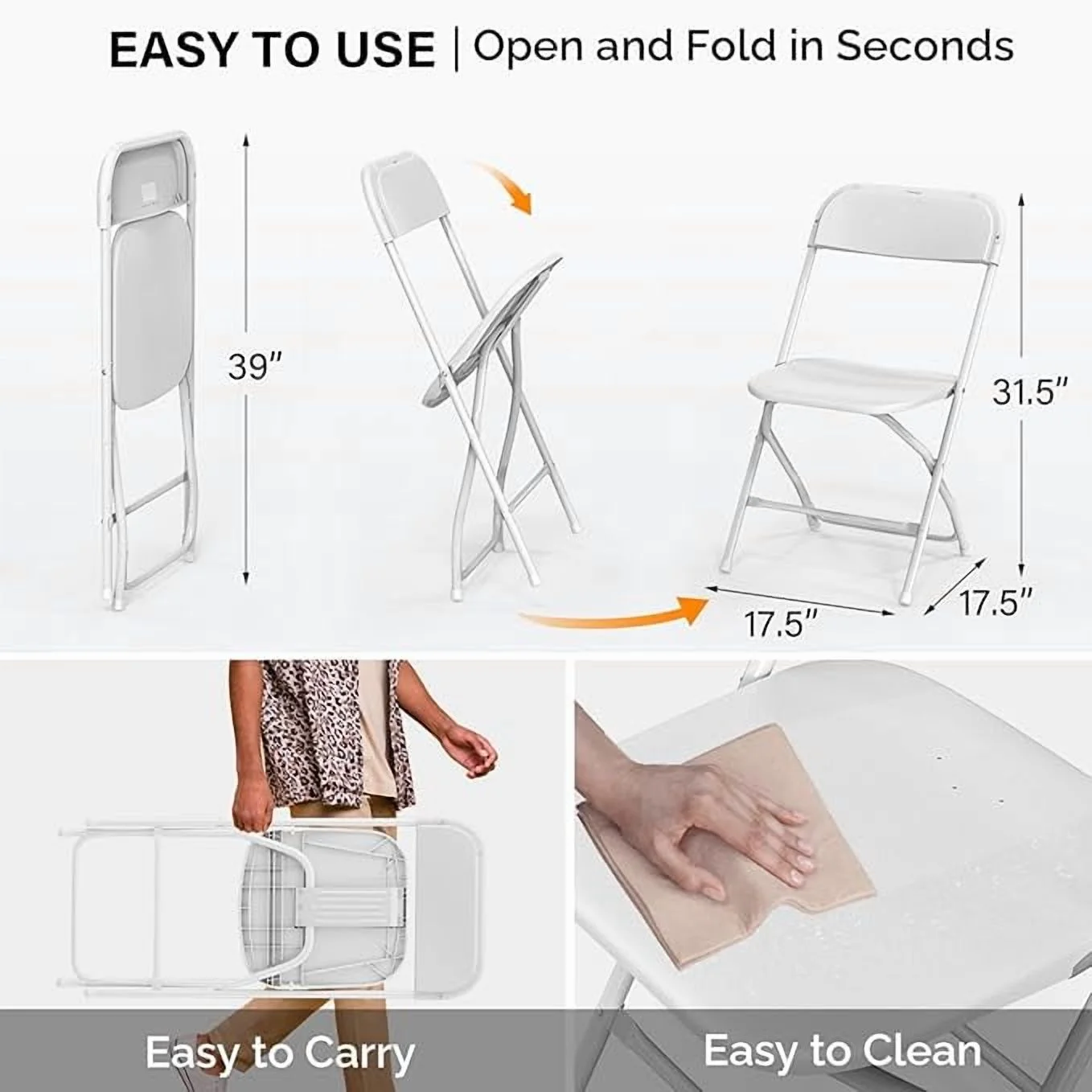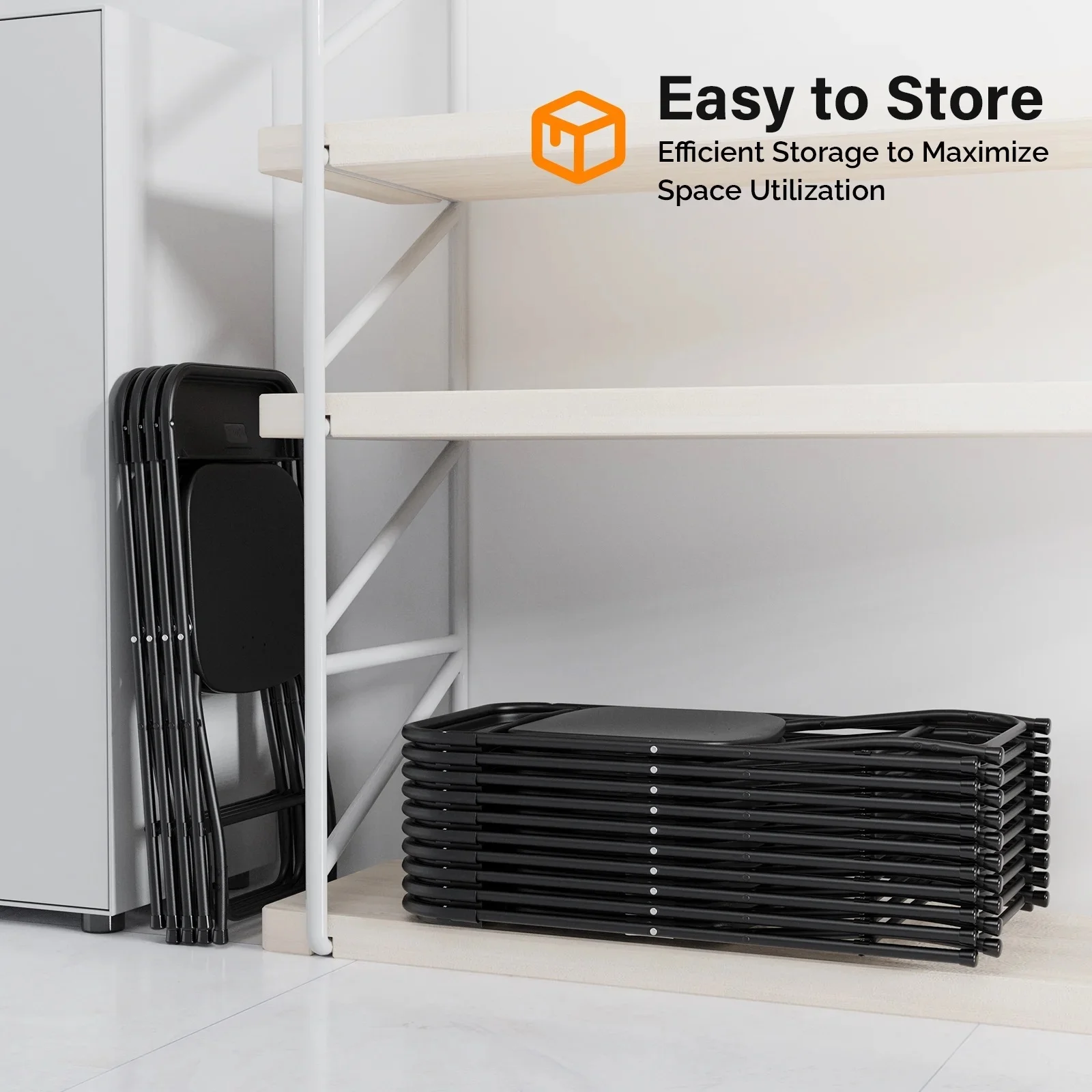 - Super Space-Efficient Design: They fold completely flat in a breeze and lock securely, allowing for easy, compact stacking. Storing them is a cinch in closets, garages, or venues—even with 20 chairs, they will not take up too much room.