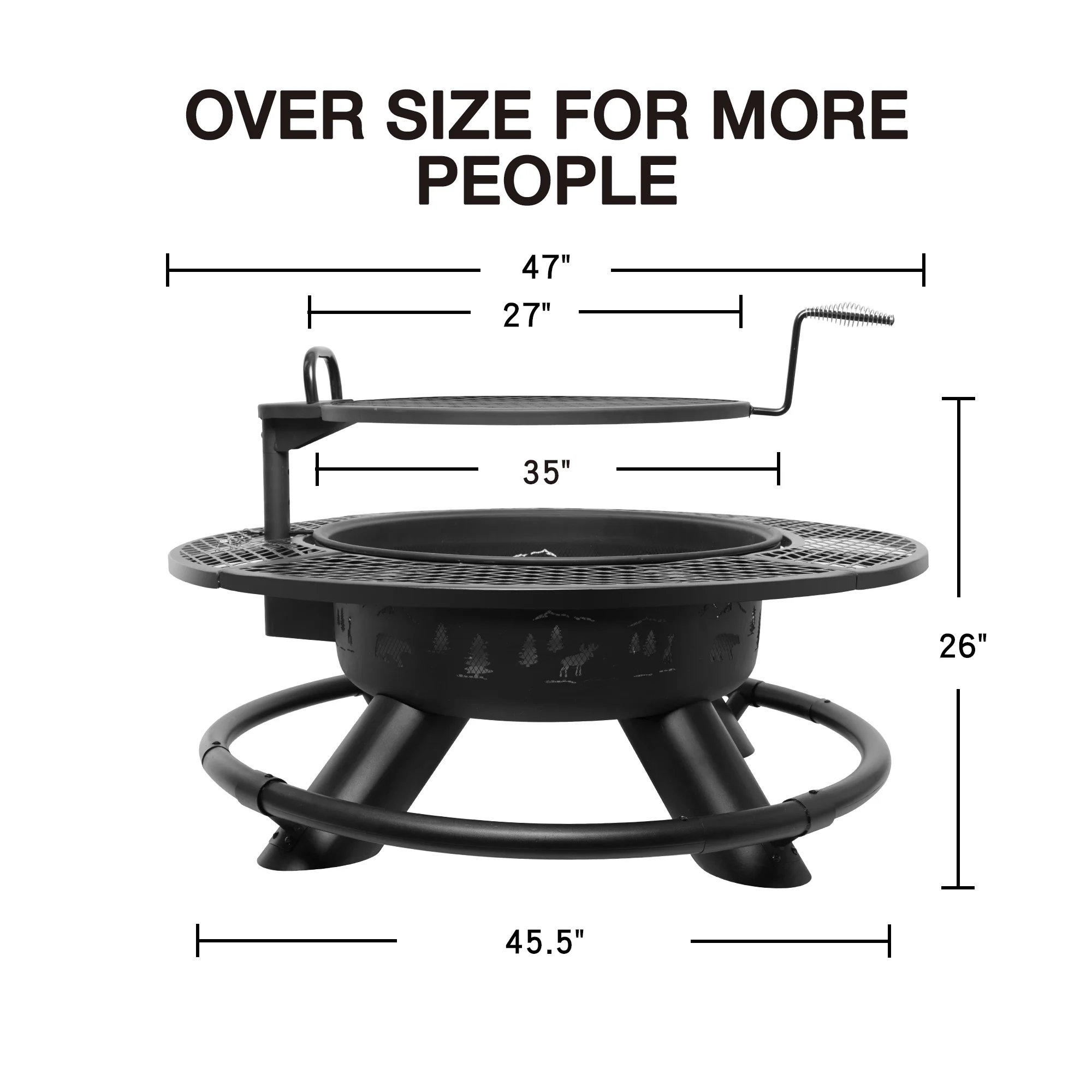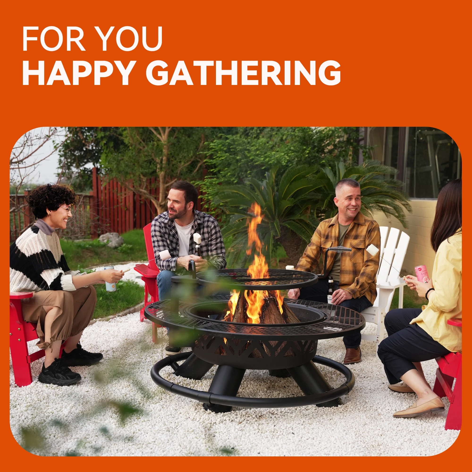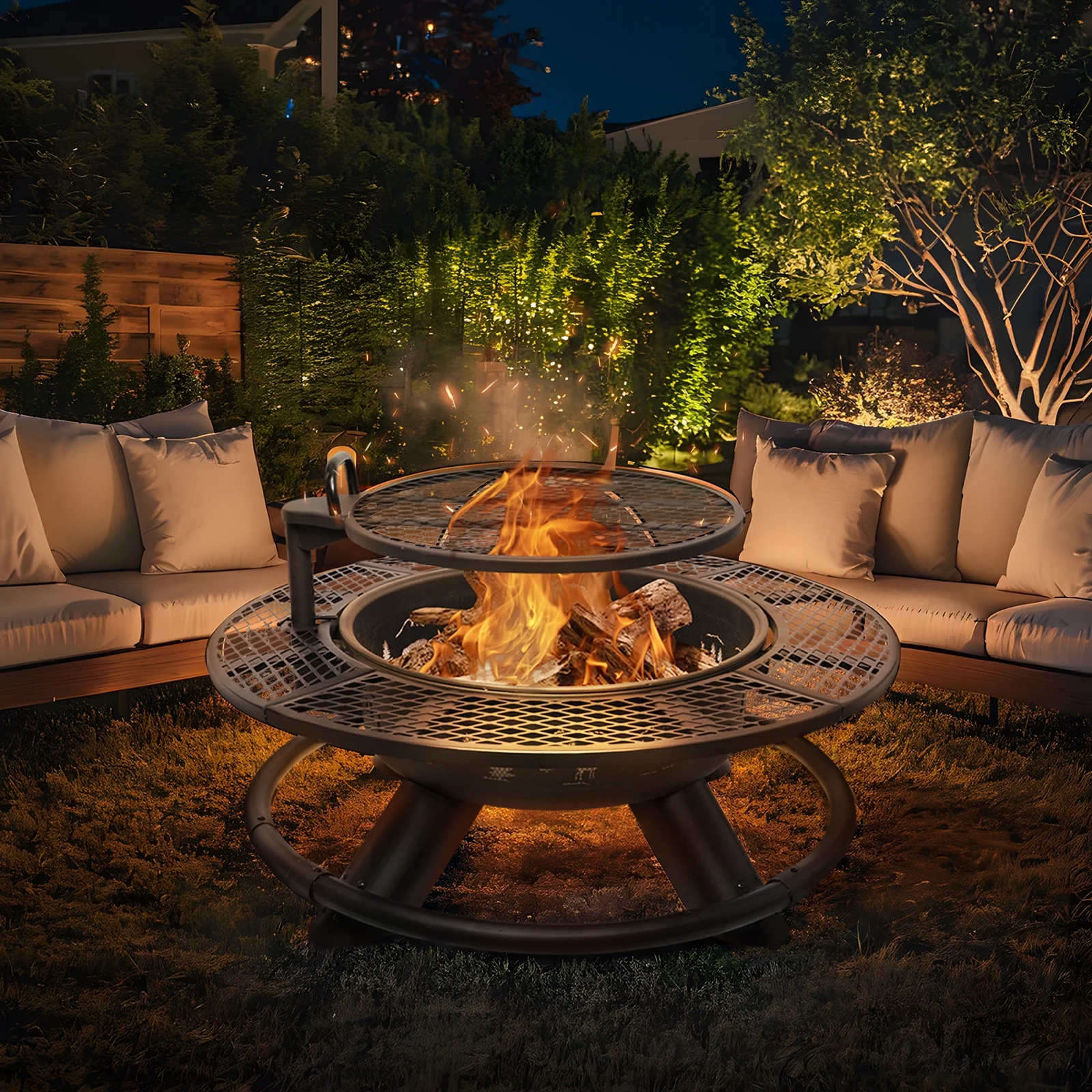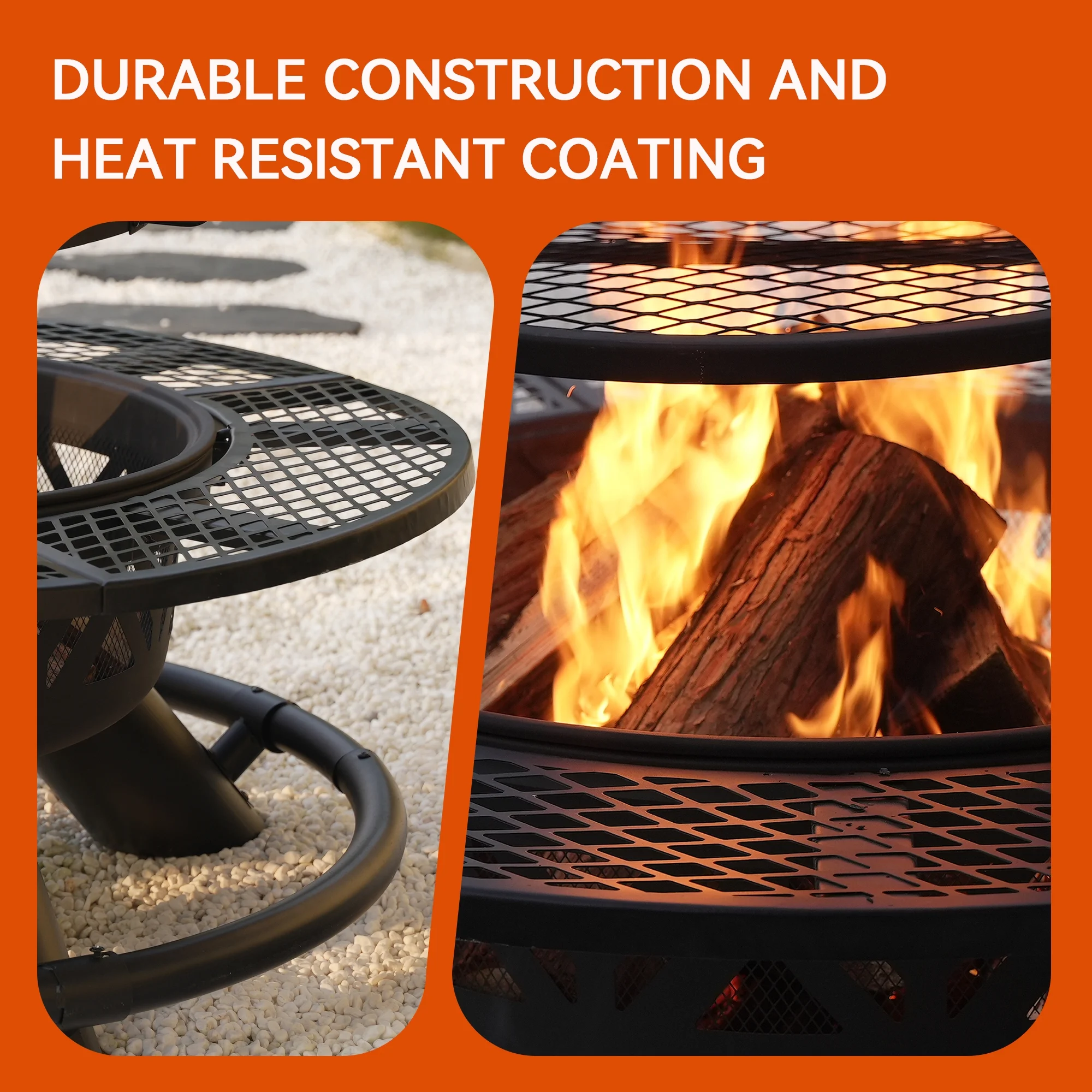 - Safe & Reliable——The grill grate is FDA food-grade tested, ensuring safe cooking. The durable steel fire pit features a high-temperature-resistant surface that withstands intense heat without warping, offering reliable performance.