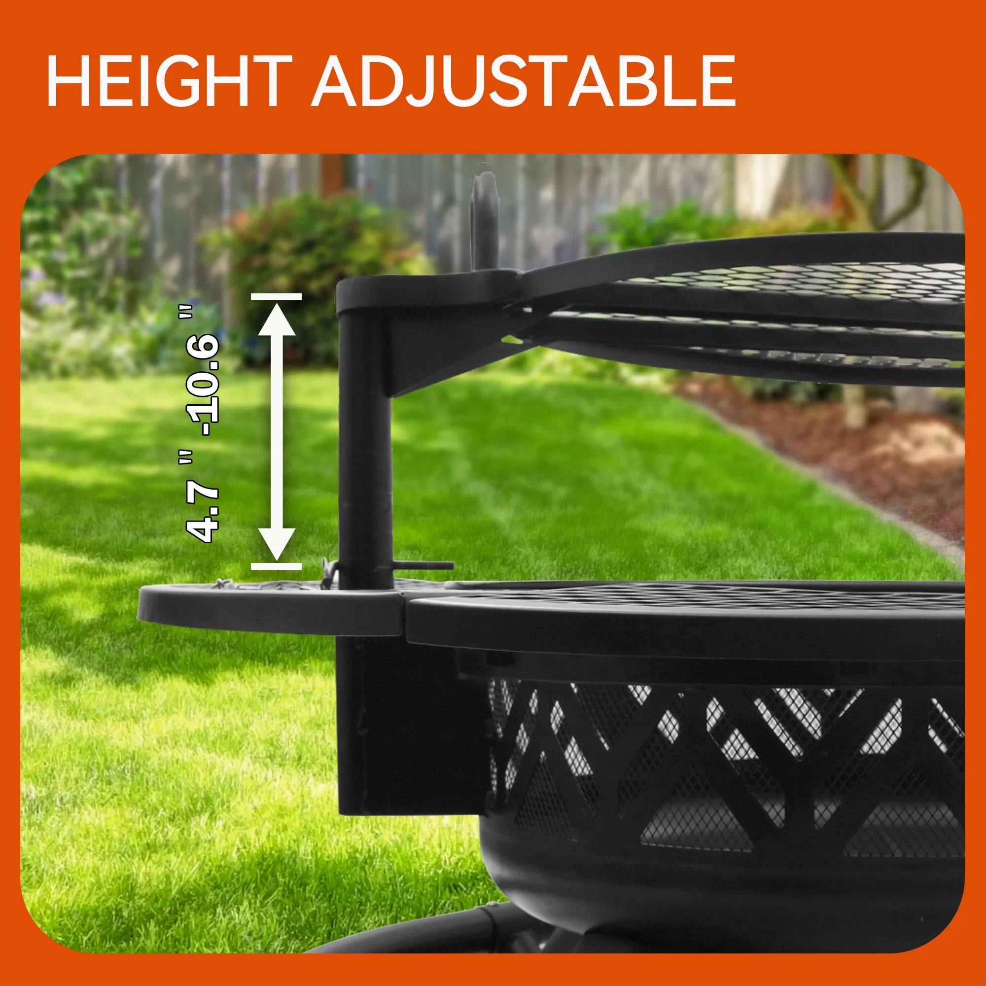 - Practical Swivel Grill——The grill top offers 360° swivel functionality and adjustable height, ranging from 22 to 26 inches, for convenient access. This versatile fire ring is perfect for providing warmth and grilling during camping trips, yard gatherings, outdoor patios, barbecues, bonfires, and more.