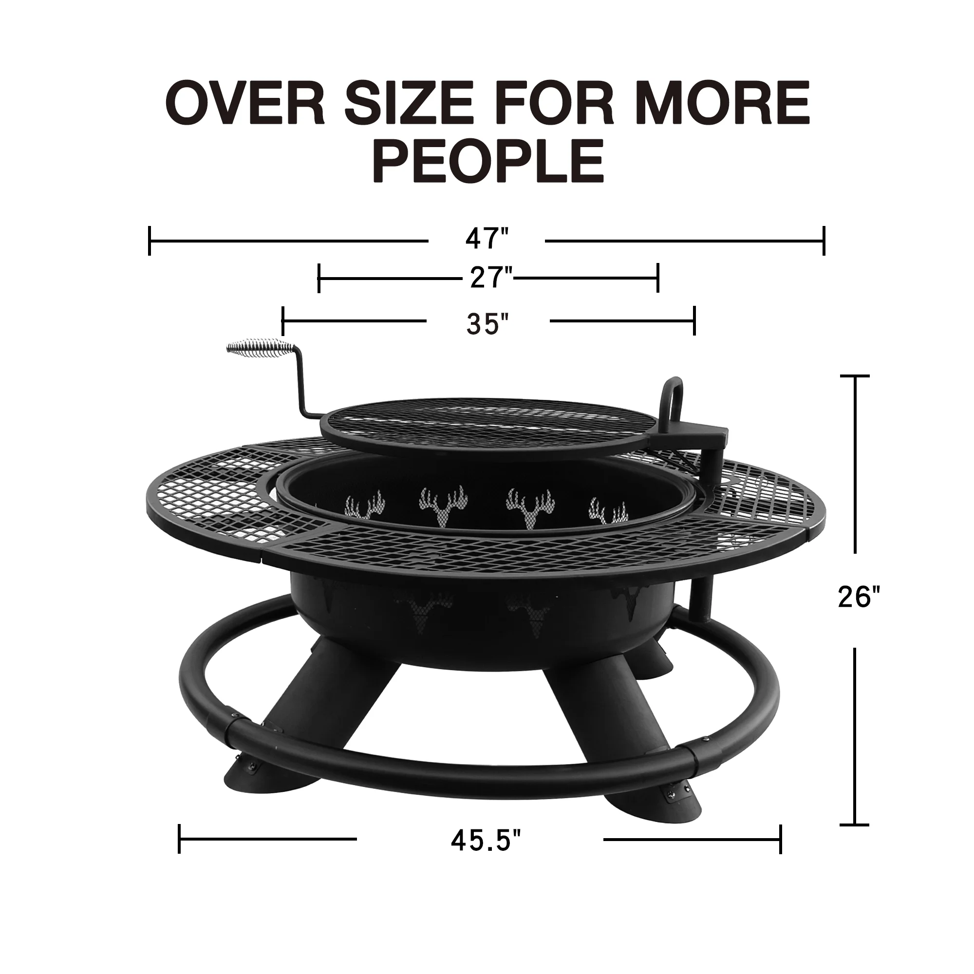 - Extra Large Design ——This generous 47-inch round fire pit stands 26 inches tall and features a 29-inch fire bowl, perfect for burning hardwood. It’s ideal for hosting bonfire parties for 12-14 people, combining style and functionality for memorable outdoor gatherings.