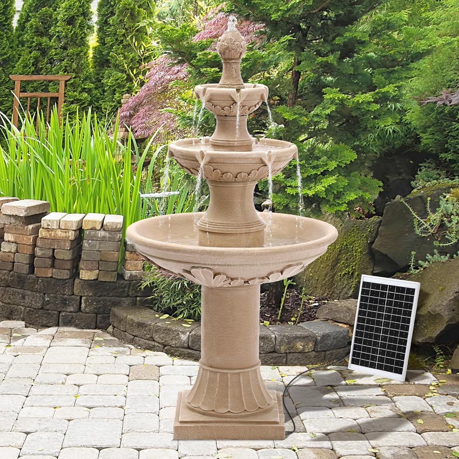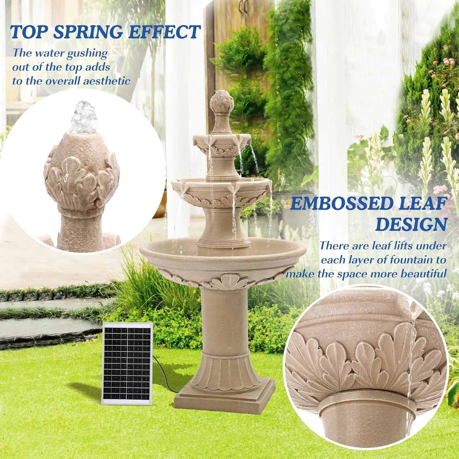 Relaxing Water Flowing: The 3-Tires garden fountains cascading outdoor provides a sense of fluidity and movement, a soothing stream of water flowing down from each tier, mimicking the sound of a real waterfall, and adding a serene ambienc