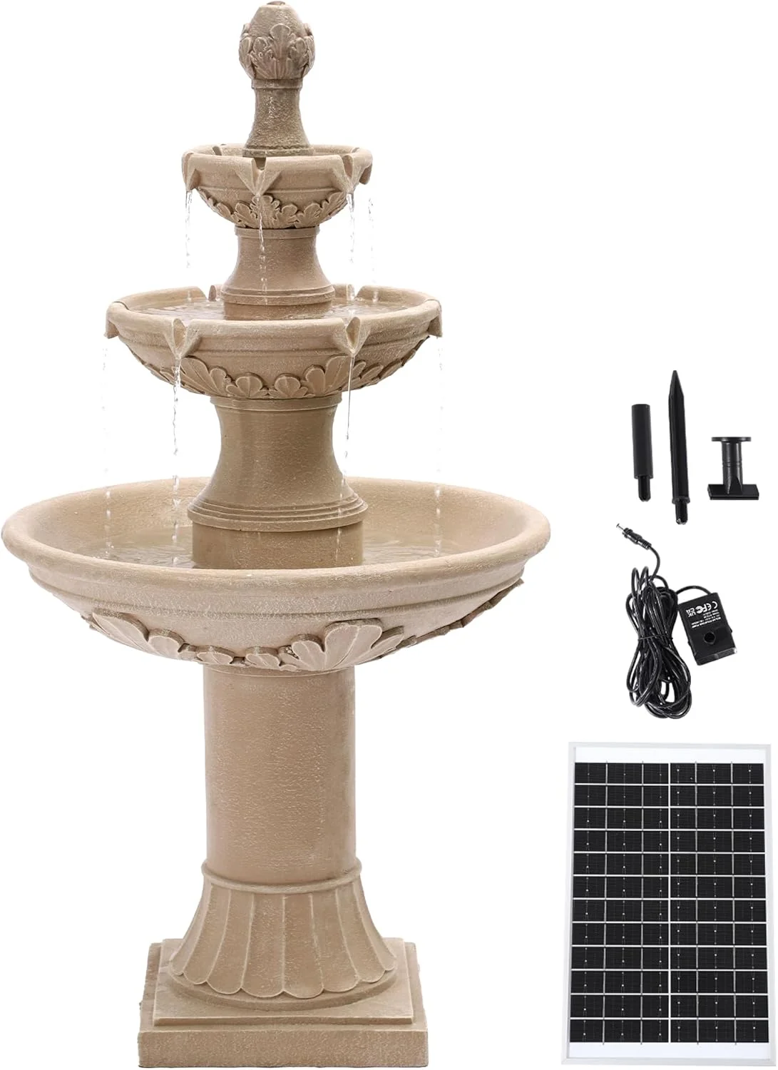 Durable Resin: The freestanding water fountain is crafted from high-quality resin & fiberglass composite, which is not only resistant UV, wind, rain and snow, but also ensures a longer service life of the product without worrying about short-term breakage