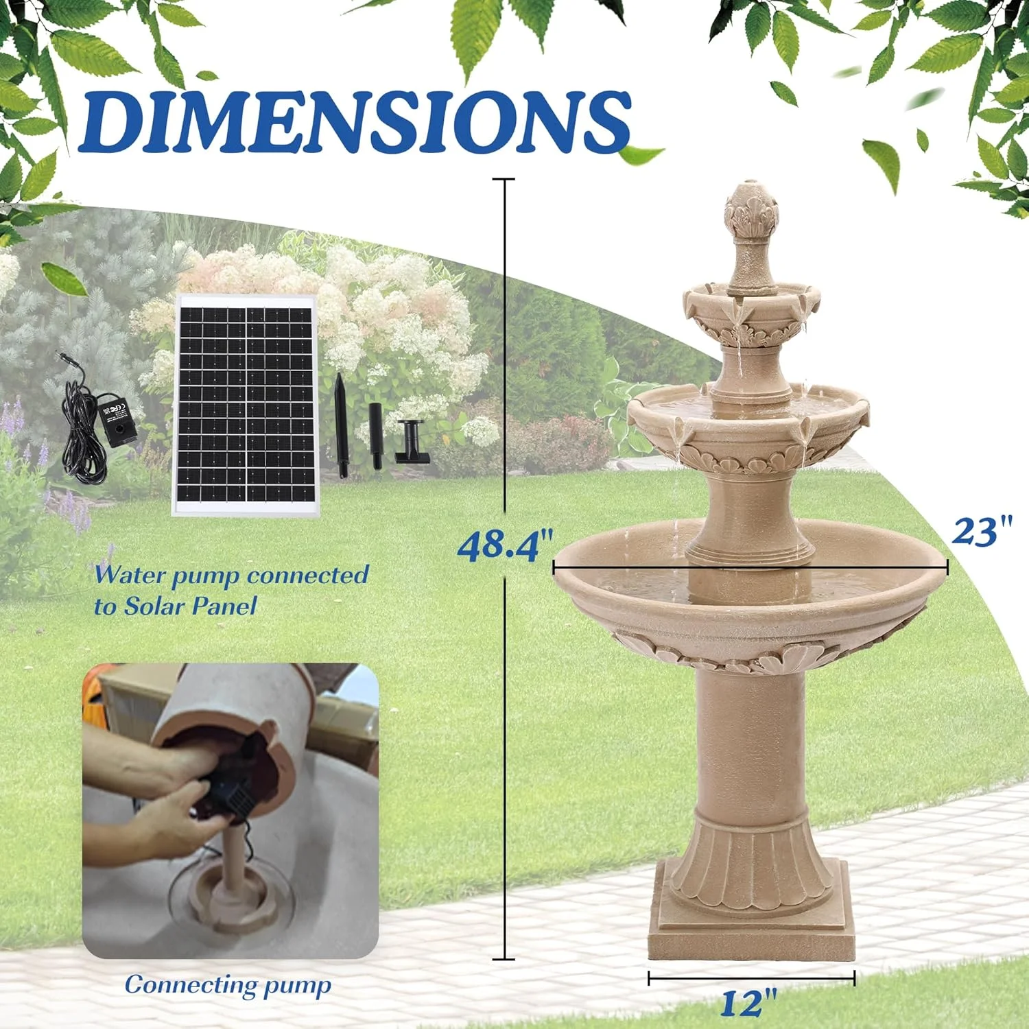 Magic Union Italian Solar Water Fountains Outdoor Garden Decor - 48.4''H Fountain and Waterfall, Large Cascading Indoor Floor-Standing Resin Bubbler Fountain Features W/Pump for Patio, Backyard