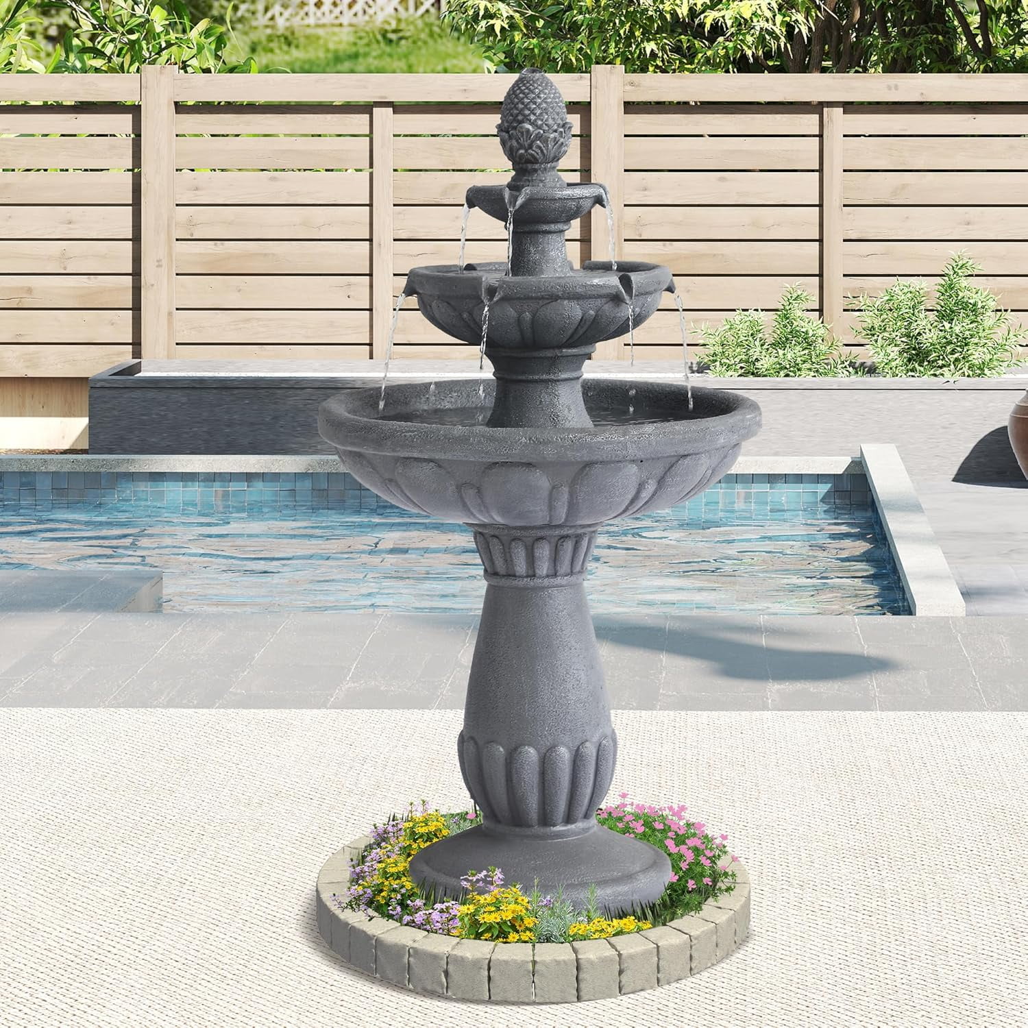 Haverchair 40.6" High Large Italian Outdoor Water Fountain, 3 - Tier Standing Bubbler Waterfalls Fountain with Pineapple Top and Roman Pillar, Resin Garden Water Fountains for Bird Bath Patio Yard Deck