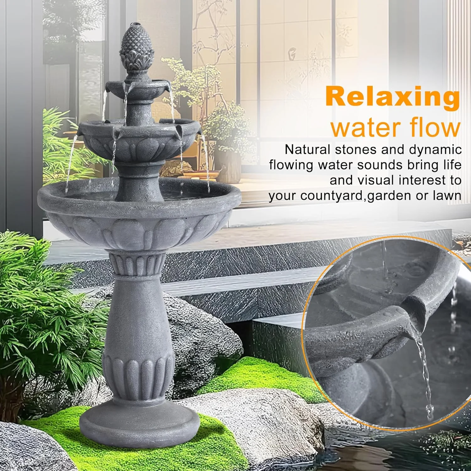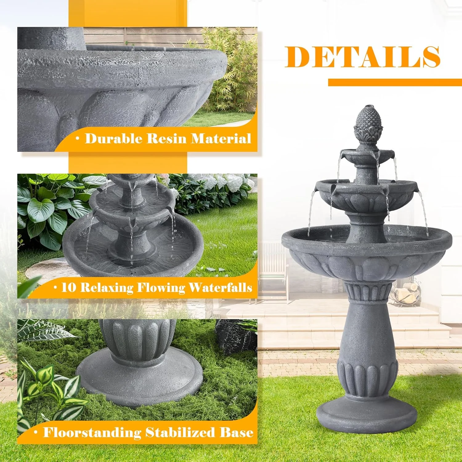 Experience Relaxation: Enjoy the soothing, gentle murmur of cascading waterfalls of 10 outlets. The 3-tier outdooor bubbler garden fountain with pineapple top provides continuous serene auditory therapy for stress relief and creating a tranquil ambiance