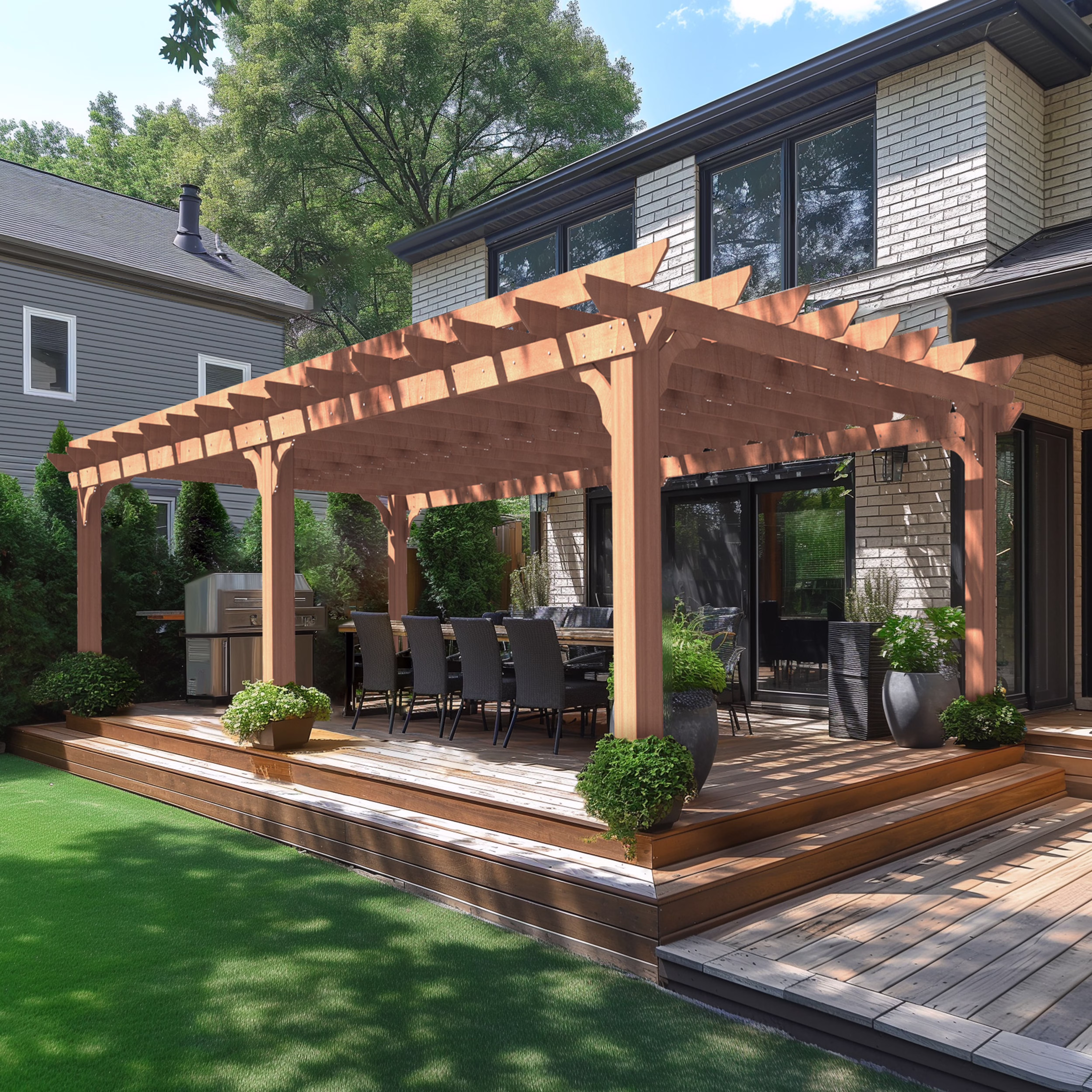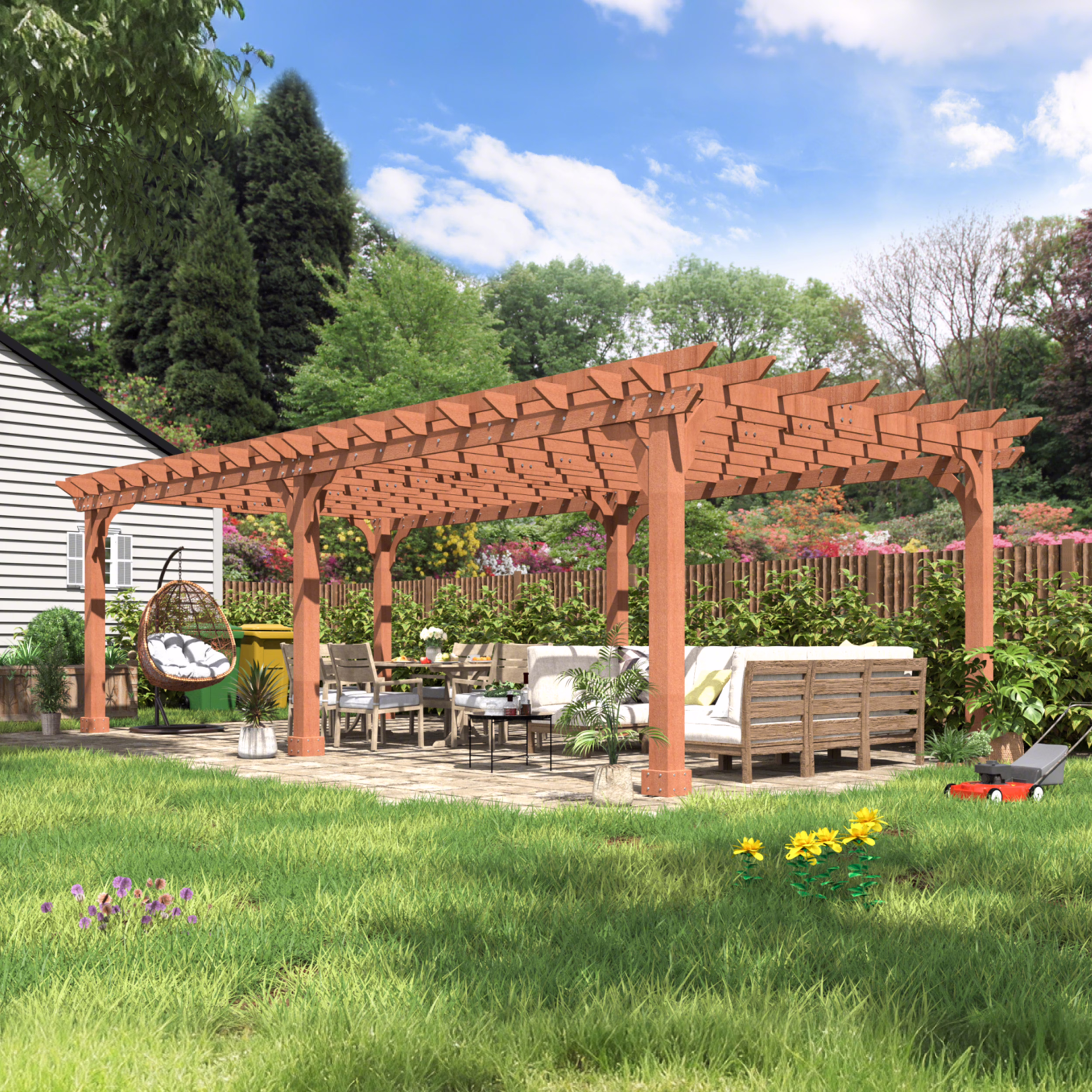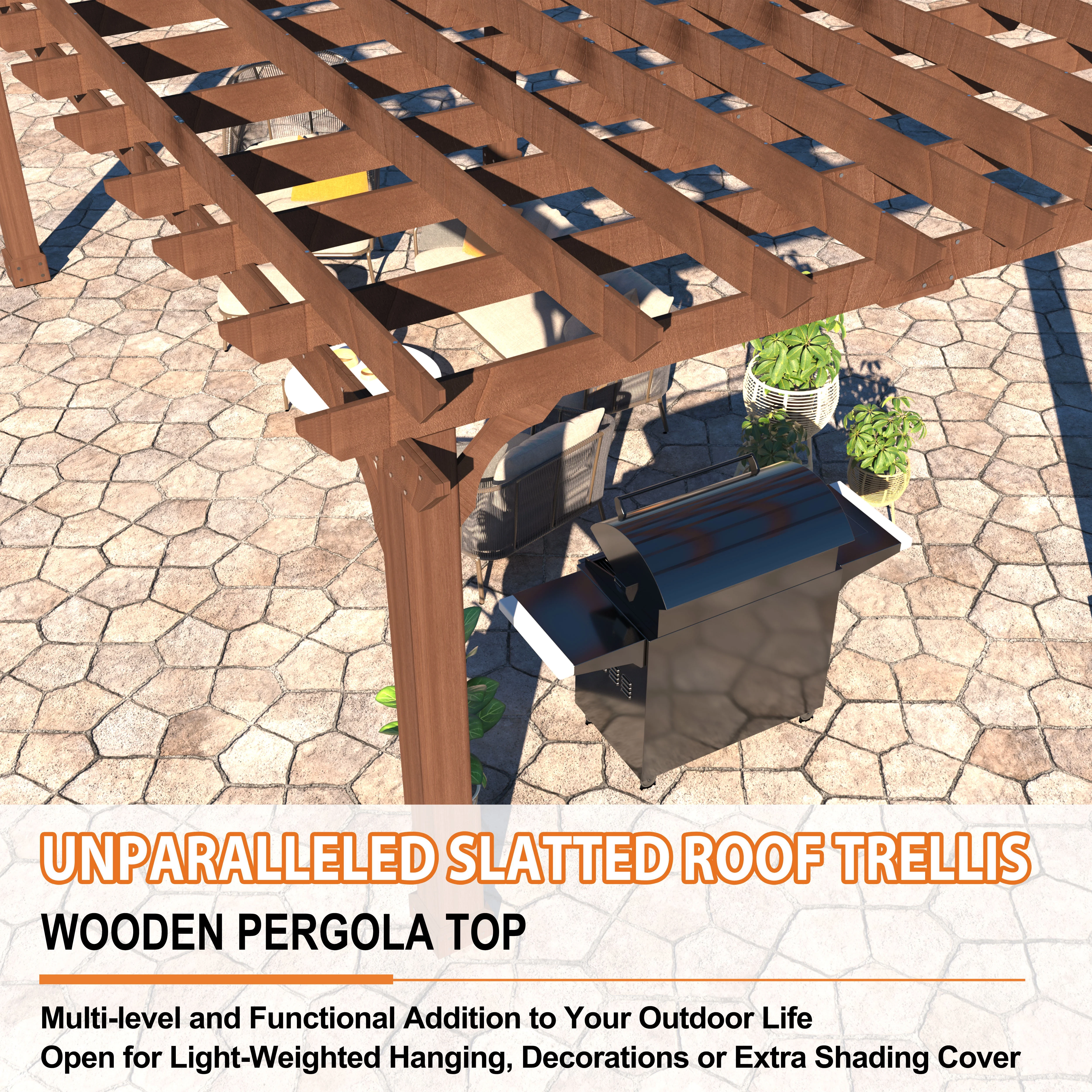- VEIKOUS cedar pergola is designed with multilevel trellis into classic flat roof look, which can provide you plenty of shade