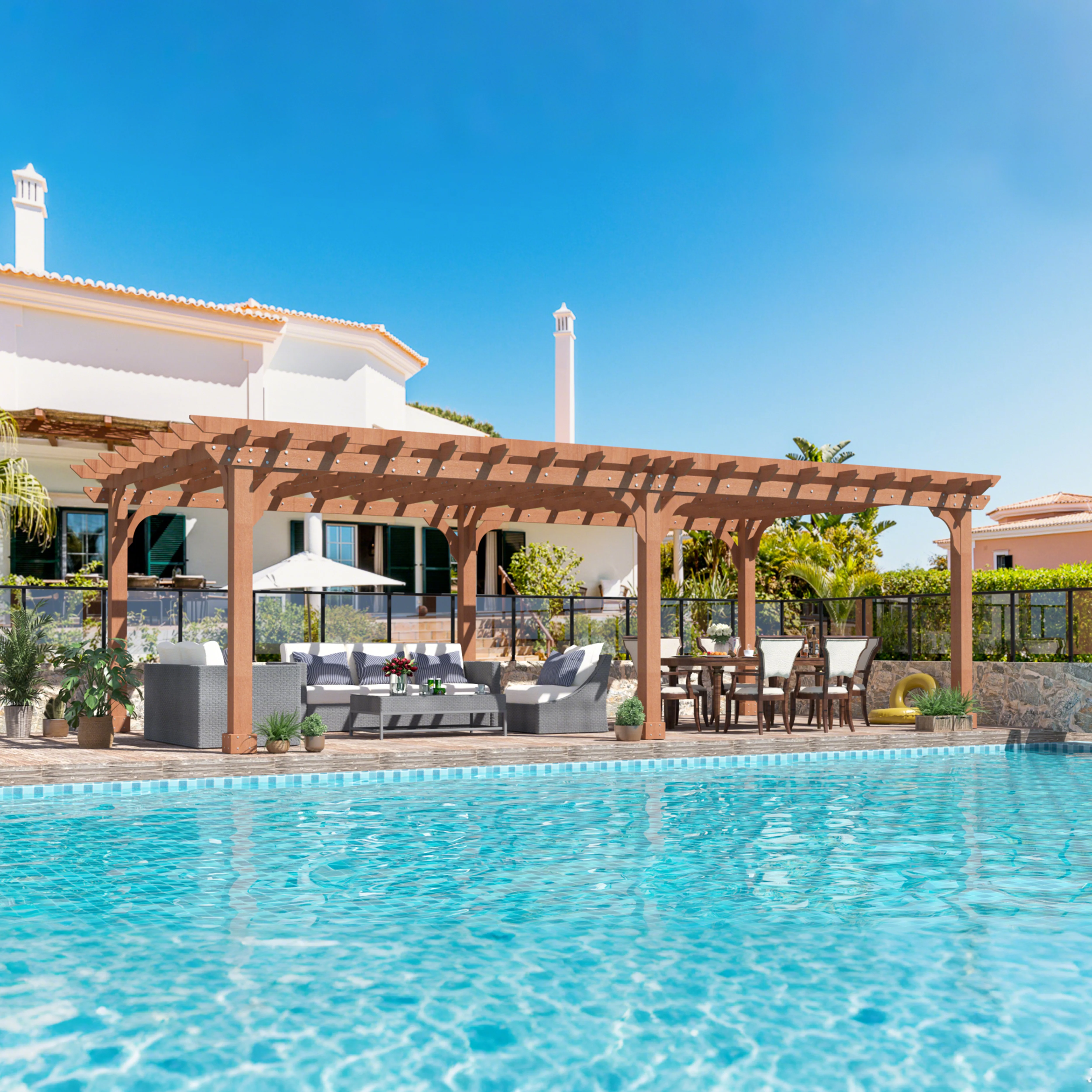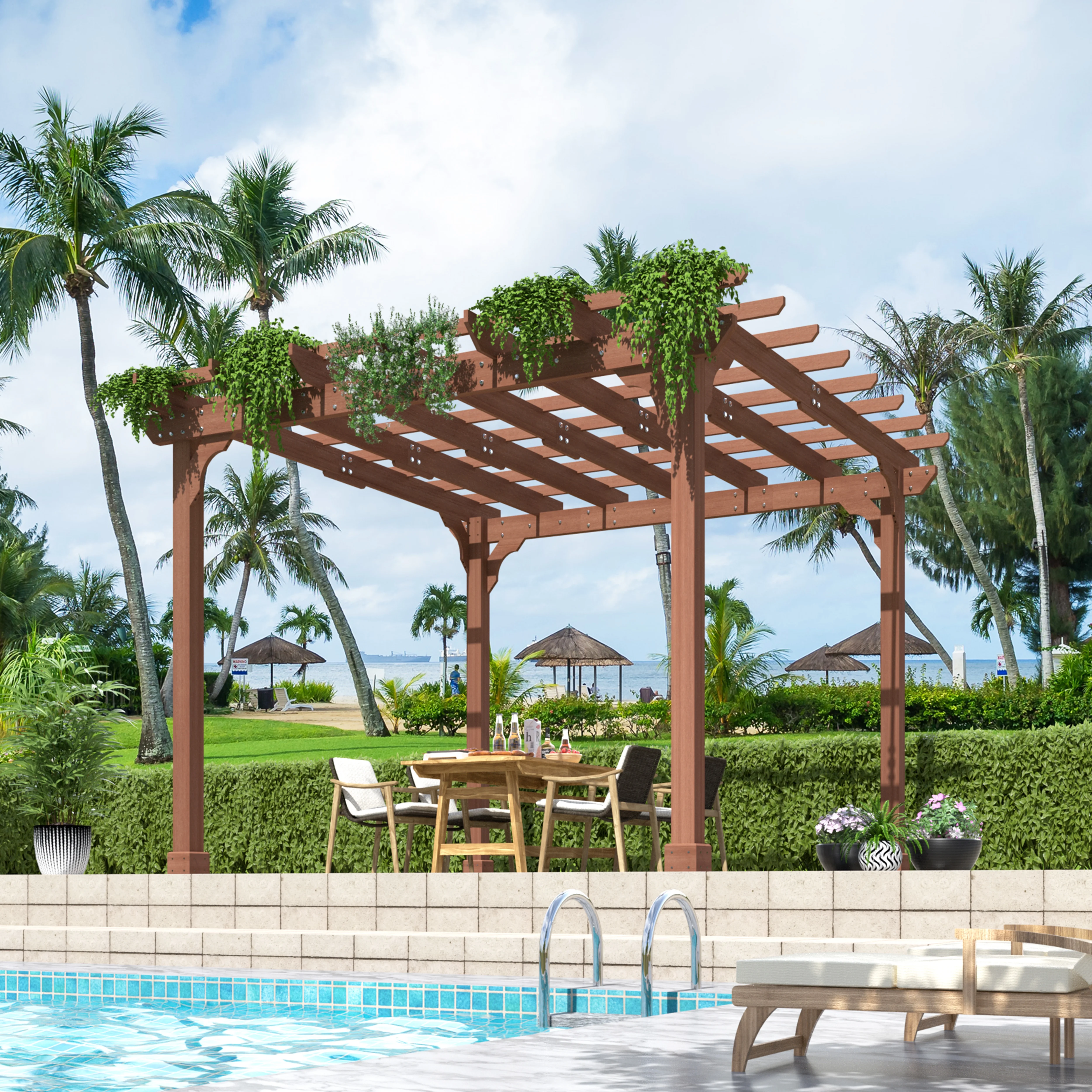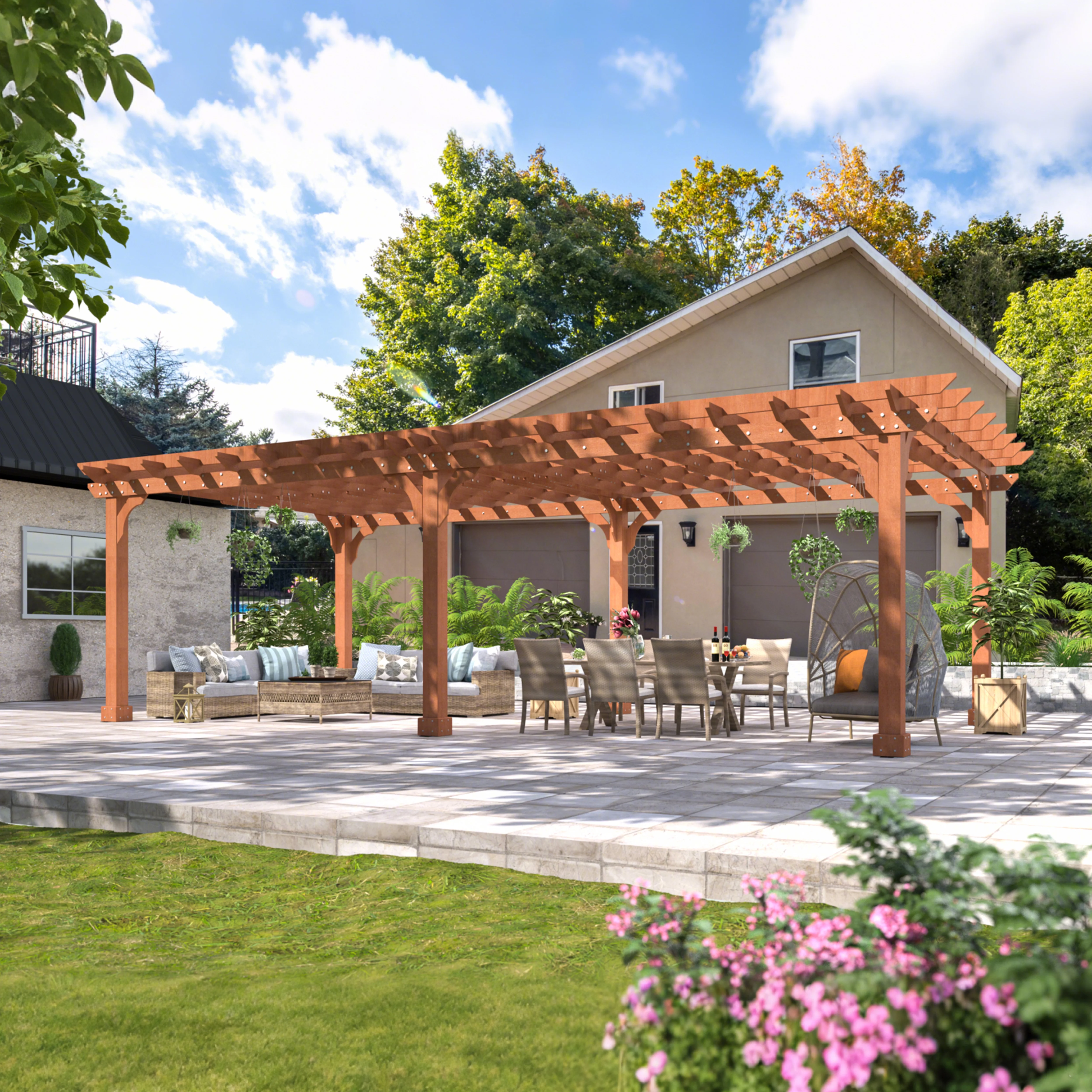 - VEIKOUS cedar pergola is designed with multilevel trellis into classic flat roof look, which can provide you plenty of shade