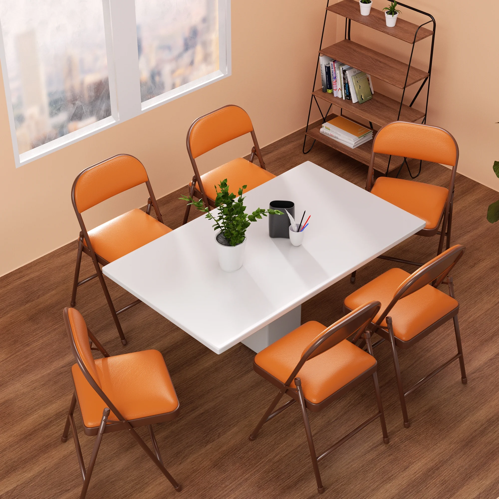 - 【Upholstered Backrest, Seat and Stylish�? Padded seat and backrest design can give you comfortable support for endless relaxation! Compared to the pure plastic chair with no upholstery, this design allows you to sit for a long time without getting sore. Compared to other chairs that are pure black or pure white, our structure and cushion backrest, using the same color system of orange and brown harmony, so that your taste is better reflected!