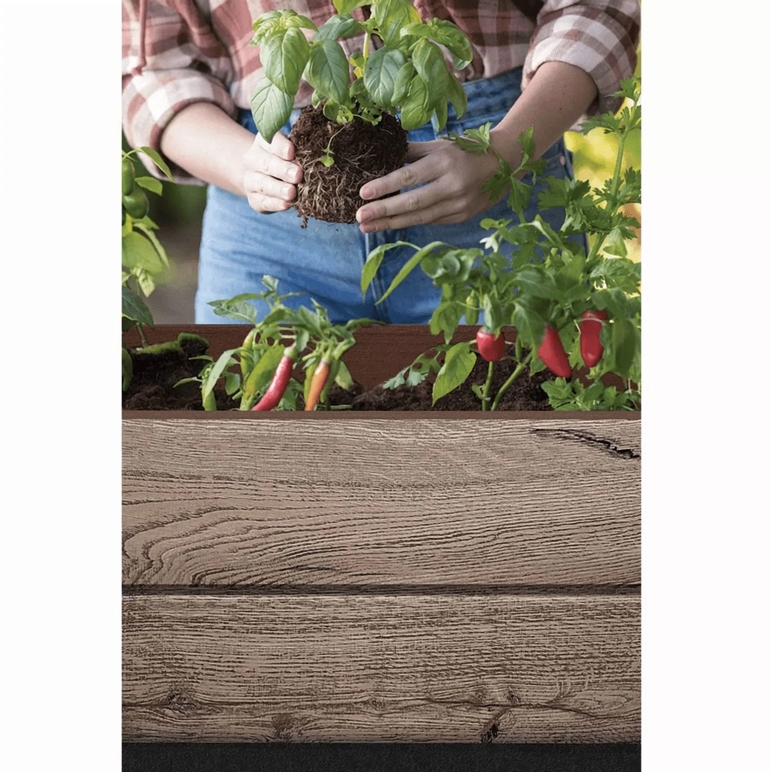 Available in vibrant wood-like finishes, this garden bed resists fading regardless of the weather year after year. It's designed to withstand the test of time, offering a durable and attractive solution for your gardening needs.