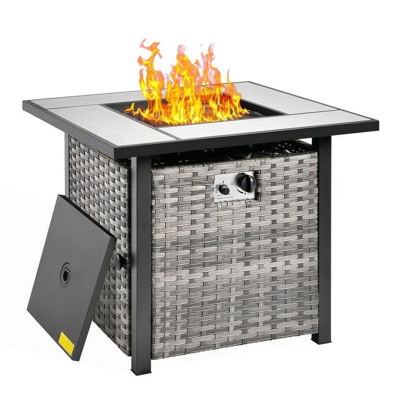 - CSA Certified Fire Pit: The modern patio set features a CSA certified fire pit table that delivers up to 50,000 BTU of heat, ensuring safety and performance