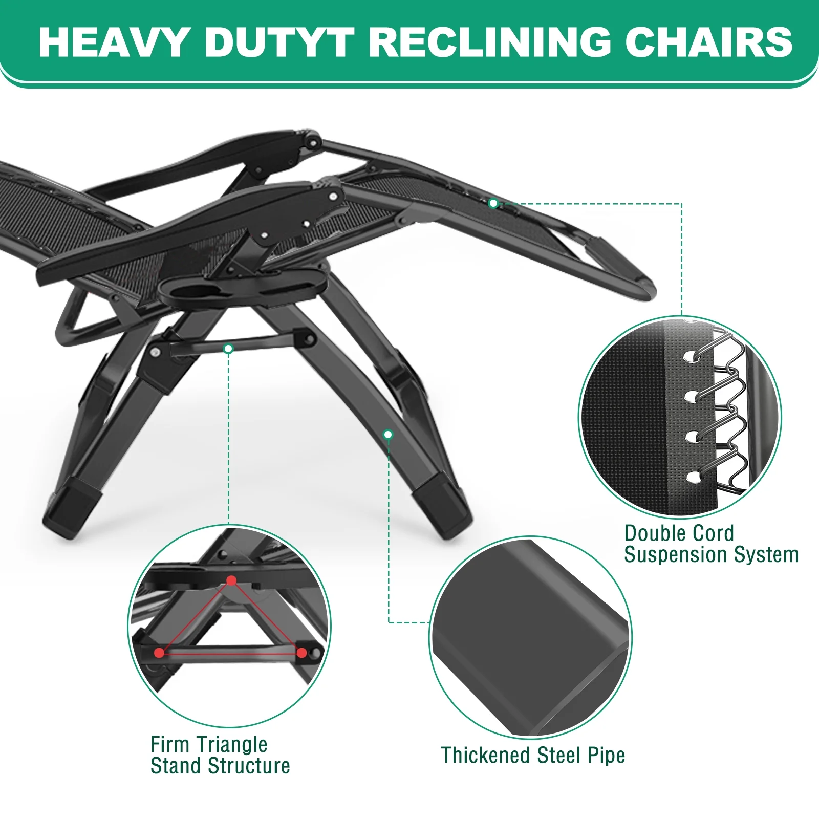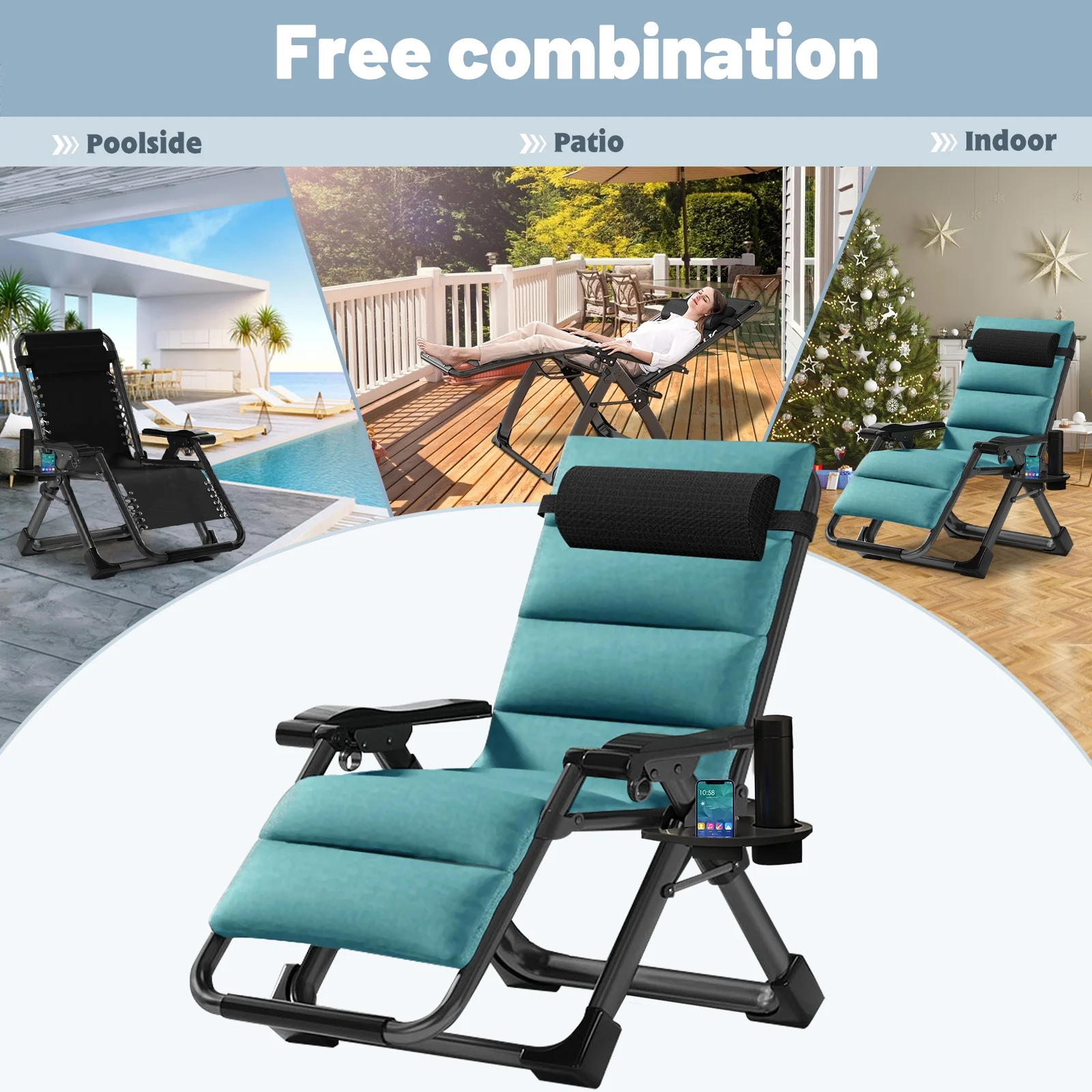 Sturdy and Durable: Our zero gravity chair can hold up to 440 pounds, and the outdoor patio recliner has a thicker frame to ensure long-term use. In addition, our manufacturer has been dedicated to gravity chair manufacturing for over 10 years. Our professional outdoor upholstered recliners are made of high quality materials for durability.