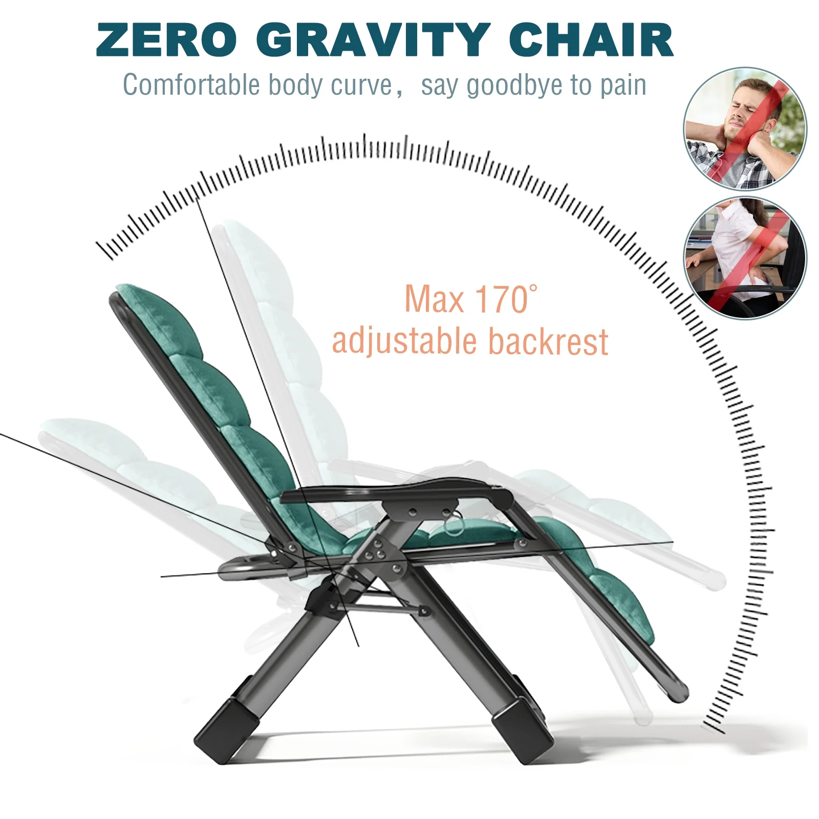 Ergonomic Design: Do you suffer from back pain or neck pain? If so, the NAIZEA Zero Gravity Lounge Chair will be your best choice for pain relief. In addition, our folding lounge chair is equipped with thick and soft cushion, the ergonomic design of this outdoor recliner can relieve spinal pressure, promote blood circulation and reduce muscle tension, whether indoors or outdoors, it will be the best companion for you to rest.