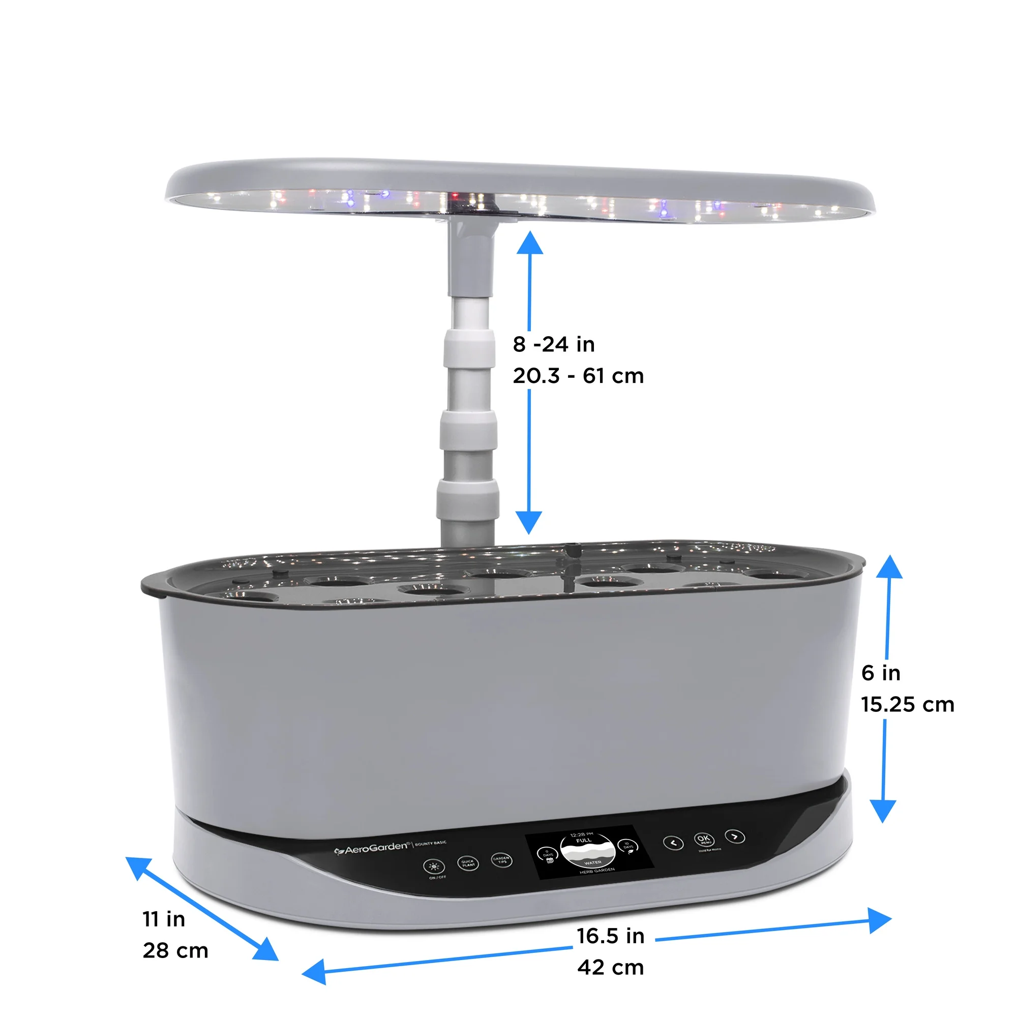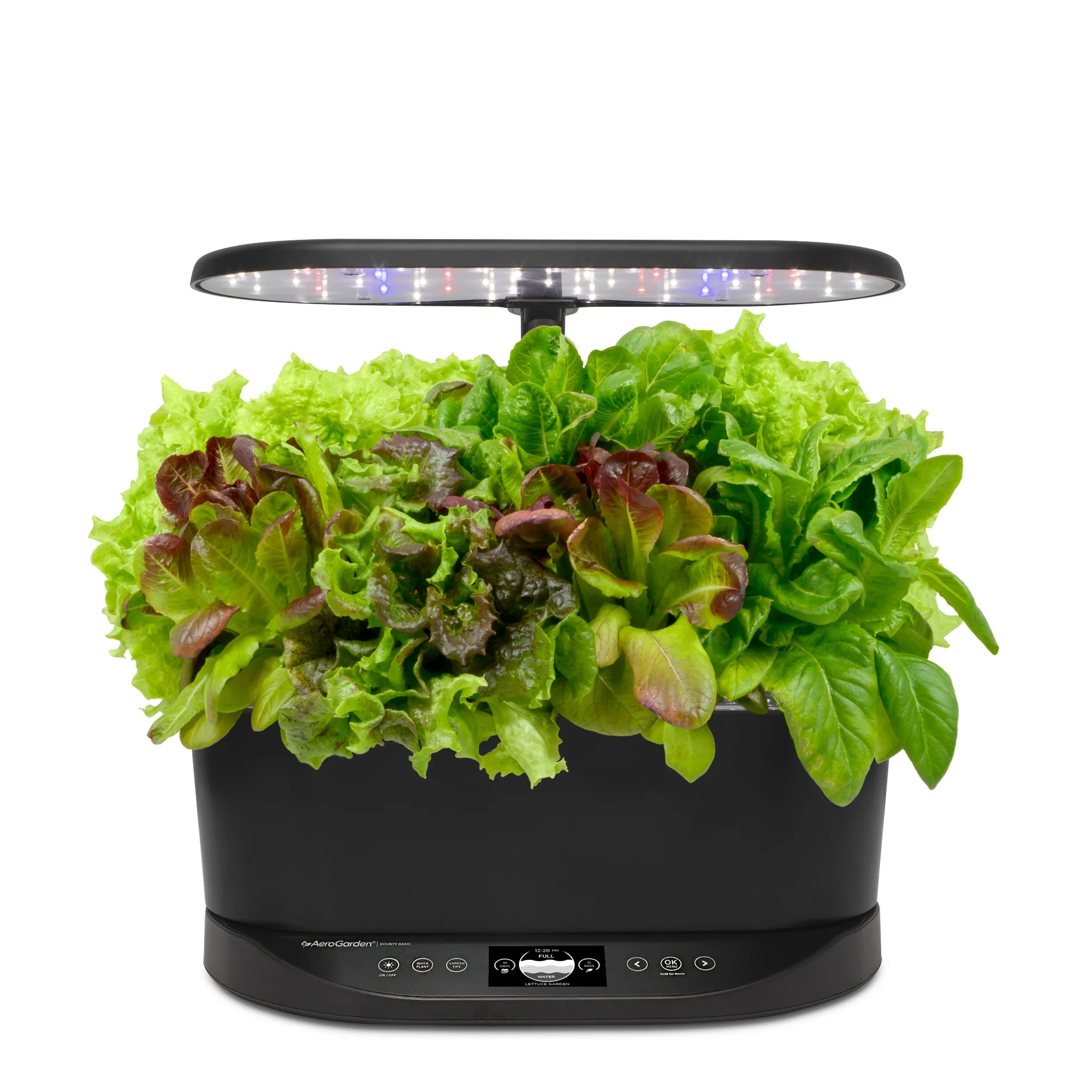 - Automatic lighting timer and high resolution black and white display allow for easy upkeep, while vacation mode keeps your plants healthy while you're out of town