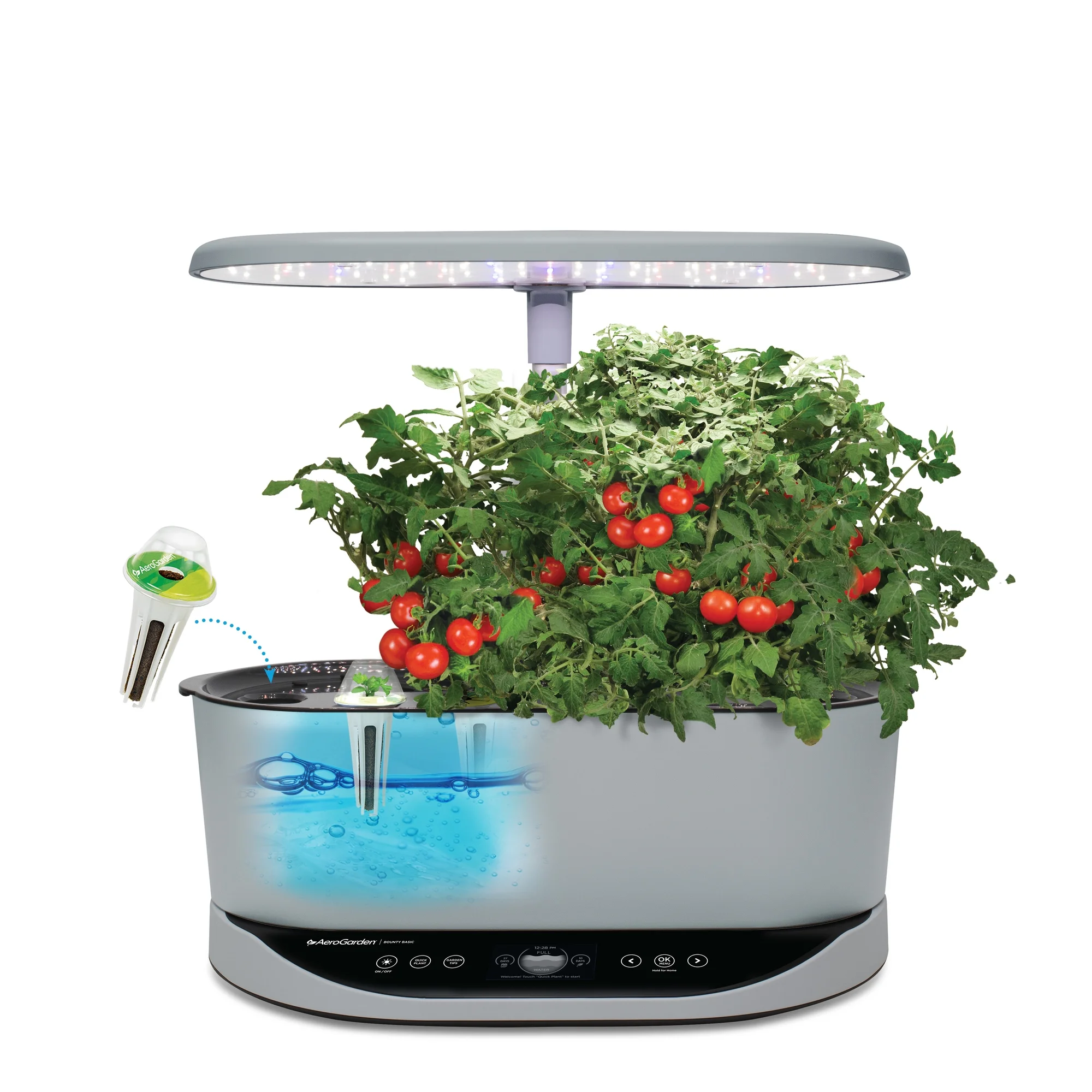 - AeroGarden Bounty Basic hydroponic garden grows up to 9 of your favorite herbs, veggies, or flowers indoors and year-round, without soil