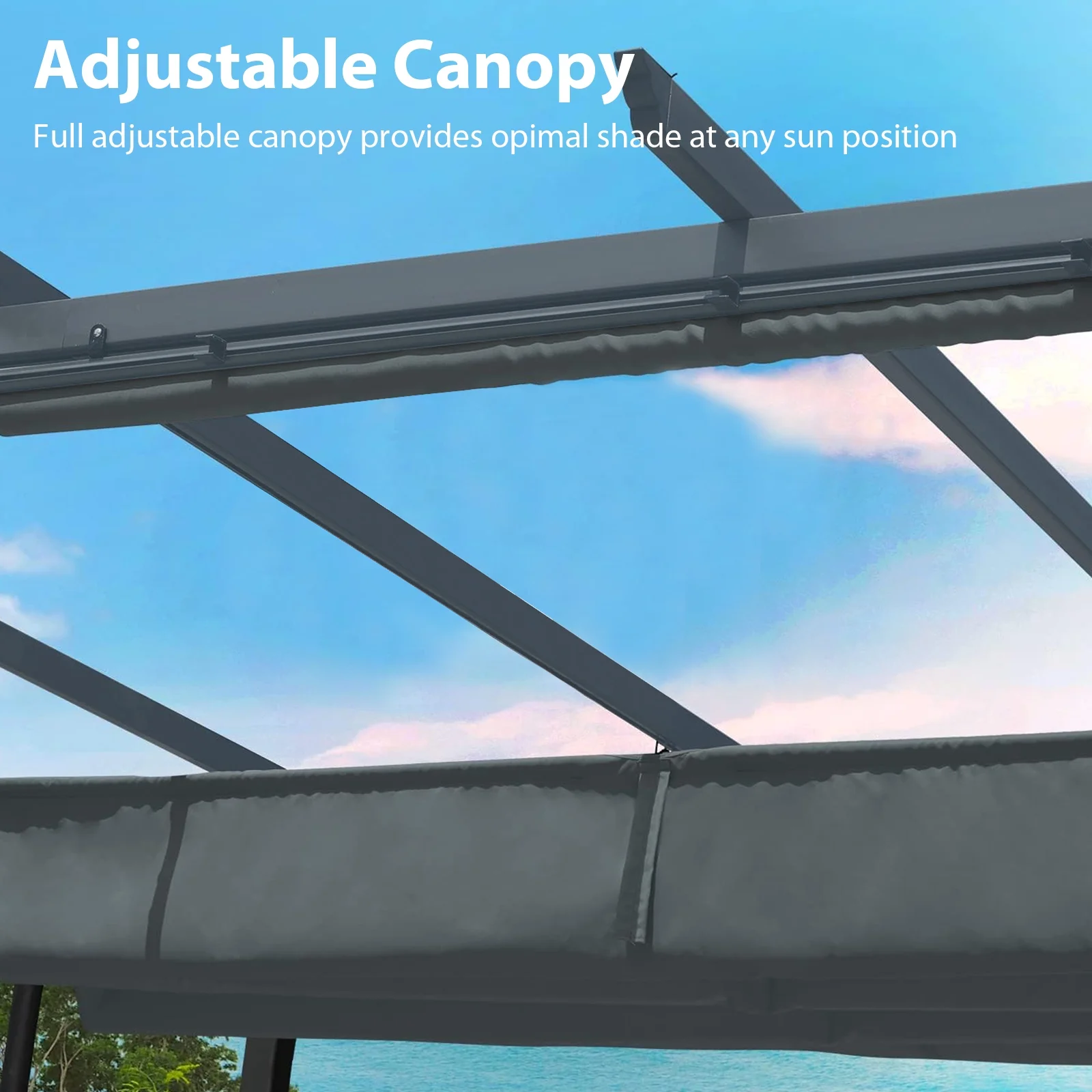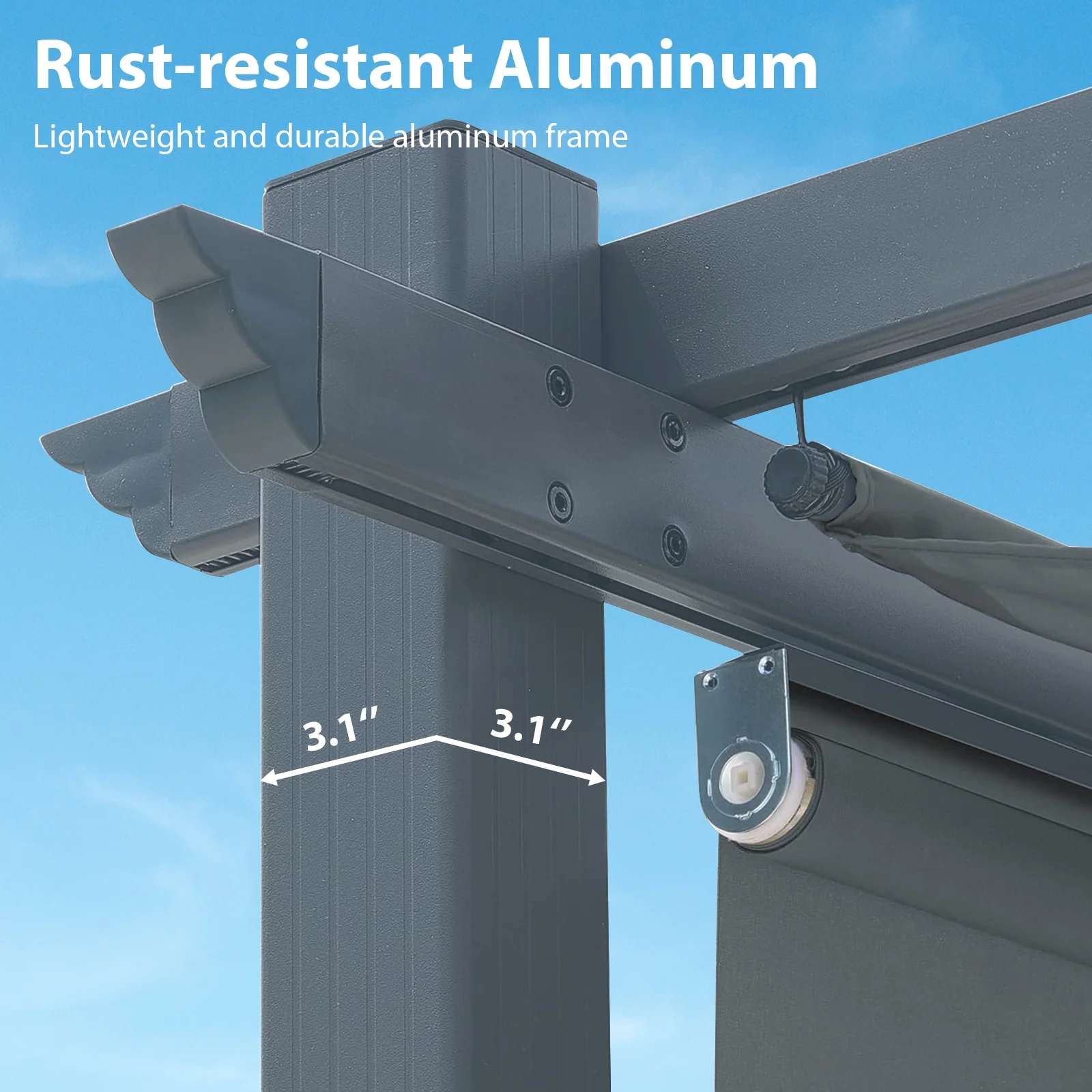 - Durable Fabric - Our pergola canopy and rolling curtains are crafted from premium polyester fiberthat is UV and fade resistant. Coated with PA for waterproof performance, ensuring long-lasting durability.