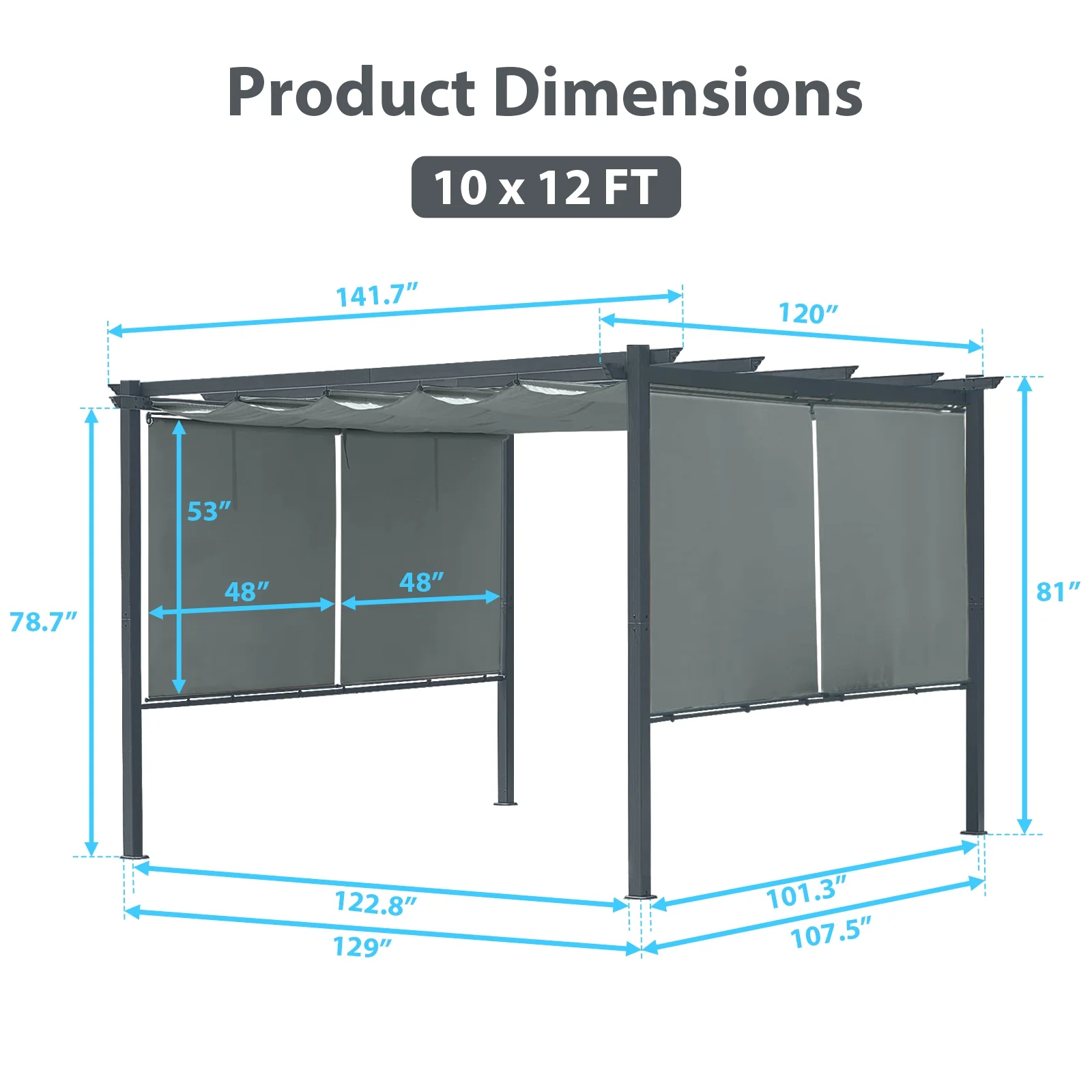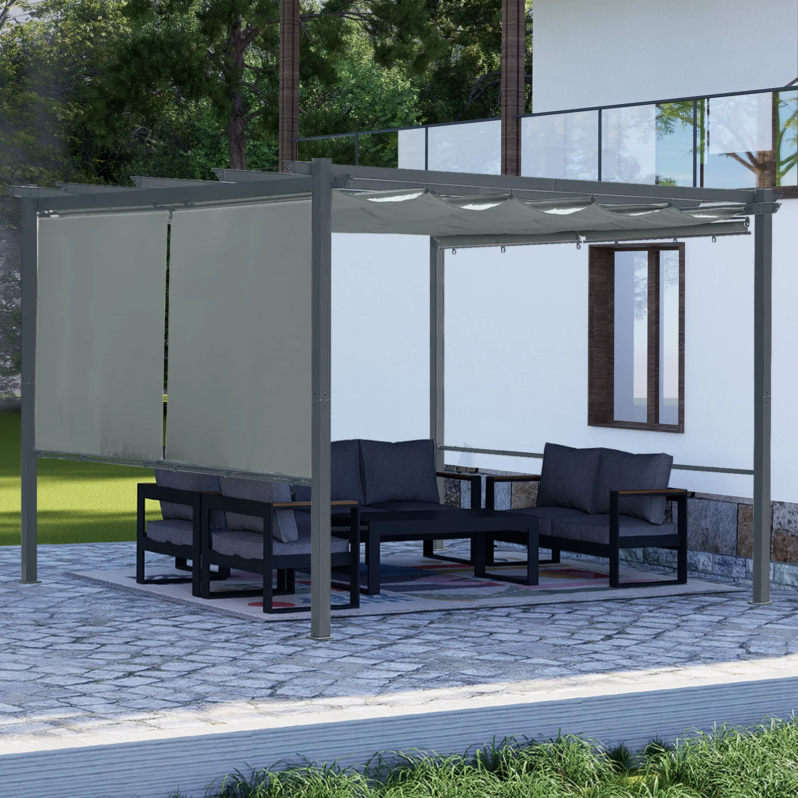 - Practical Accessories - Featuring 4 pieces rolling curtains for versatile sunlight control on one or both sides. Equipped with 8 expansion screws, fortifying the pergola's four base pillars against extreme weather.