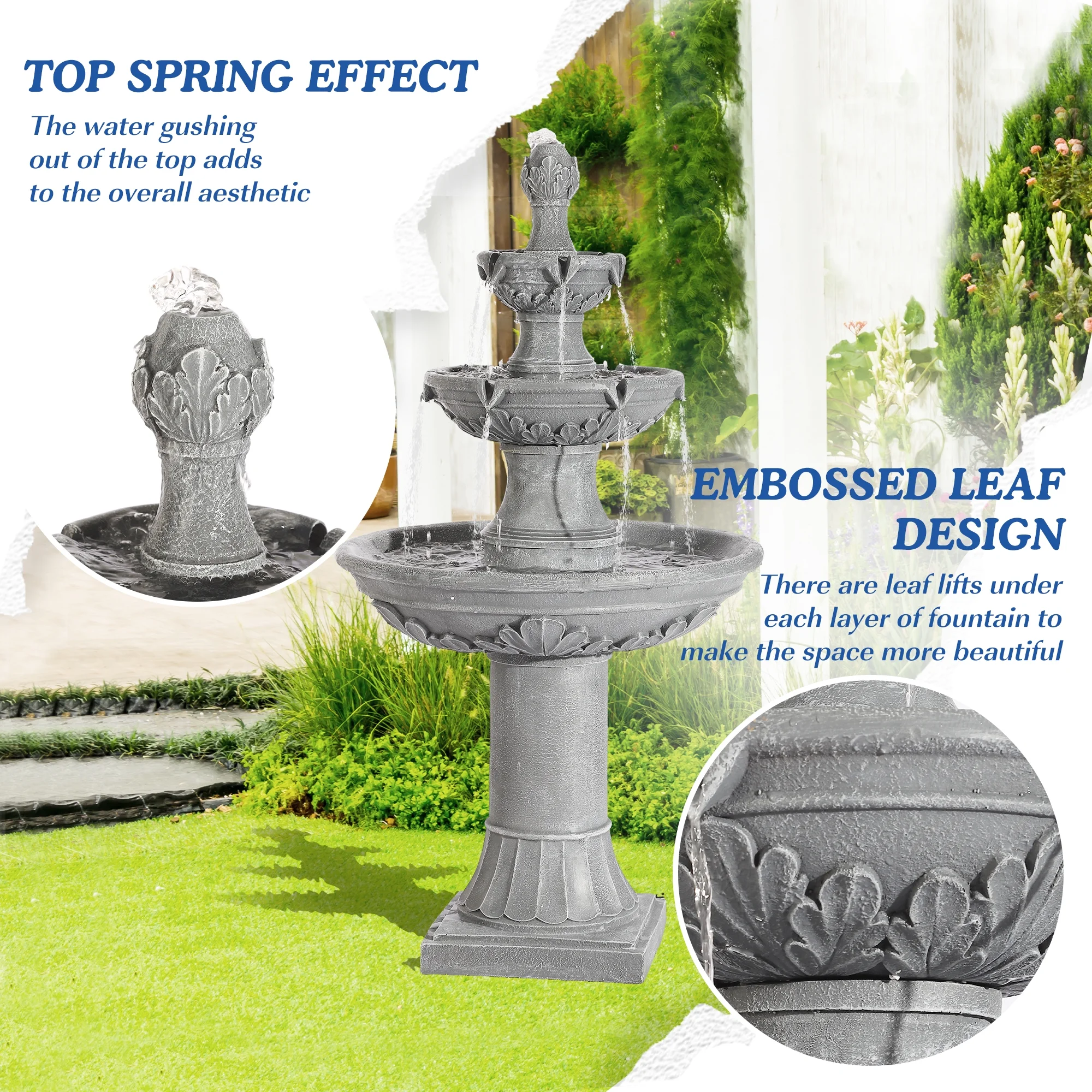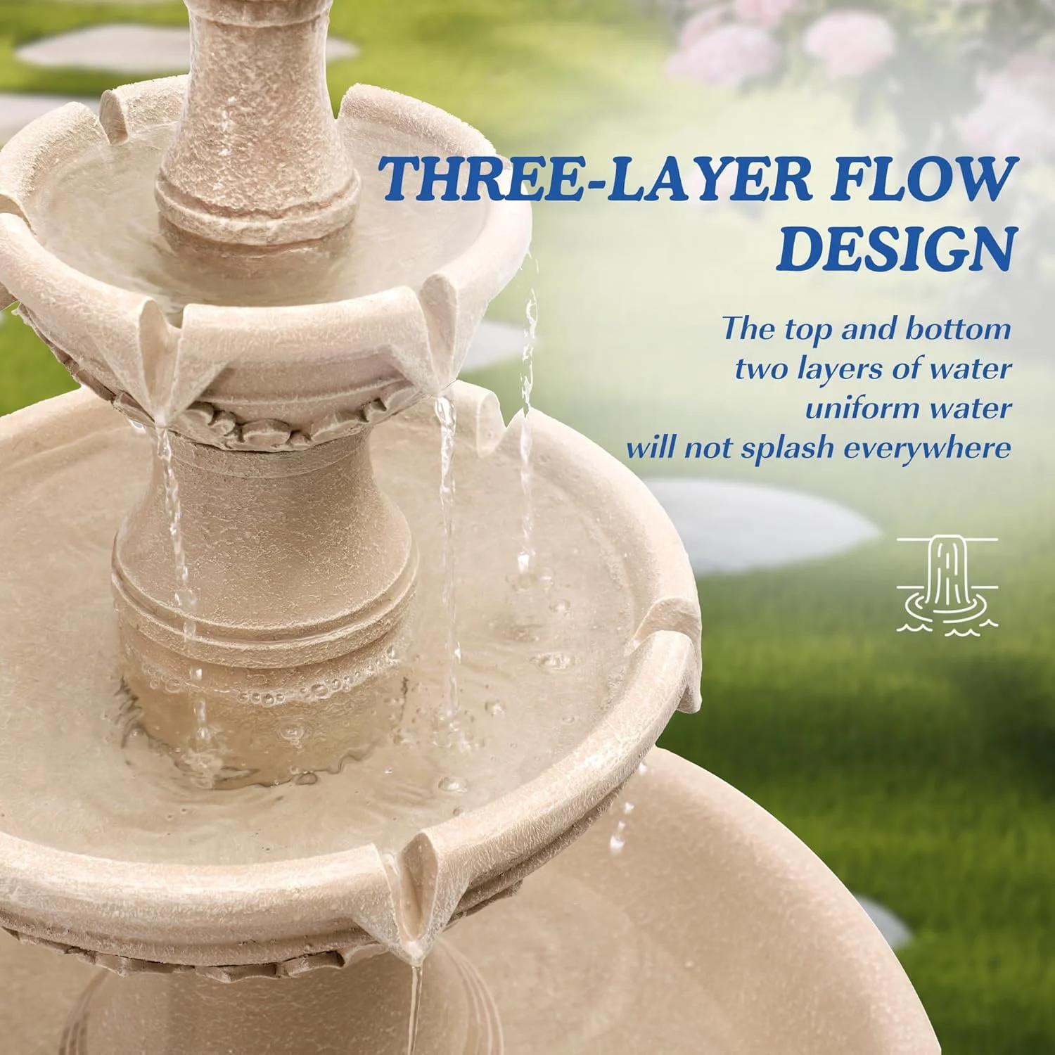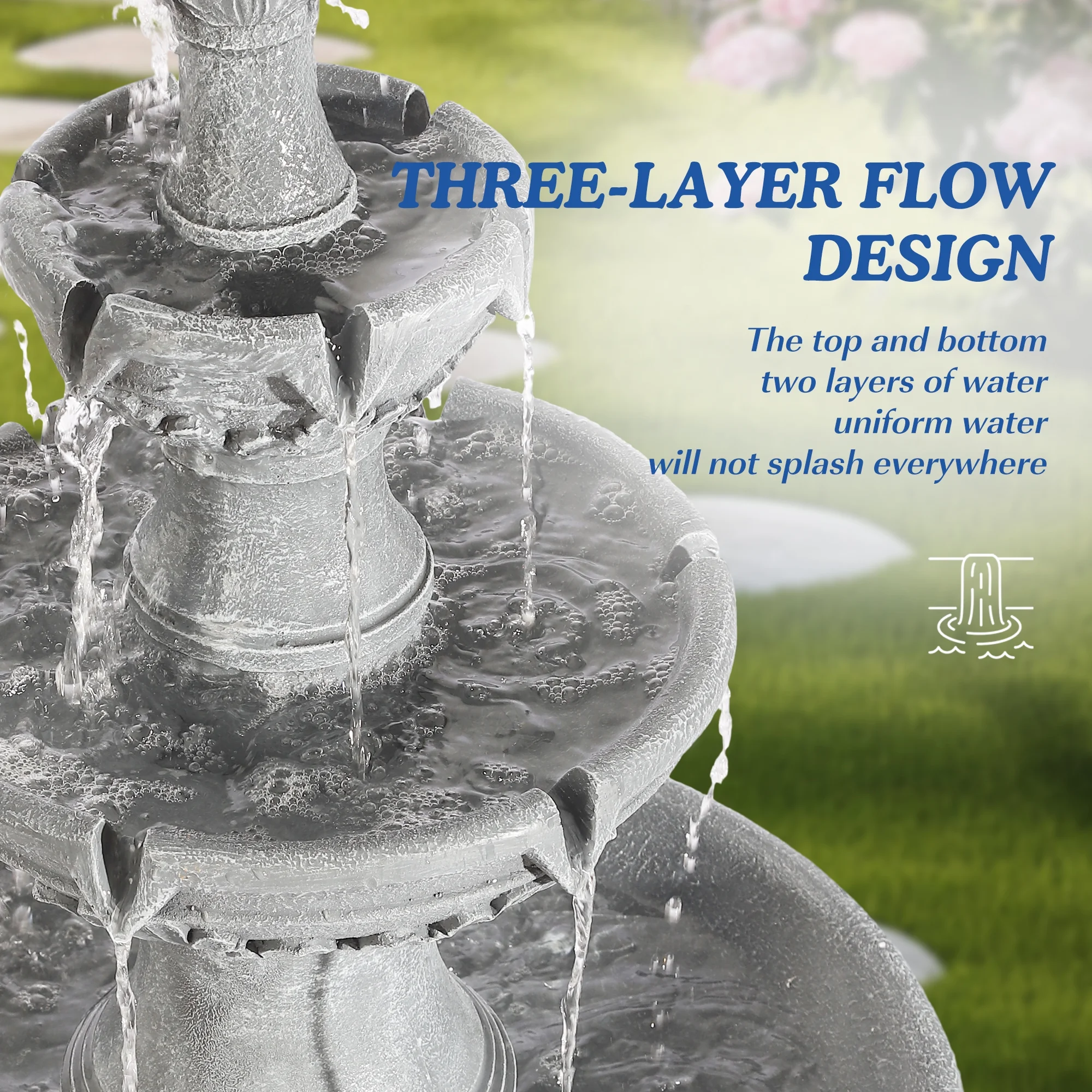 Relaxing Water Flowing: The 3-Tires garden fountains cascading outdoor provides a sense of fluidity and movement, a soothing stream of water flowing down from each tier, mimicking the sound of a real waterfall, and adding a serene ambience
