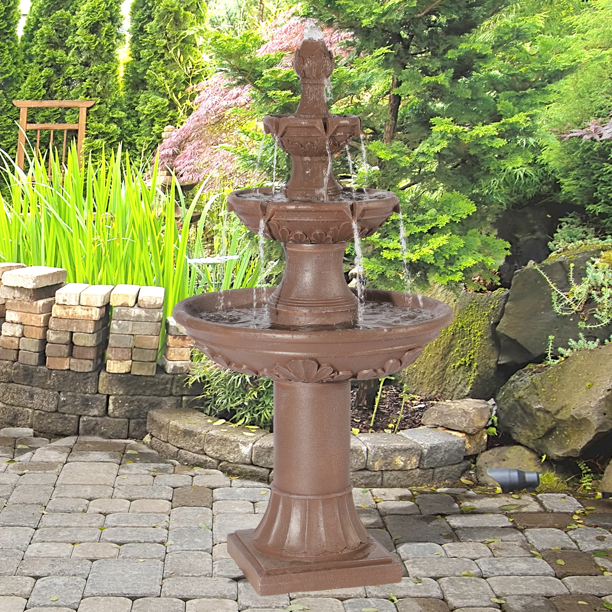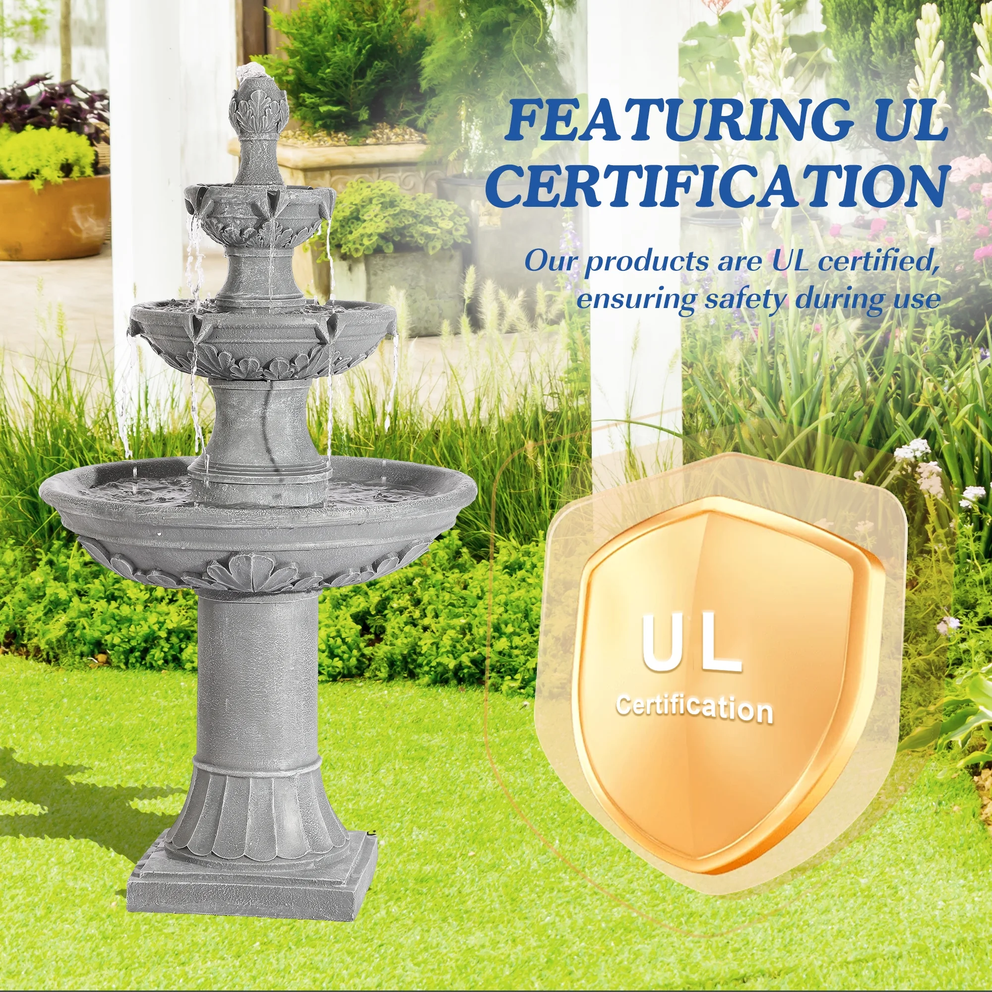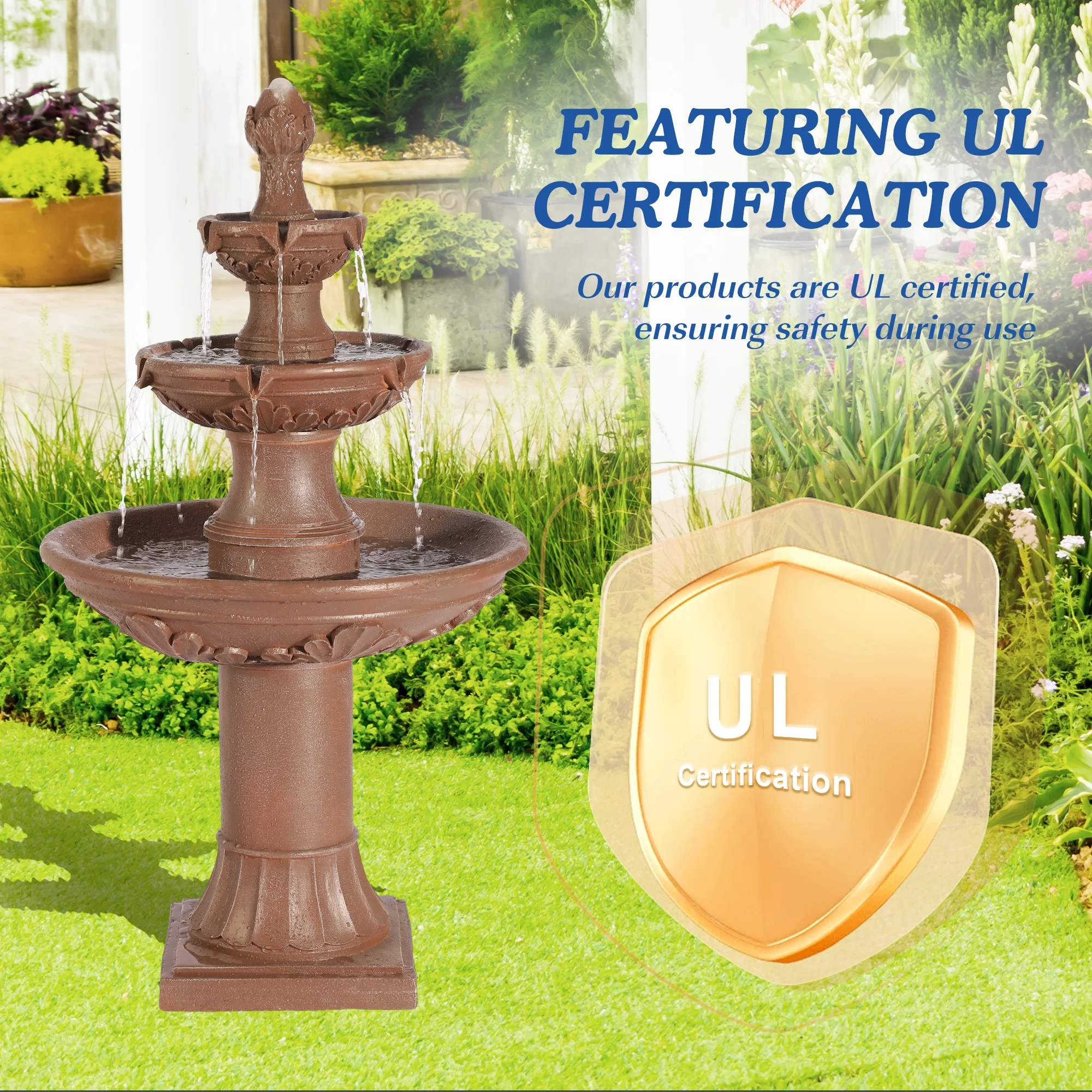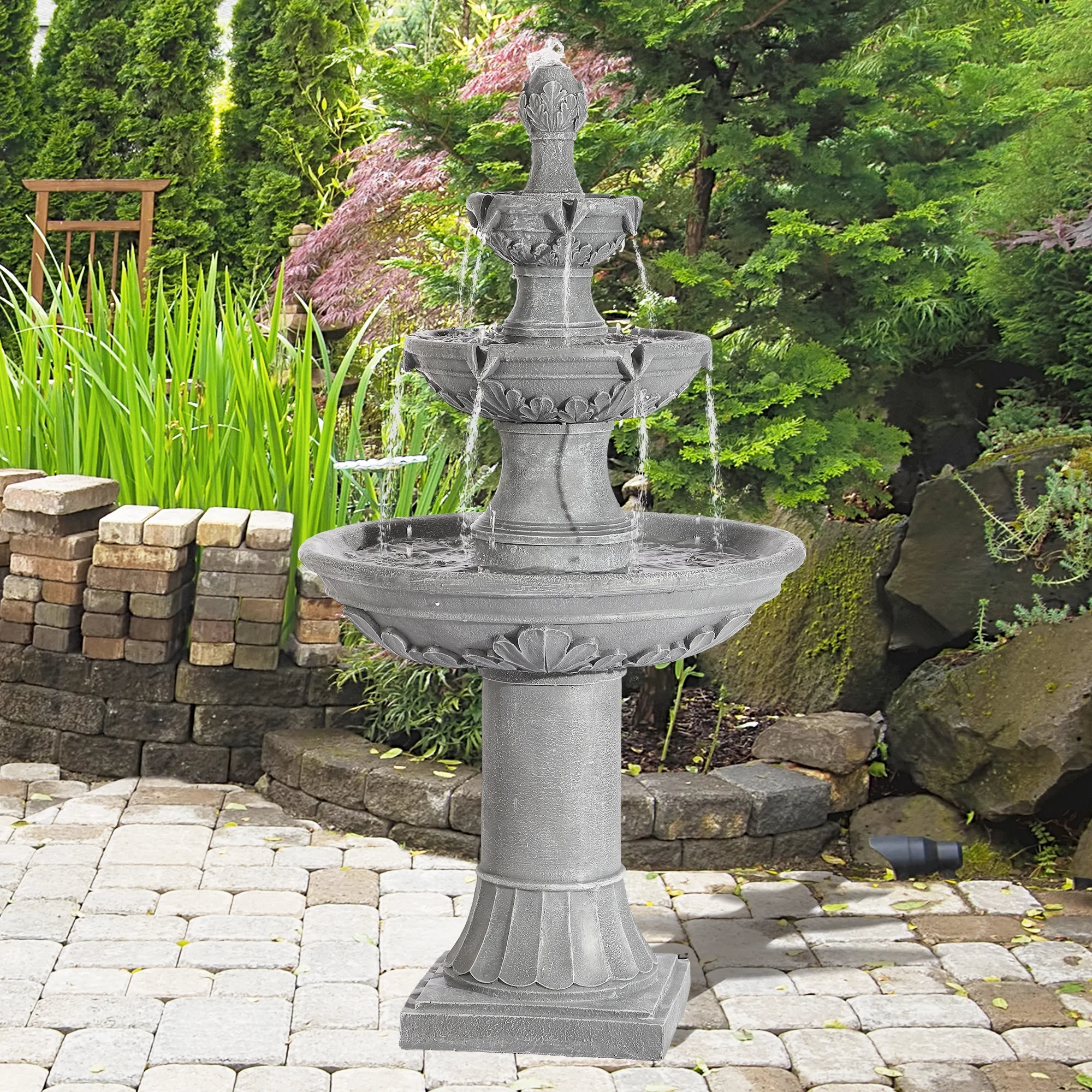 Relaxing Water Flowing: The 3-Tires garden fountains cascading outdoor provides a sense of fluidity and movement, a soothing stream of water flowing down from each tier, mimicking the sound of a real waterfall, and adding a serene ambience