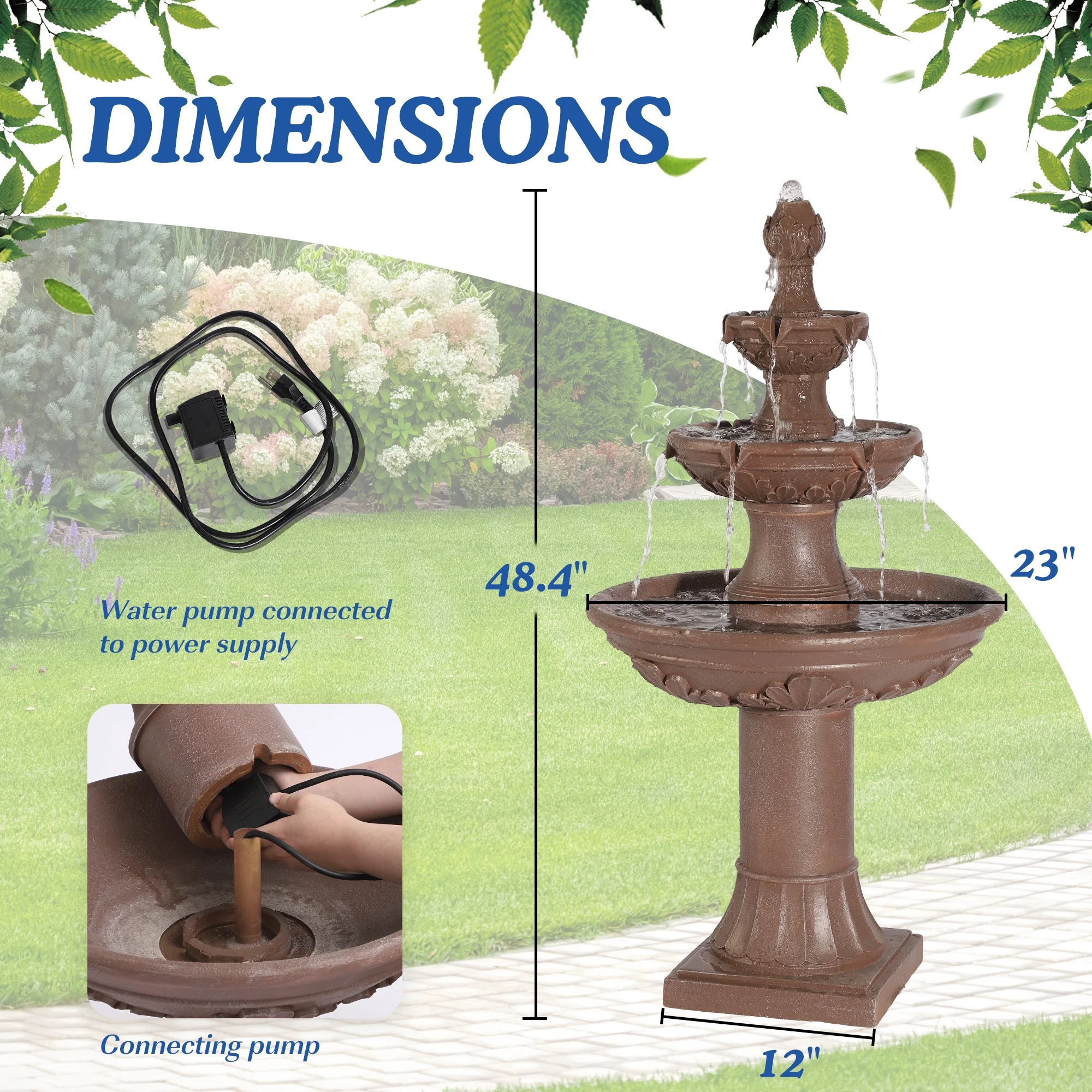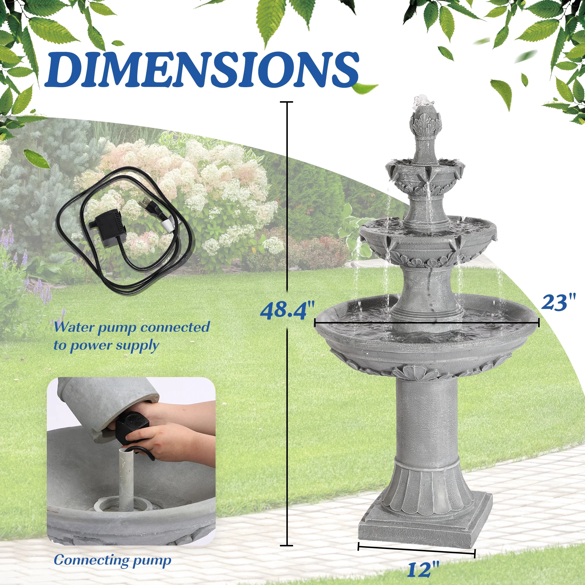 MAGIC UNION Outdoor Garden Water Fountains, 48.4''H Italian Style Fountains and Waterfalls Outside, 3-Tier Large Bubbler Cascading Indoor Floor Water Fountain Features with Pump for Home Yard Decor