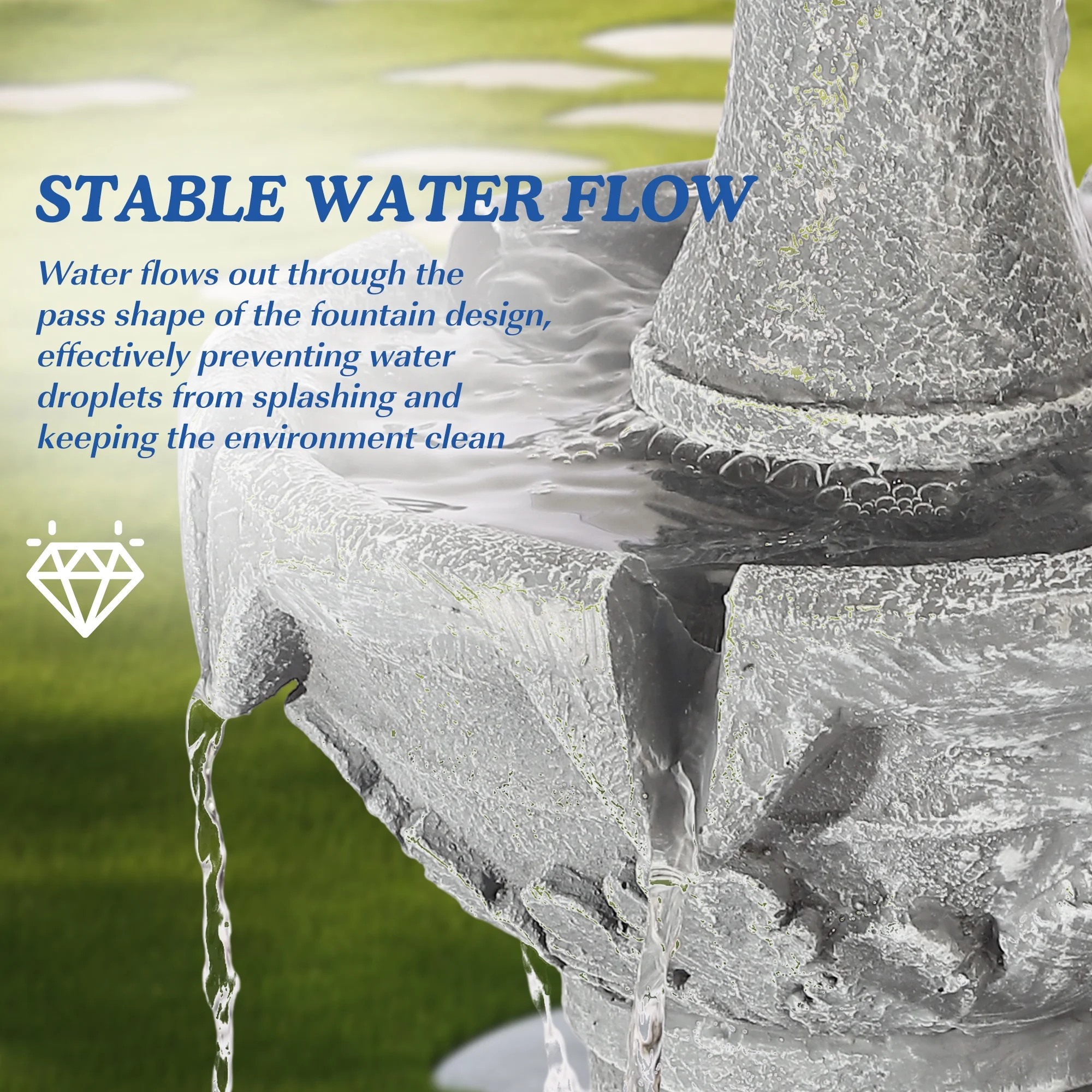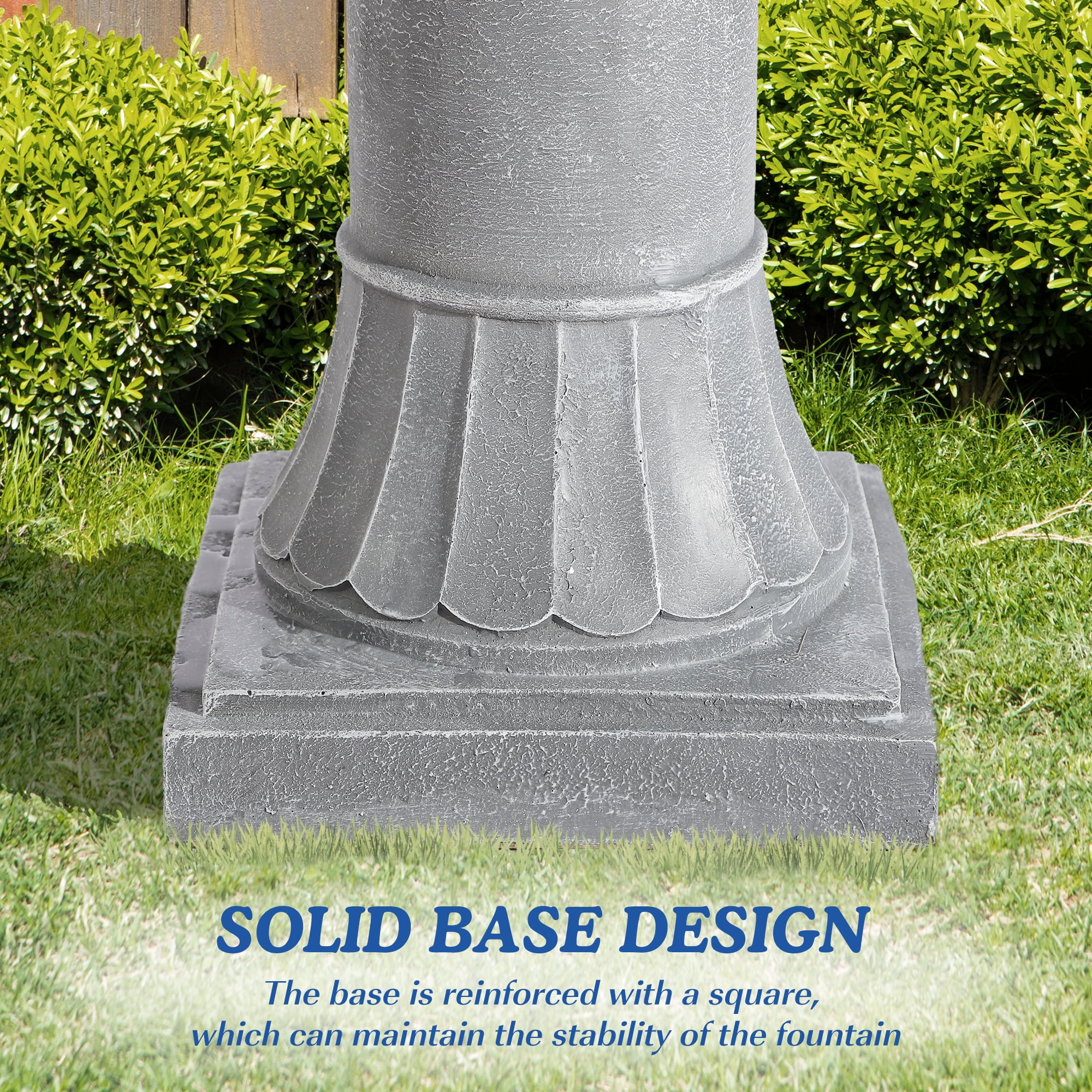 Durable Resin: The freestanding water fountain is made of higher grade resin material, which is not only resistant to heat, wind and rain, breakage, but also ensures a longer service life of the product without worrying about short-term breakage
