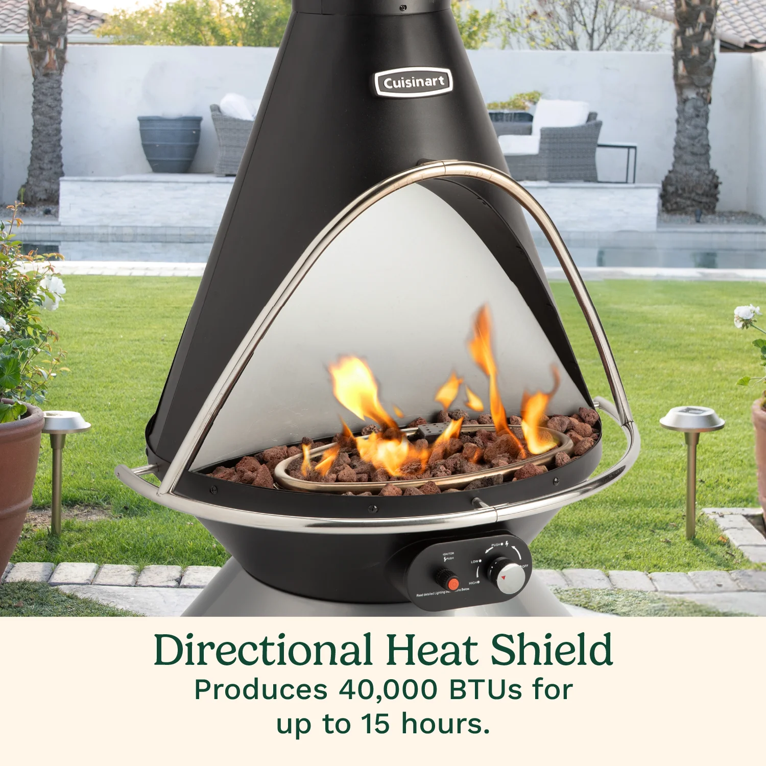 - HEAT REFLECTOR: Maximizes warmth by pushing heat forward��perfect propane fire pit for patios and backyards