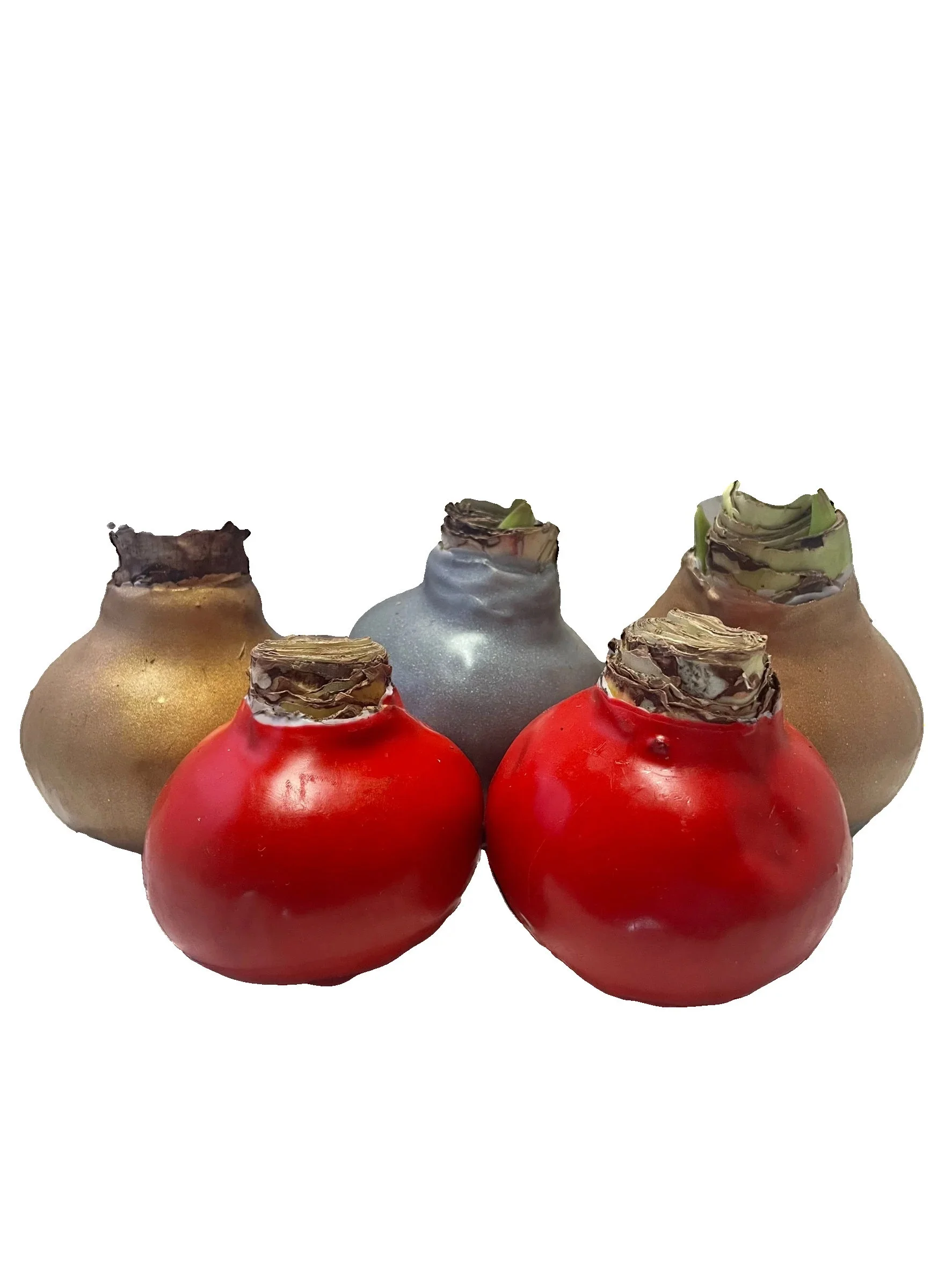 - This stunning Holiday Collection of our best selling festive Waxed Amaryllis Bulbs 28/30, is the perfect new, clean, elegant, and show stopping decoration or gift! The gift bundle includes one each of waxed Red Victory, White Denver, Minerva, Black Pearl and Revelation Amaryllis bulbs, for a show stopping holiday centerpiece or display.