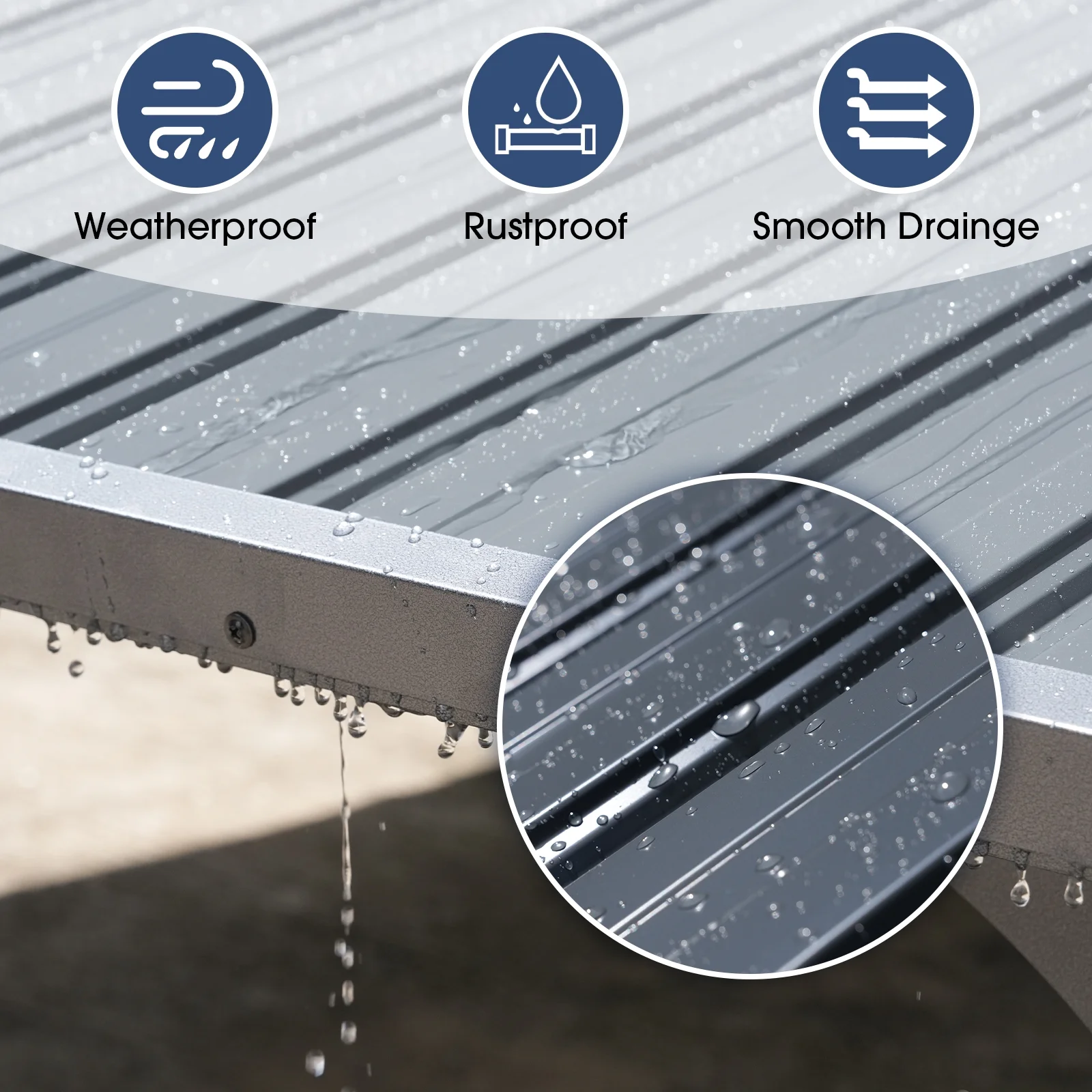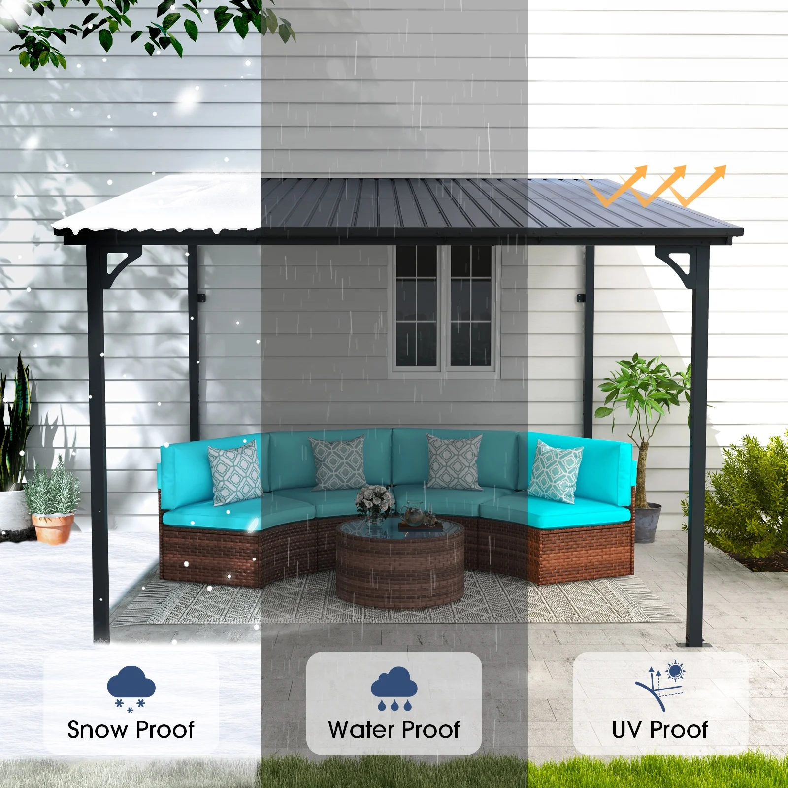 - Sturdy & Waterproof - The hard top gazebo can be securely fastened to the walls and floors, increasing stability and durability. This shade gazebo can withstand a weight of 190 pounds per square meter. The top of the gazebo is inclined and features a recessed and raised design, allowing for rapid drainage, and keeping the gazebo dry and fresh.