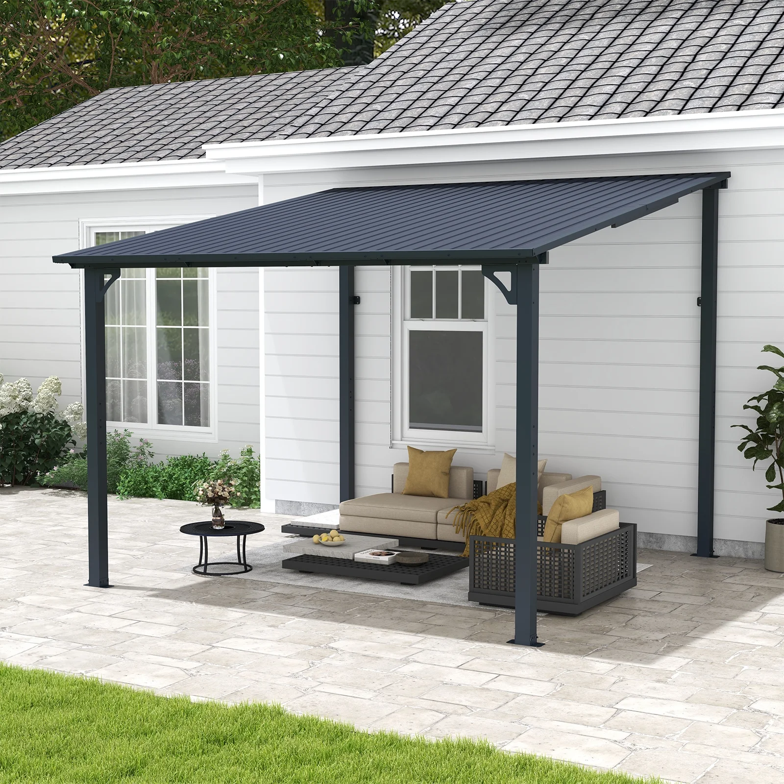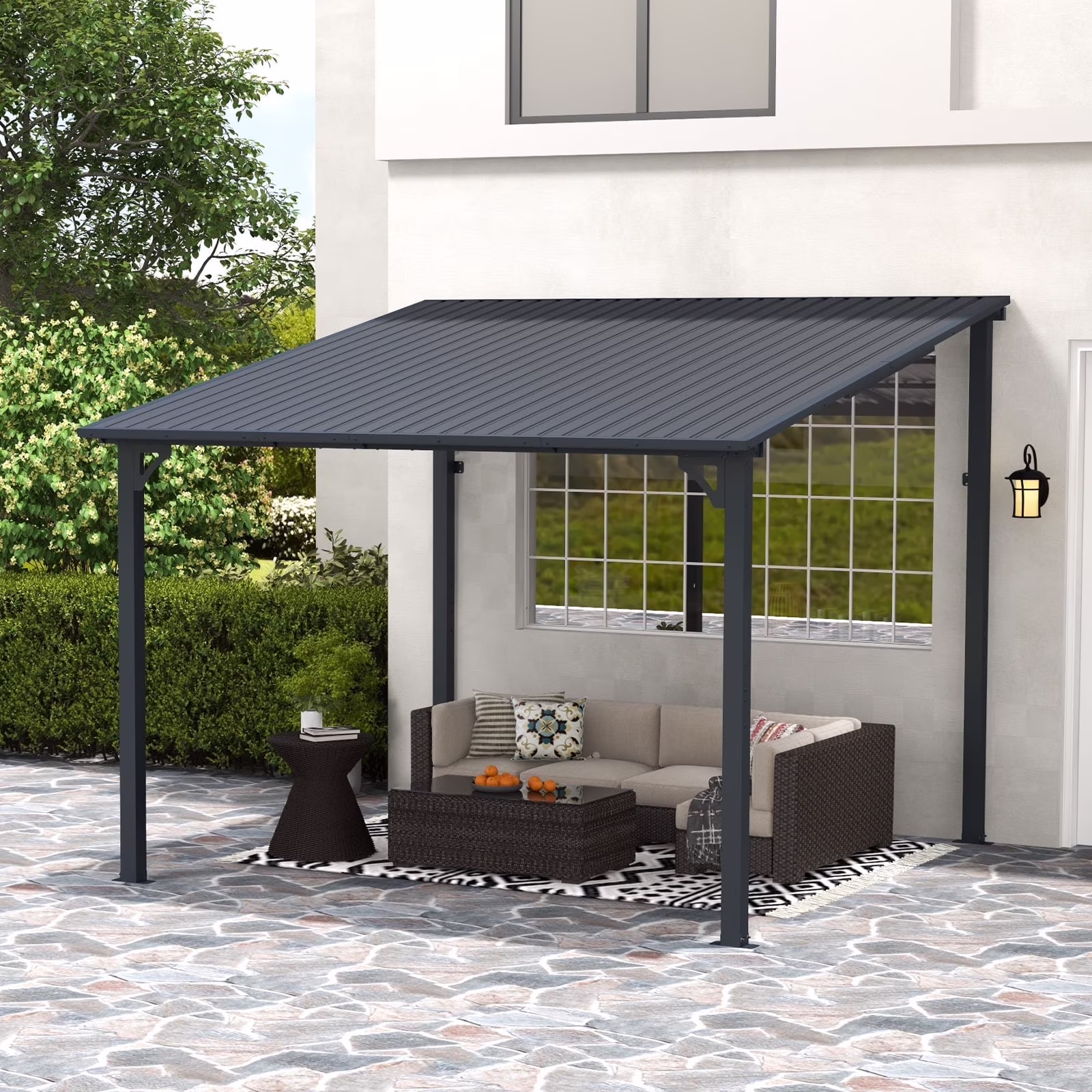 - Wall-Mounted Design - Wall-mounted heavy hardtop pergolas are suitable for installation on the side of a house, on a patio, along a porch, or for use next to a wall. Effectively blocking ultraviolet rays, it is a perfect choice for outdoor barbecue, party, or daily relaxation with your family and friends all year round.