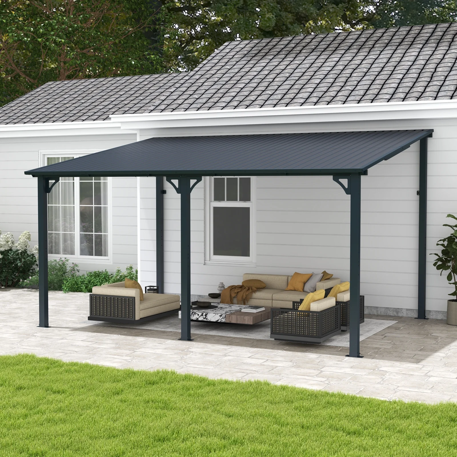 - Comprehensive Protection - Coated with a rust-resistant and extra durable powder coating. The patio pergola is resistant to flaking, peeling, rust and corrosion, better protecting you and your furniture from bad weather like rainy, windy, and snowy days.