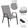 Escape the indoors and relish your outdoor living space with this Stackable Patio Chair with Flex Comfort Material. This sling chair has a streamlined look with a powder coated steel frame and a comfortable Textilene fabric material that is breathable. Create a comfortable seating arrangement with multiple chairs that are stackable up to four, for long or short-term storage. For longevity, care should be taken to protect from long periods of wet weather. Don't stay cooped up in your home get outdoors more. Pair a few chairs with a rectangular or round table to eat dinner, have drinks or play games.