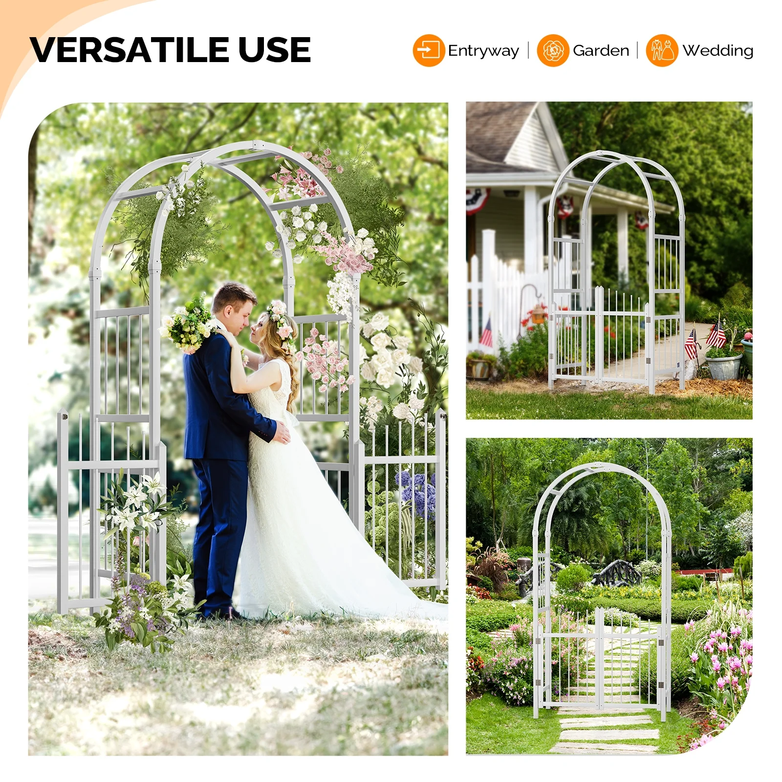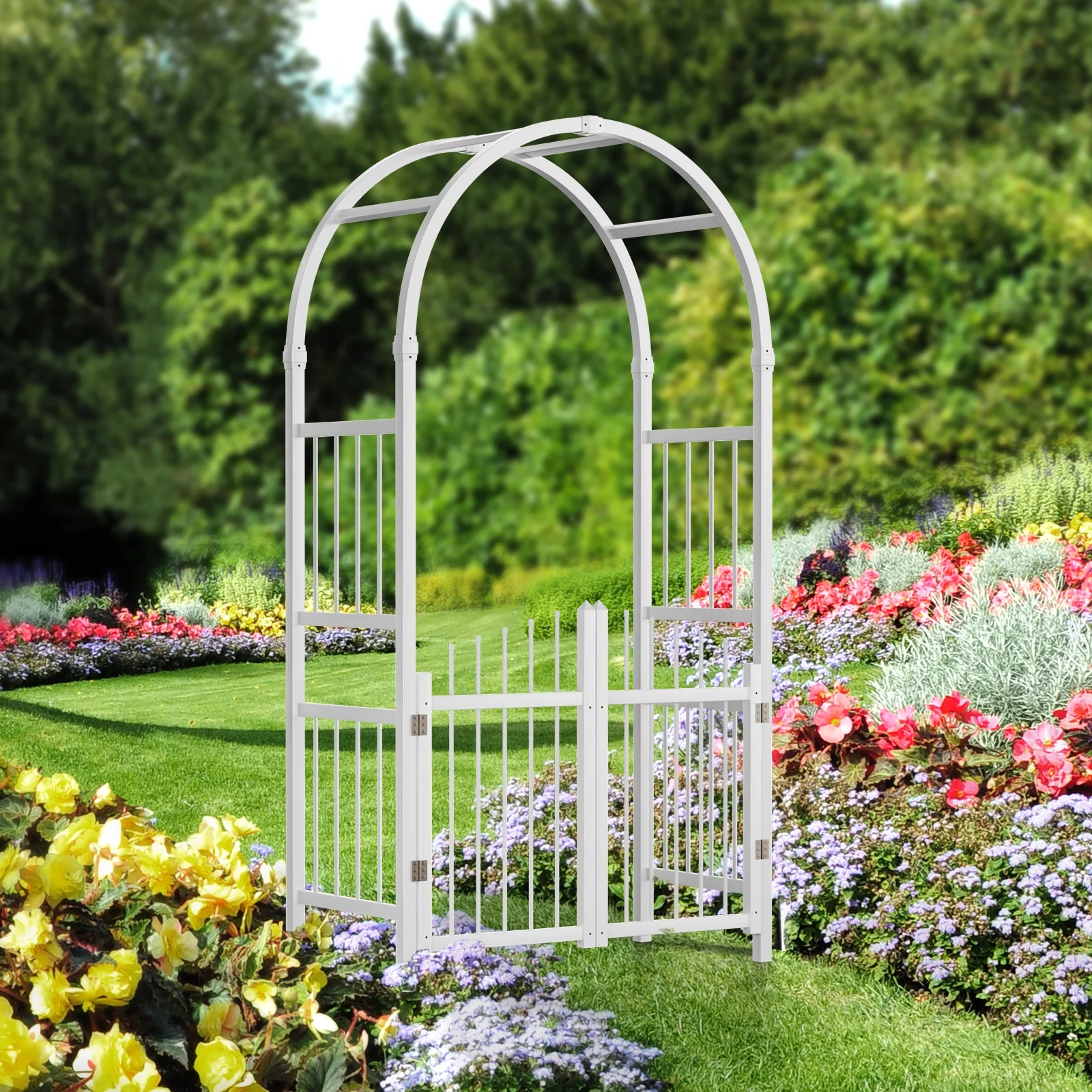 Ktaxon PVC Garden Arch 7Ft Garden Arch Arbor w/ Door for Outdoor Wedding