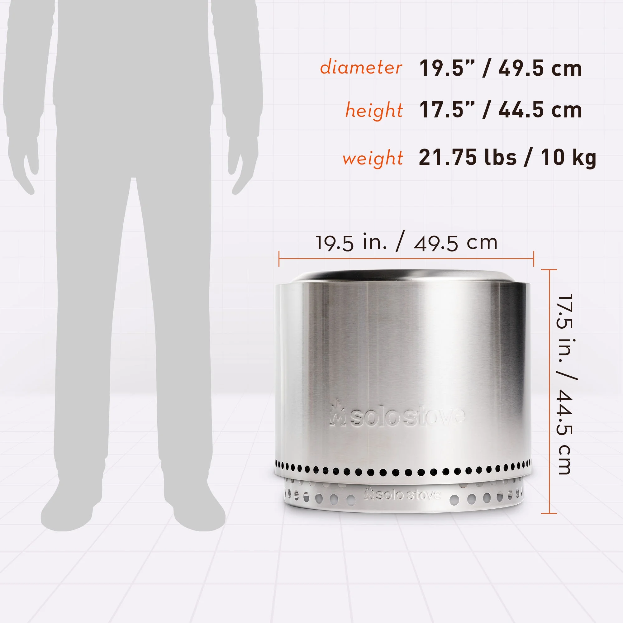 Solo Stove Bonfire 2.0 with Stand, Smokeless Fire Pit | Wood Burning Fireplaces W/ Removable Ash Pan, Portable Outdoor Firepit - for Camping, Stainless Steel, H: 16.75 in x Dia: 19.5 in, 25.1 lb