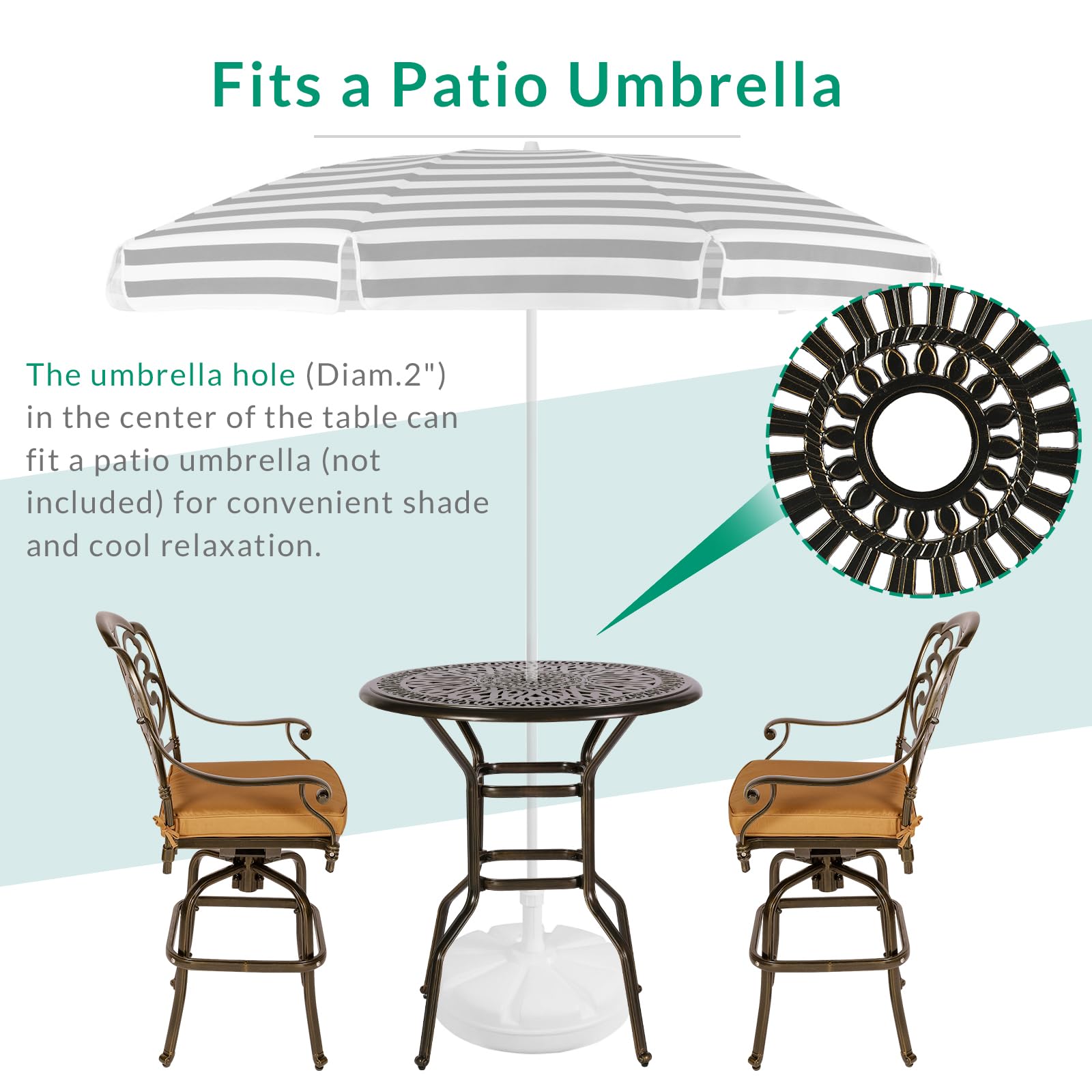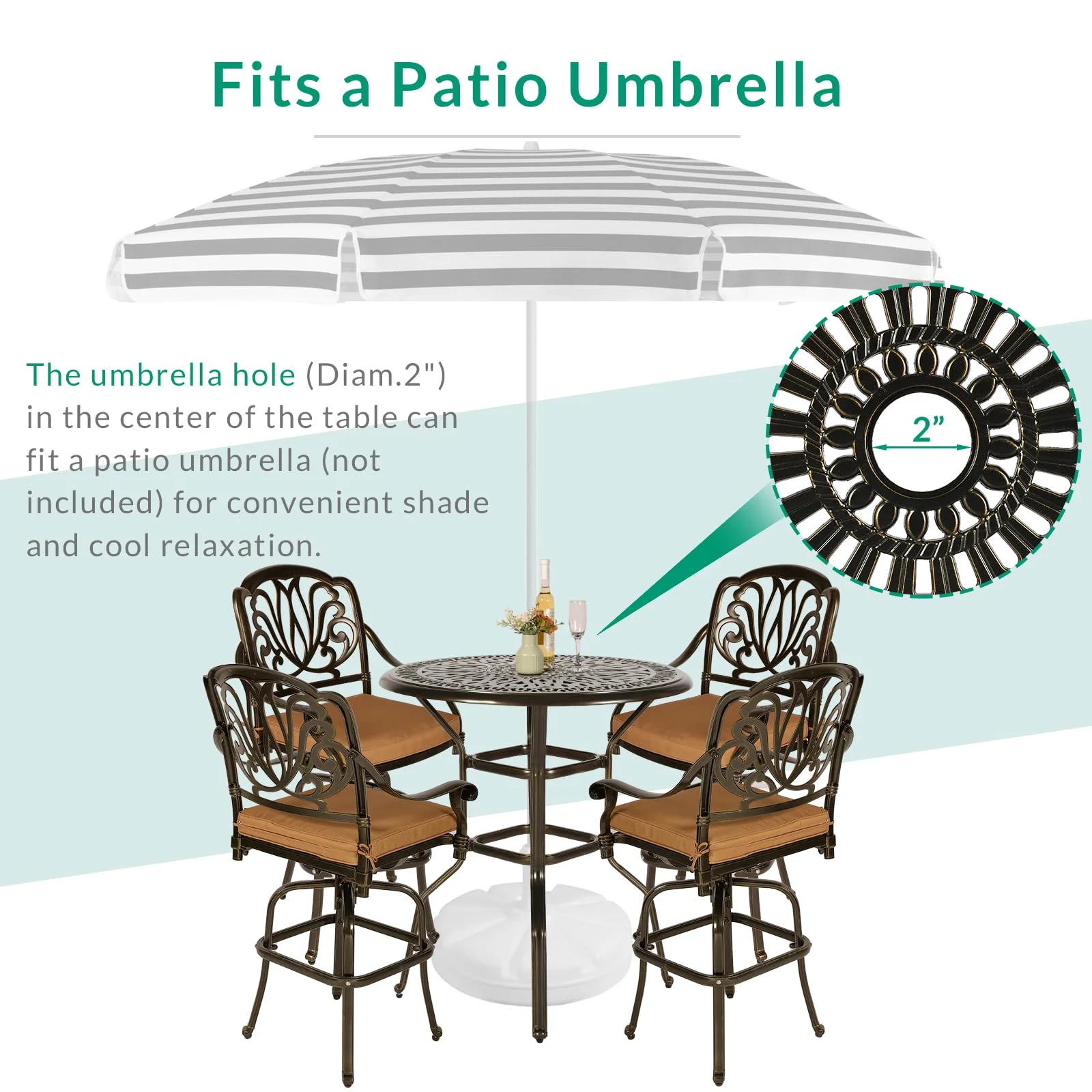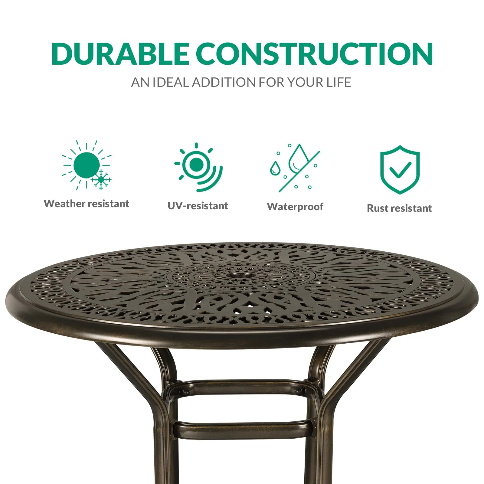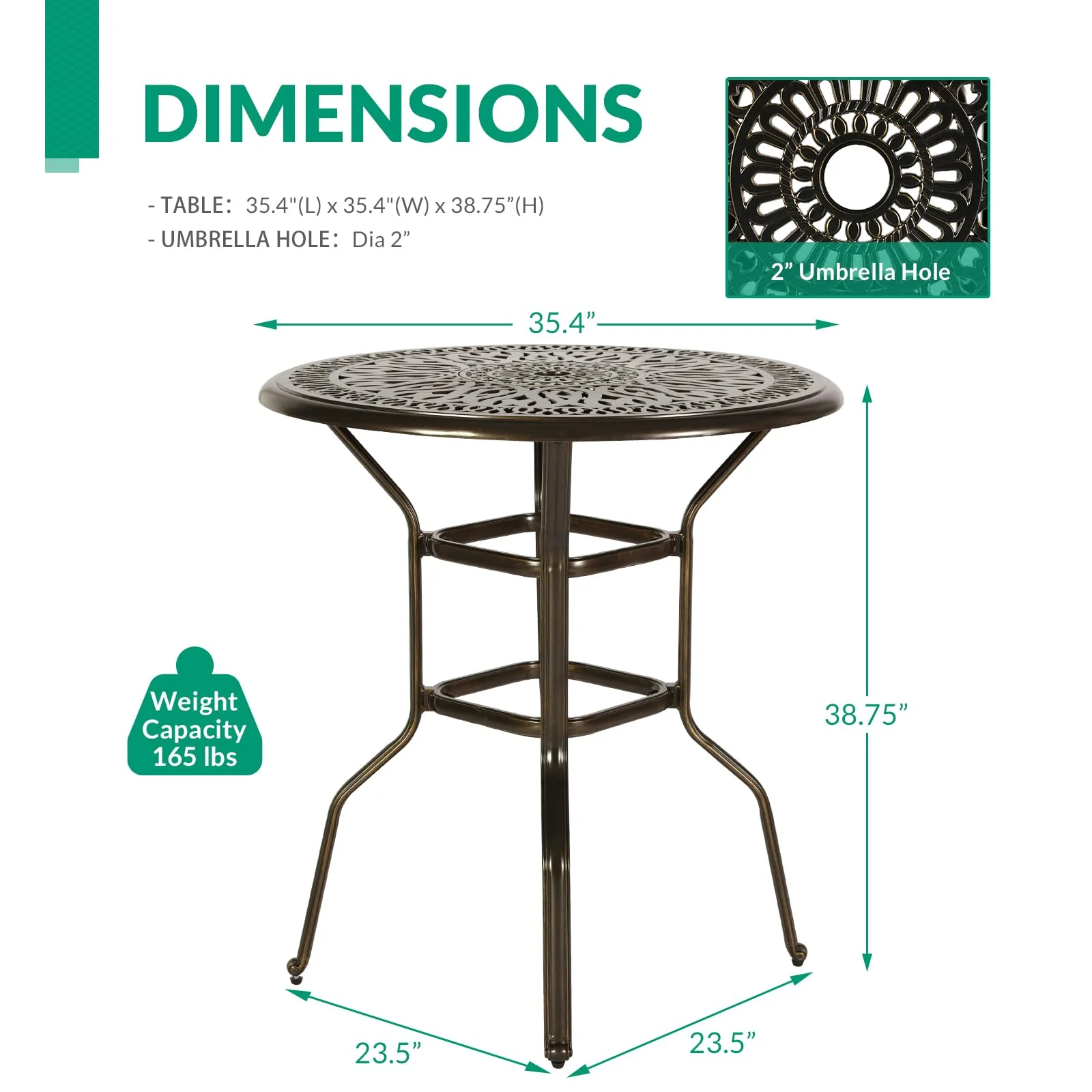 VIVIJASON 35.2" Patio Height Bar Table, All - Weather Cast Aluminum Bar Bistro Table Outdoor Patio Round Dining Table with Umbrella Hole for Balcony, Lawn, Garden, Backyard, Antique Bronze