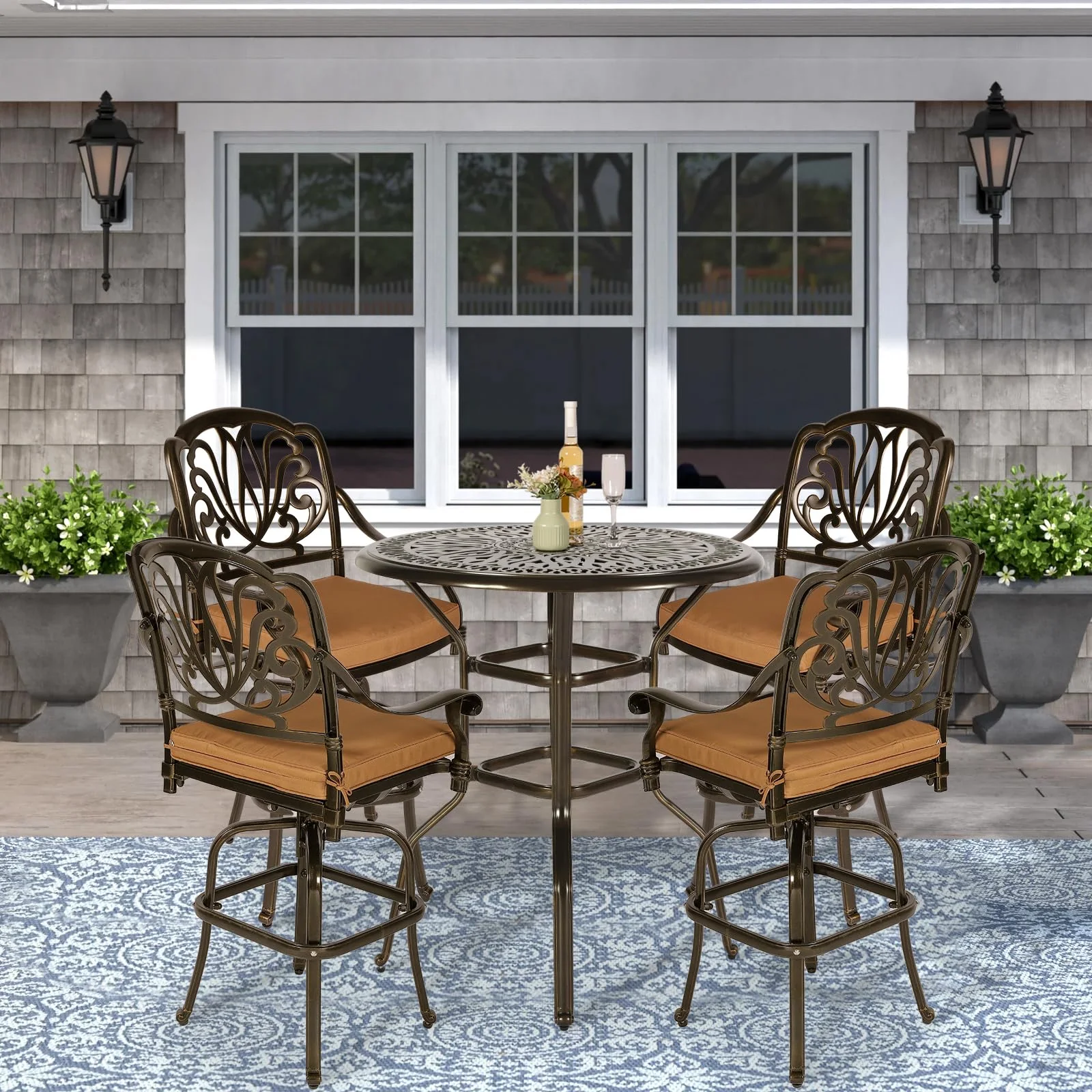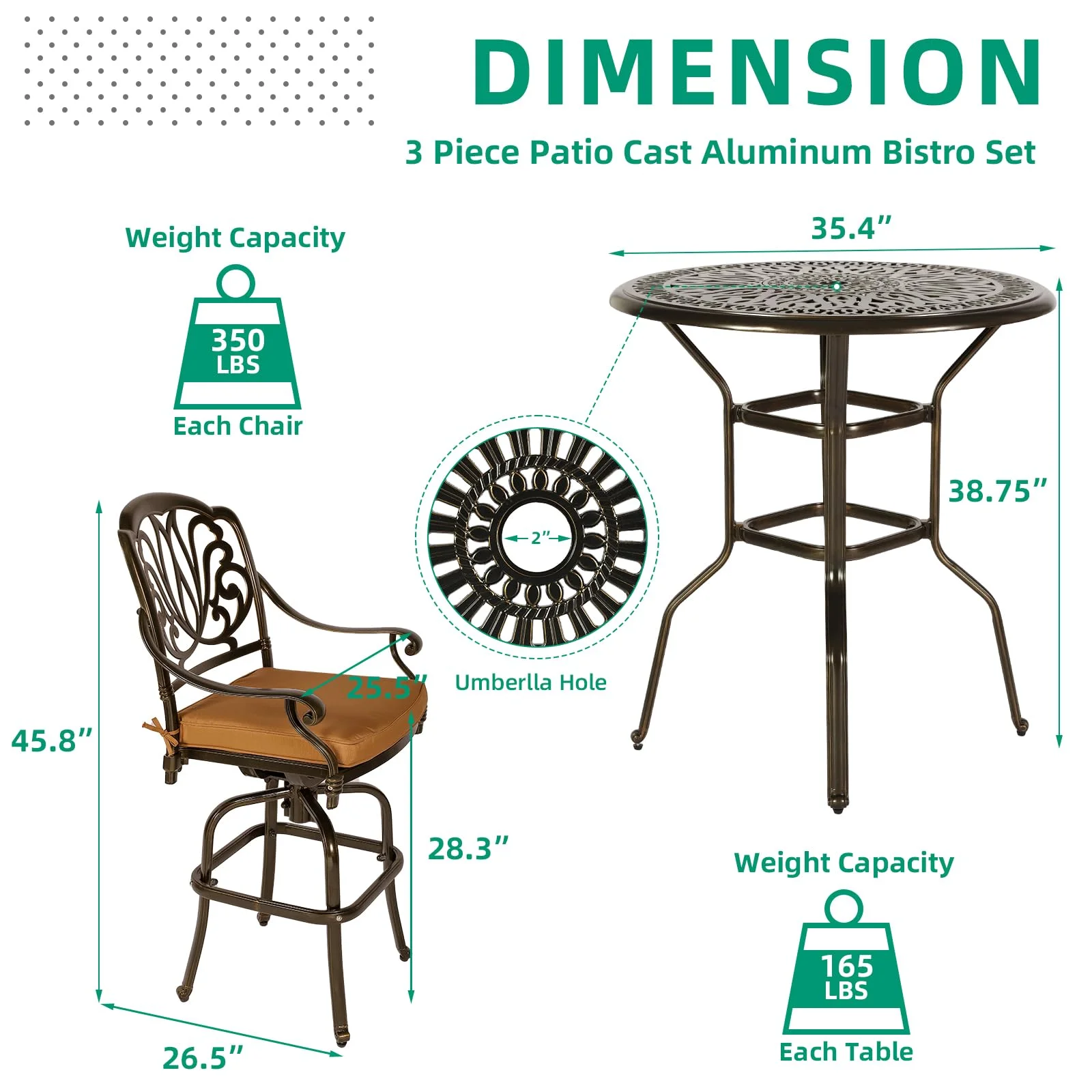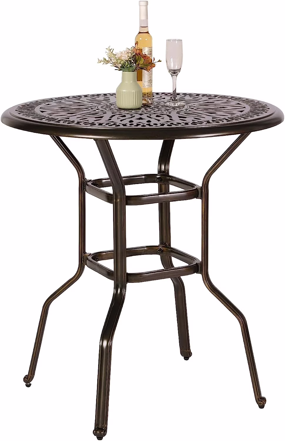 VIVIJASON 35.2" Patio Height Bar Table, All - Weather Cast Aluminum Bar Bistro Table Outdoor Patio Round Dining Table with Umbrella Hole for Balcony, Lawn, Garden, Backyard, Antique Bronze