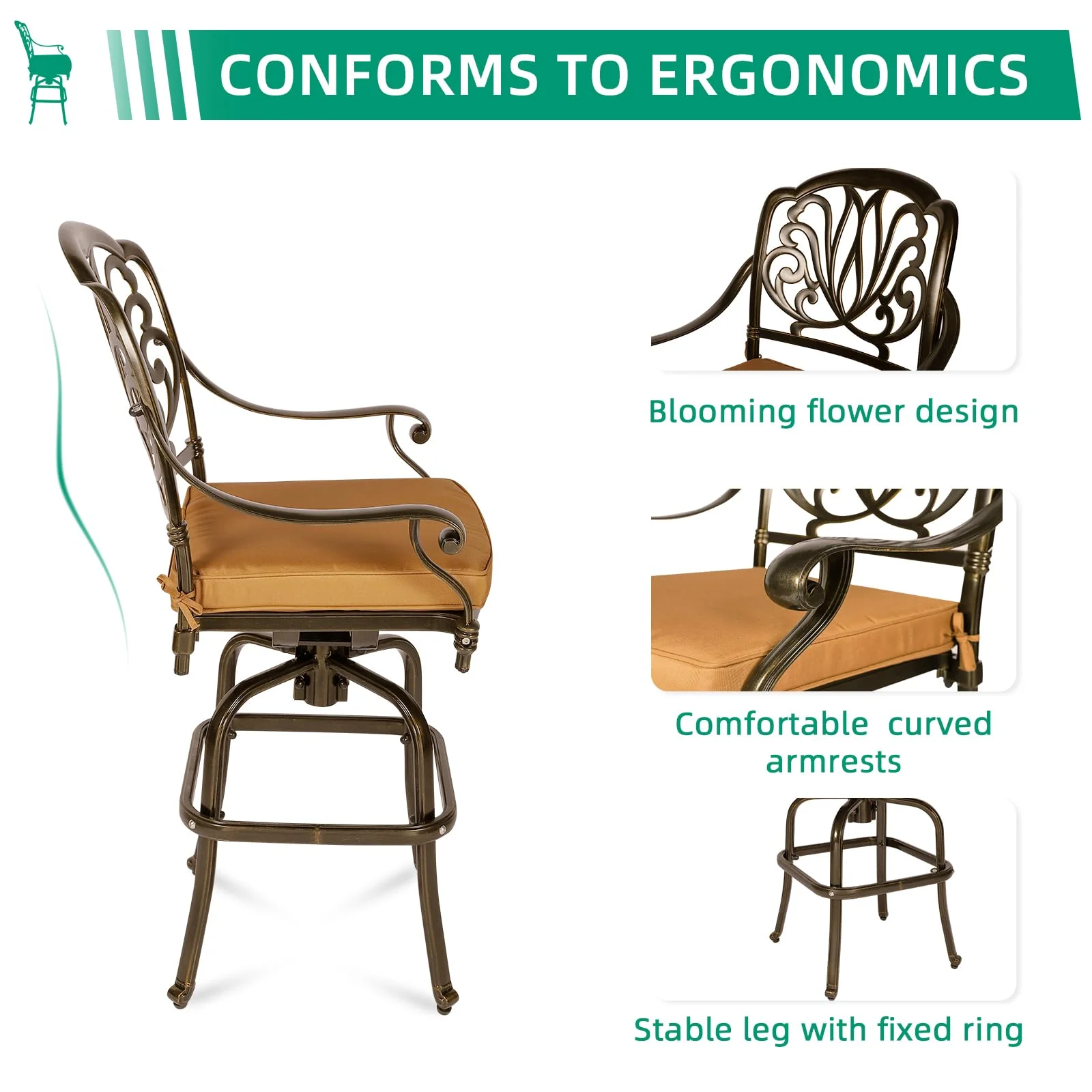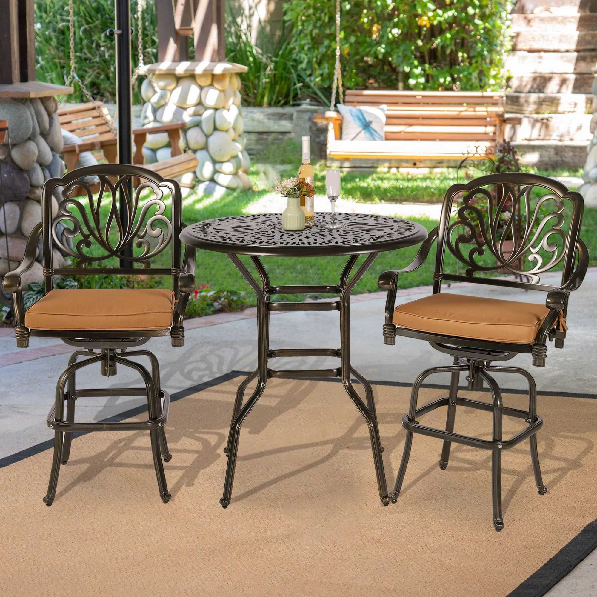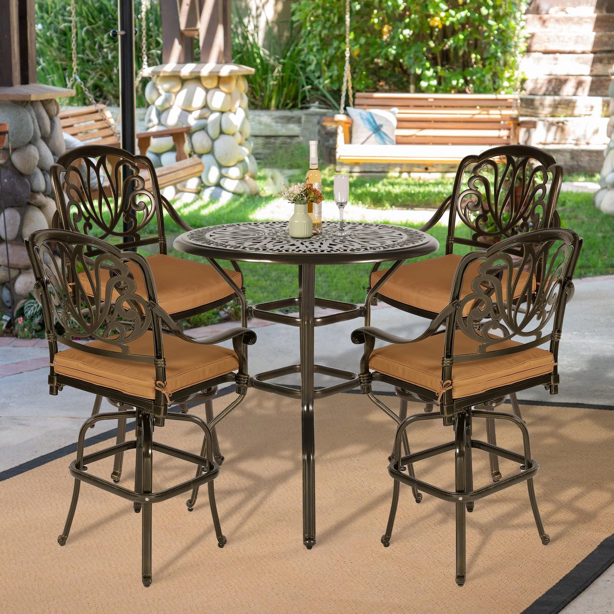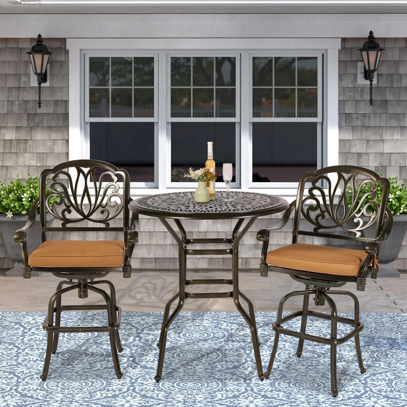 VIVIJASON 35.2" Patio Height Bar Table, All - Weather Cast Aluminum Bar Bistro Table Outdoor Patio Round Dining Table with Umbrella Hole for Balcony, Lawn, Garden, Backyard, Antique Bronze