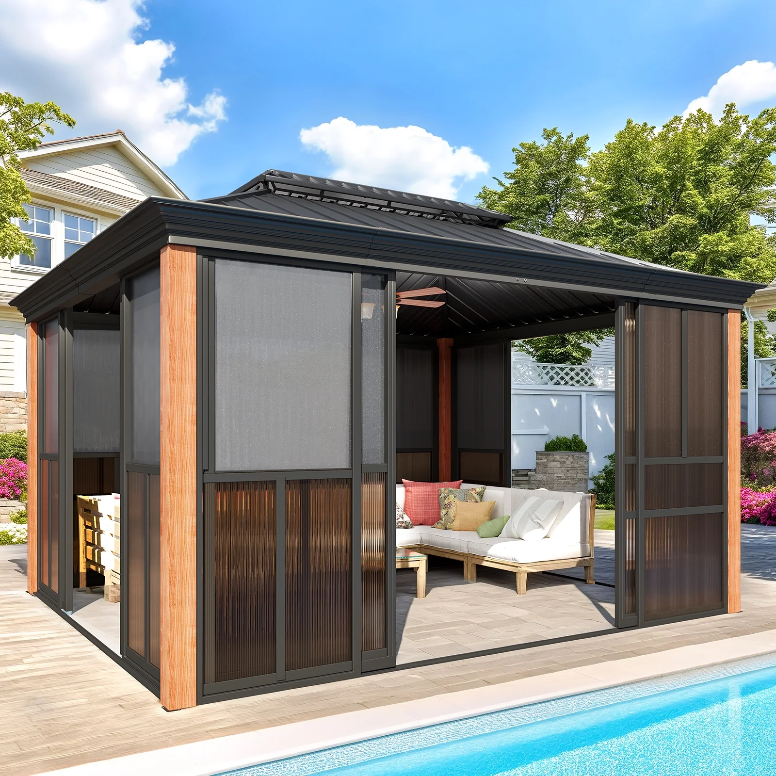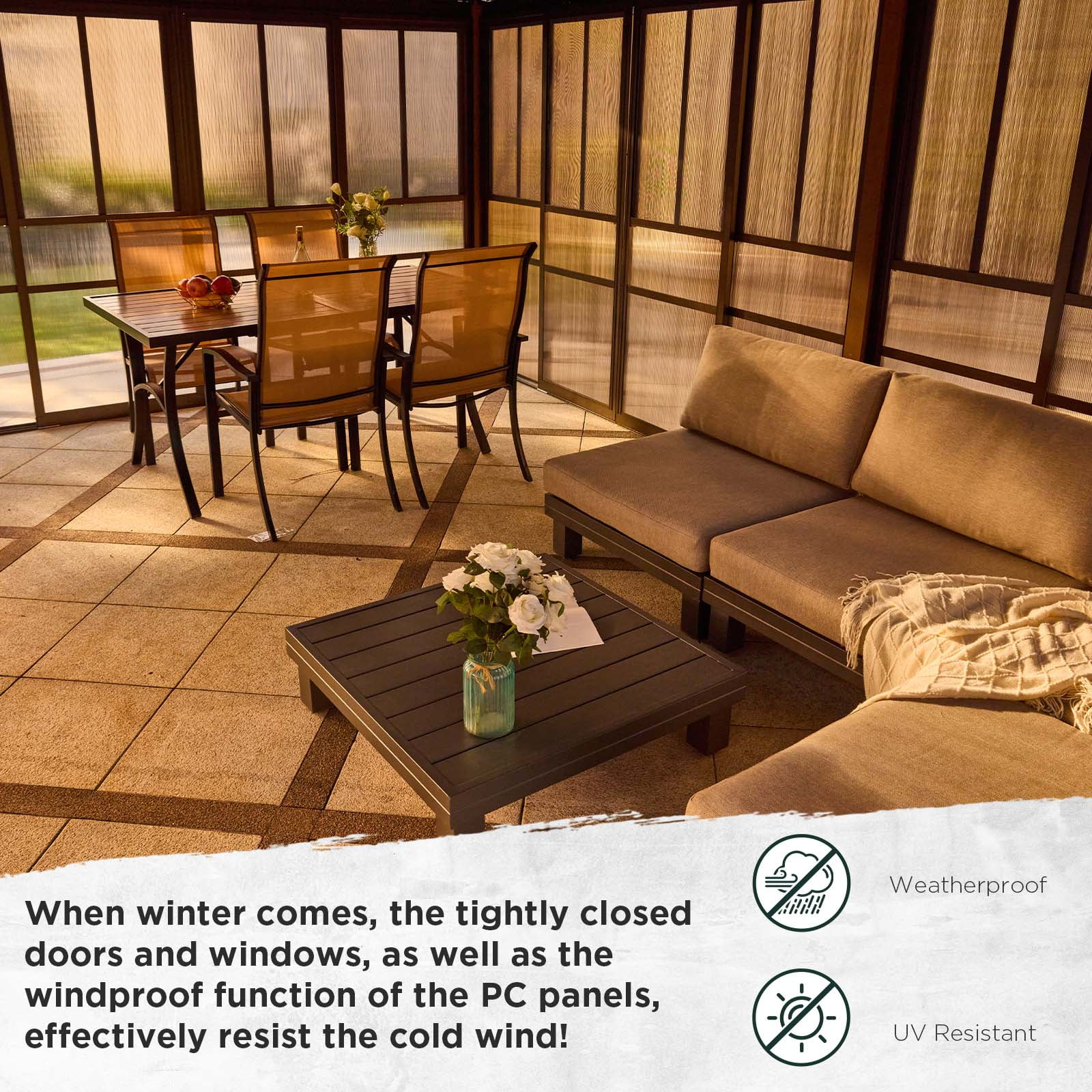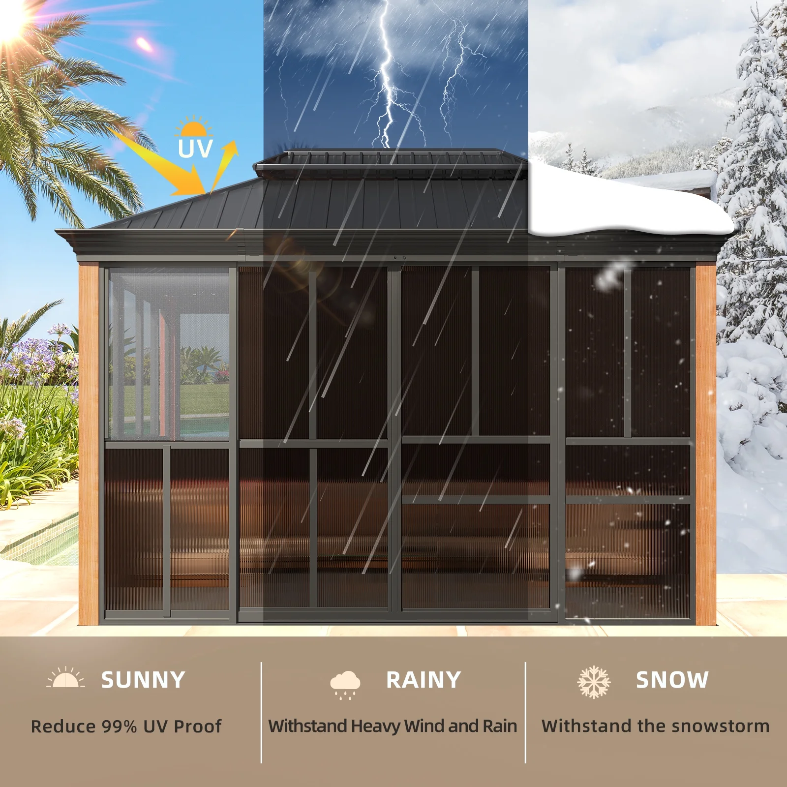 - 【Aesthetic and Durable�? Wood grain appearance enhances the beauty of the backyard sunroom; In addition, it is made of aluminum alloy with a unique aluminum frame, which also enhances wear and corrosion resistance.