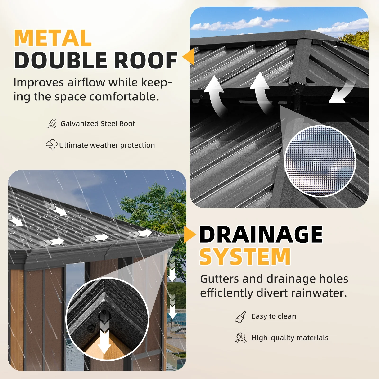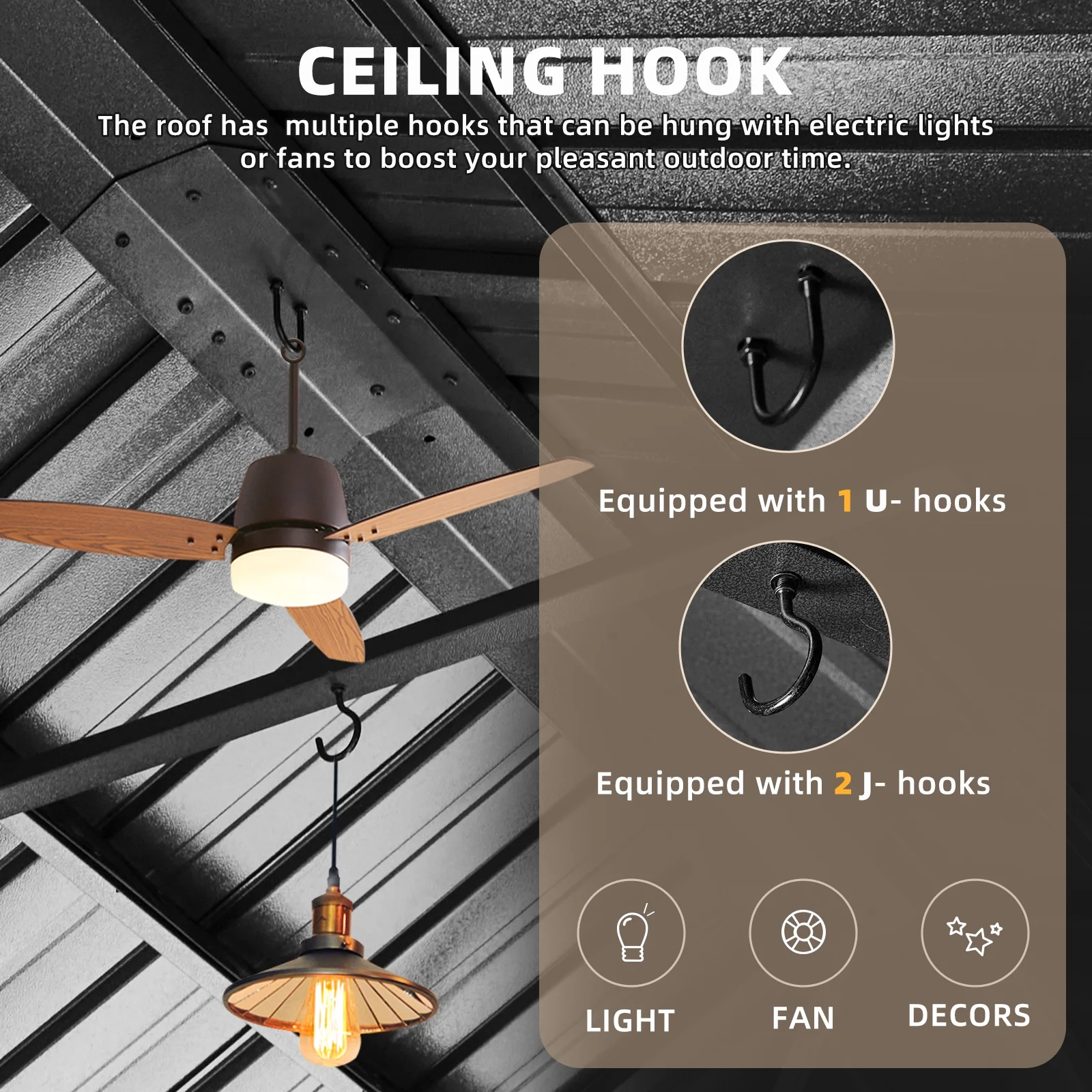 - 【Galvanized Steel Double Roof�? Sun room Made of galvanized steel, and can effectively prevent falling objects from high altitude. In addition, the double-deck design provides better insulation and ventilation to protect your time outdoors.