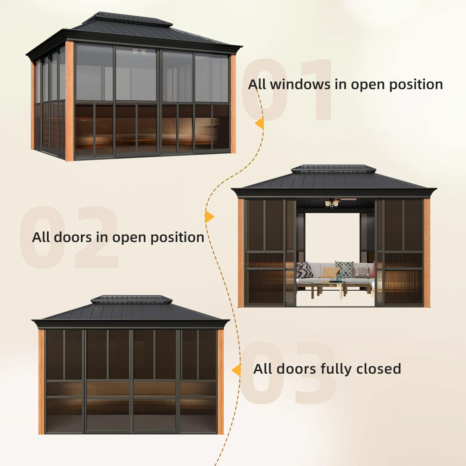 - 【Easy Access�? This 4-side sliding door design is a highlight of our solarium sunroom, allowing for easy access. Inside, there is fine mesh gauze, summer air circulation, fresh environment, outside the PC mesh wall, winter can keep warm.