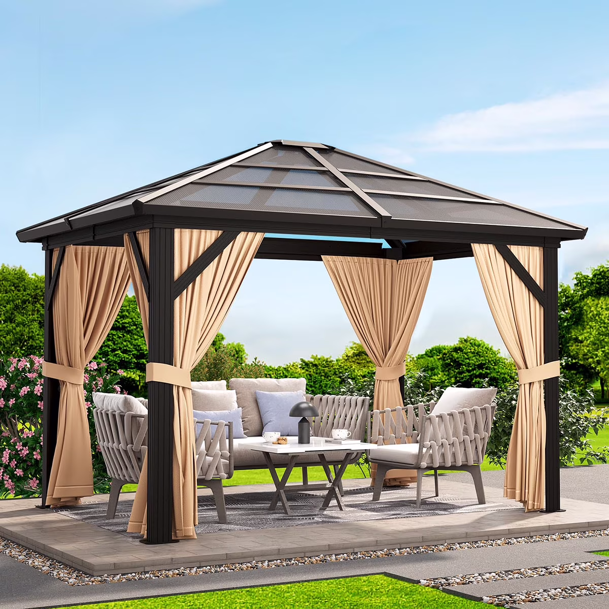- Gazebo for the Backyard - This gazebo protects you from the rain and sun, it also provides you with great privacy, providing the perfect private space for your family