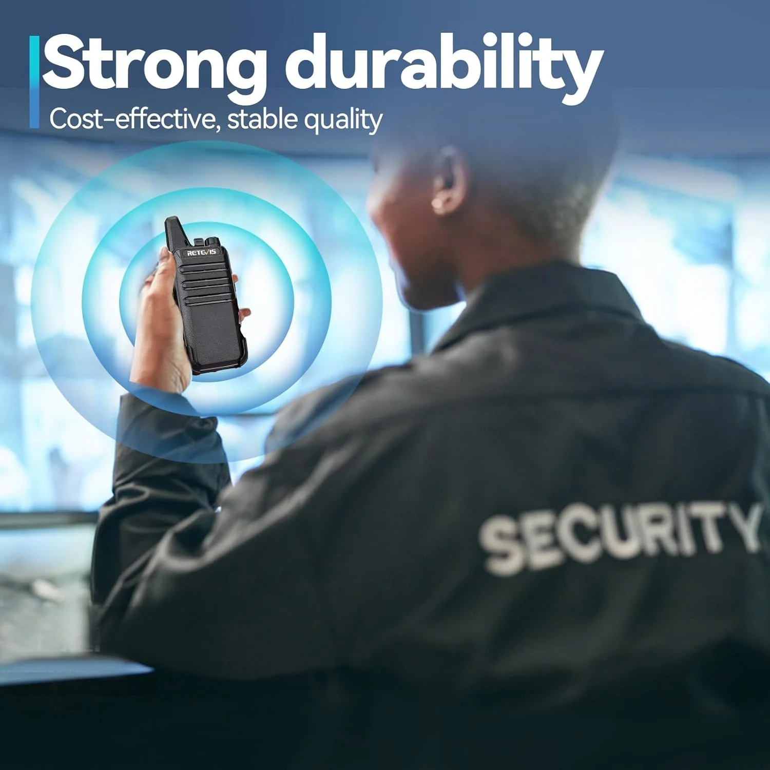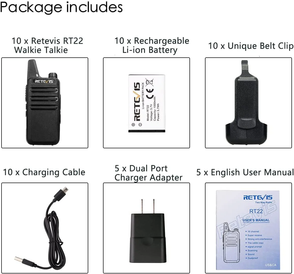 - FRS license free two way radio; extremely compact and slim for business use; featured with 16 channel; work right out of box; you don't need a license for RT22 walkie talkie