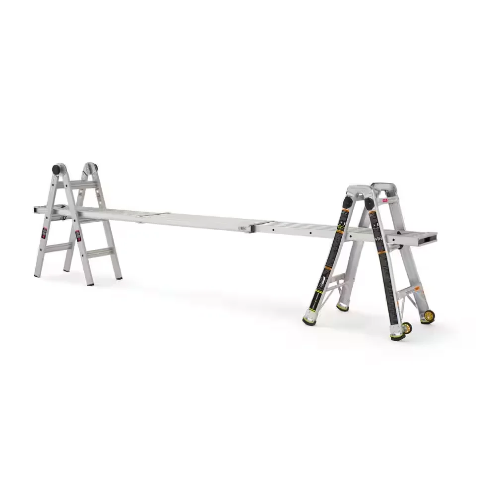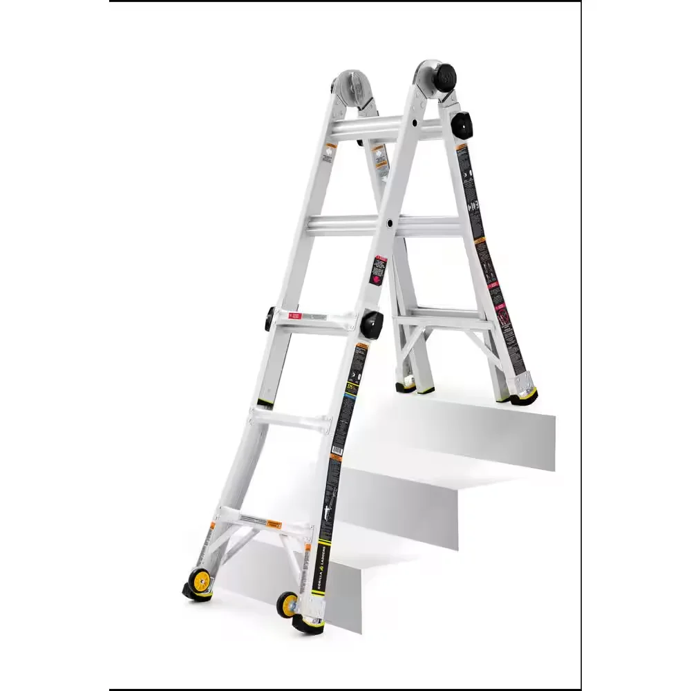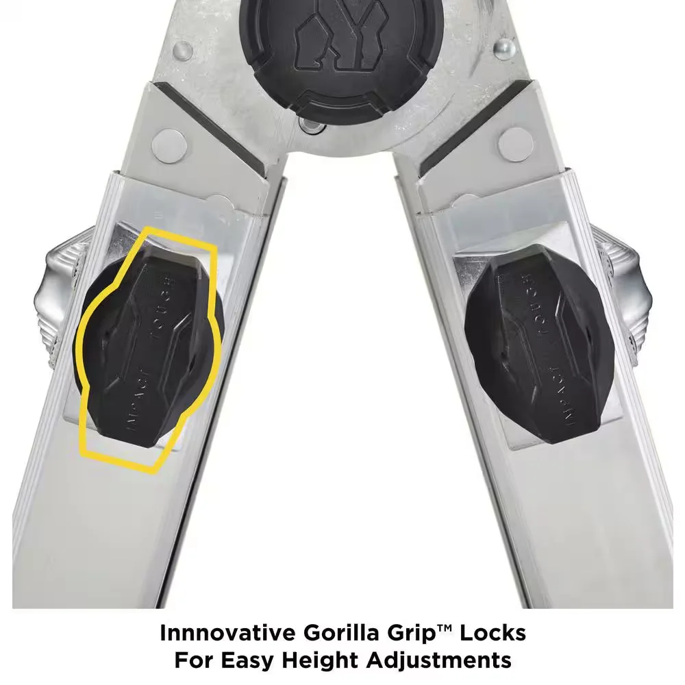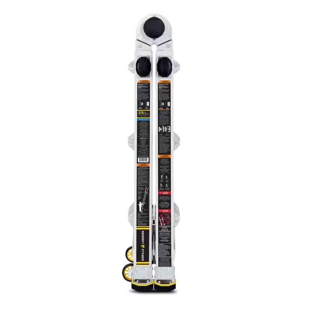 Lighter, stronger, easier - the newly designed Gorilla Ladders 14 ft. Reach MPXW Aluminum Multi-Position ladder with wheels combines versatility, safety and strength. With a 375 lb. weight capacity and telescoping adjustable heights, this ladder can be used as an extension ladder, double-sided twin step ladder, 90 ladder and a stairway step ladder. Easily adjust the height from all sides with 1-hand using the speed locks. The extra-large, heavy-duty hinges give you improved strength with less flex and sway for safer climbing, plus the built-in wheels allow the ladder to be easily transported. The innovative rail design makes this ladder lighter weight yet stronger than comparable models. This Gorilla Ladders 14 ft. Reach MPXW Multi-Position Ladder with wheels is the next generation of safe, strong, innovative, and versatile climbing products that is perfect for all your project needs.