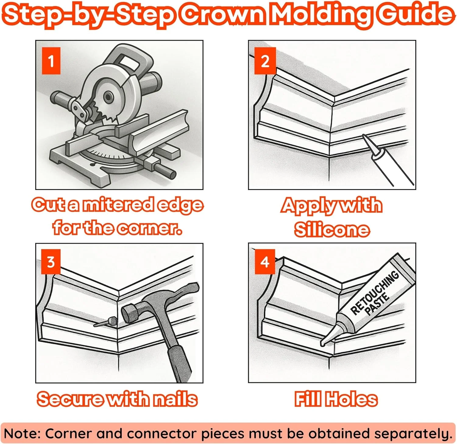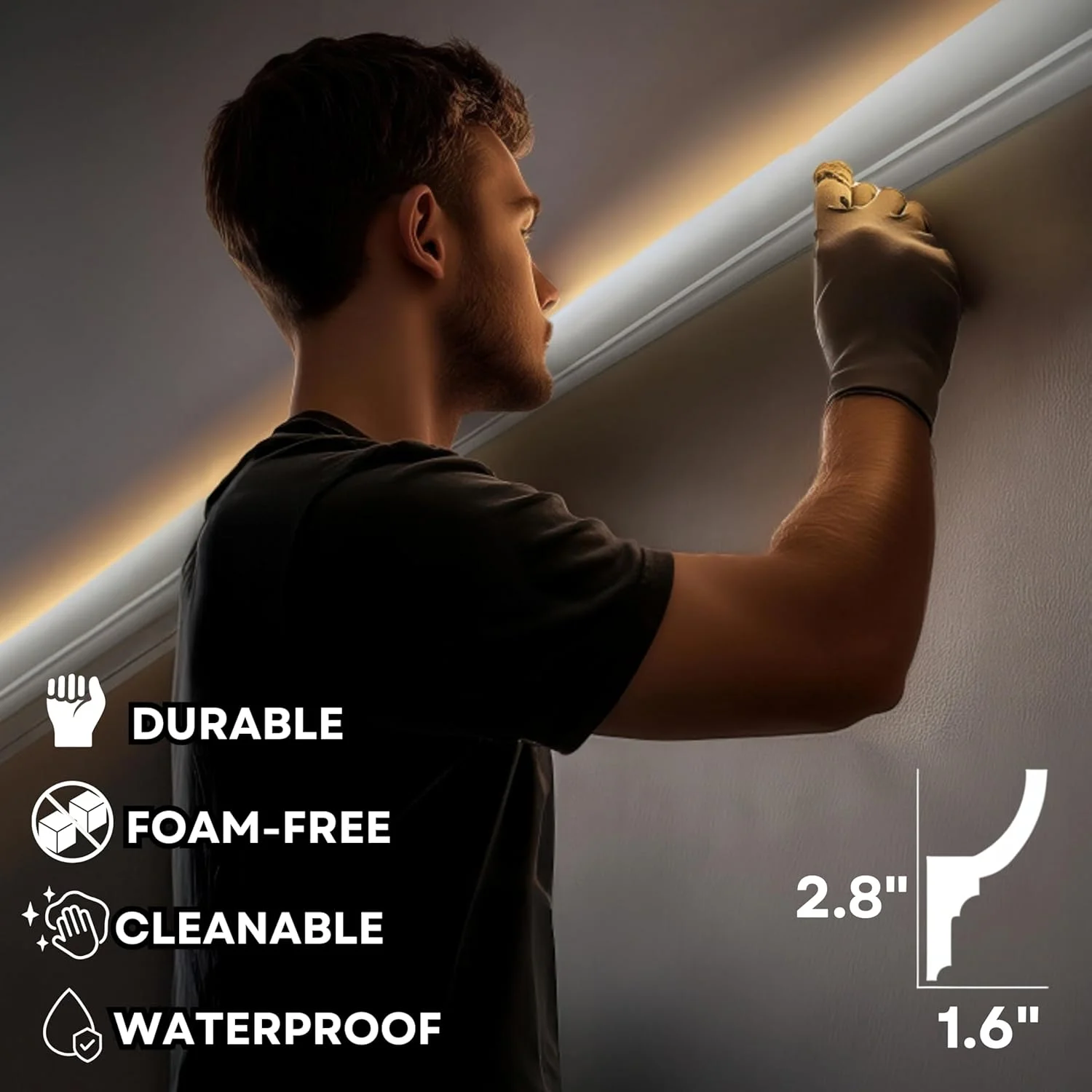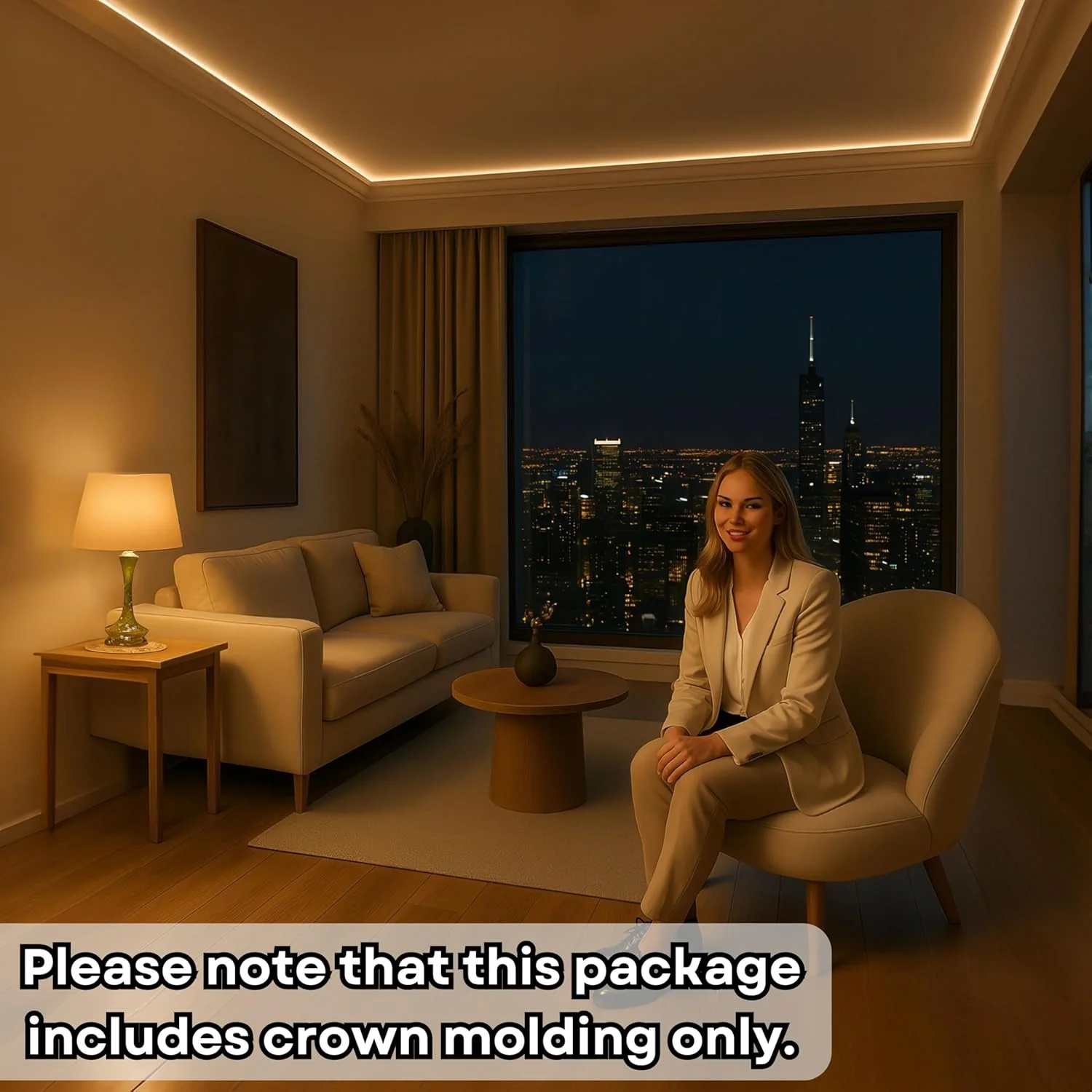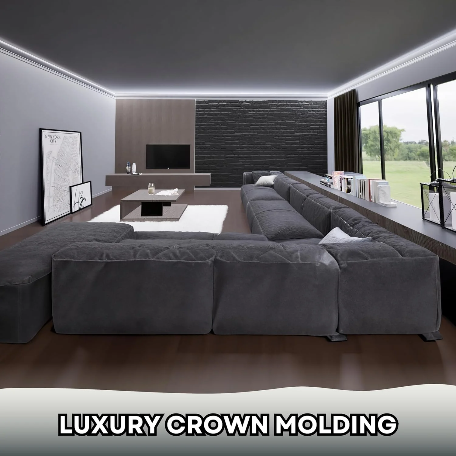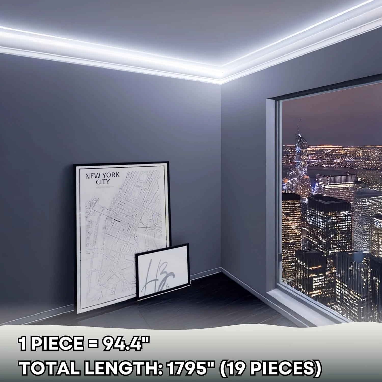 7 - Piece 94.5 (55.12 Ft) Crown Molding with Duct Kit for Seamless Ambient Home Accent Lighting | Waterproof Channel for Easy LED Strip Installation (CROWN MOLDING WITH LED DUCT)