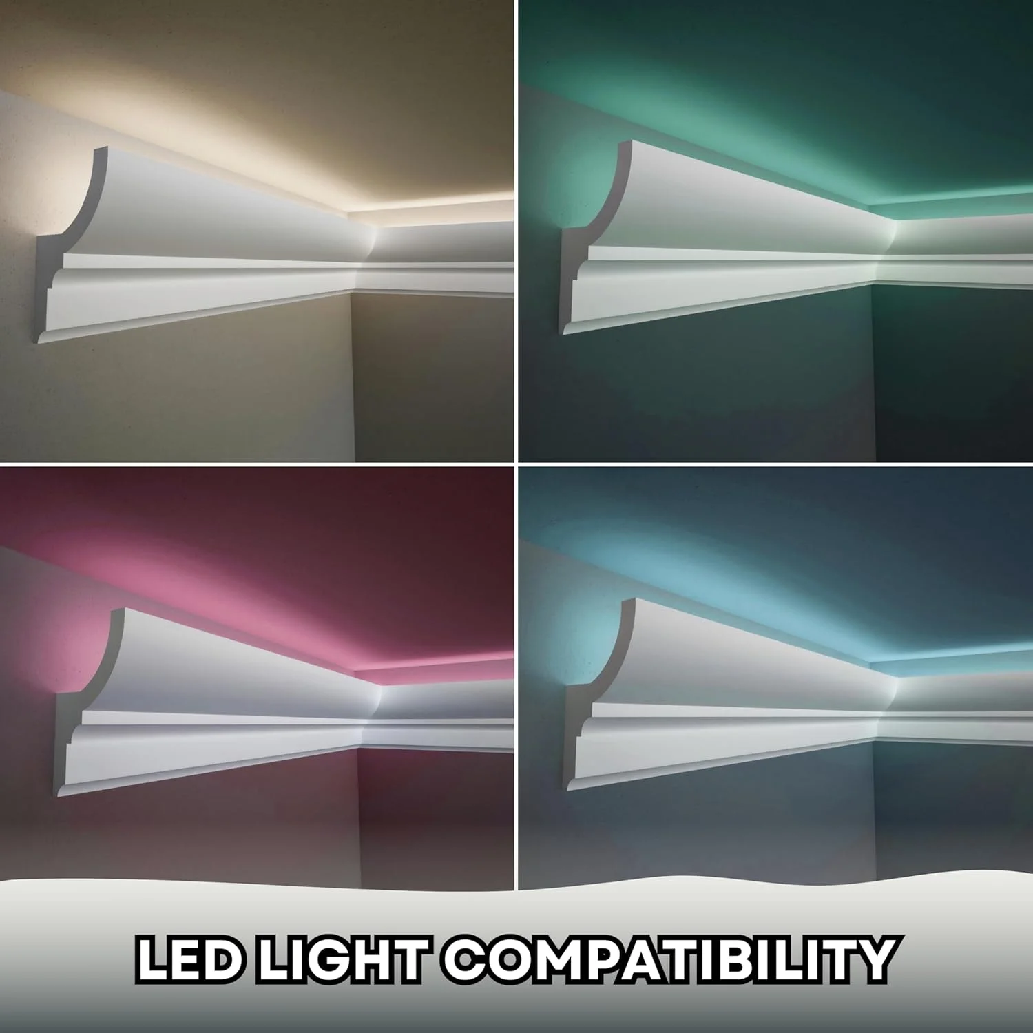 - PERFECT FOR LED LIGHT INTEGRATION IN ANY SPACE �C Whether you're upgrading to baseboards with LED lights or adding crown molding LED lights, this LED base board molding is compatible with most standard LED light strips and skirting trims.
