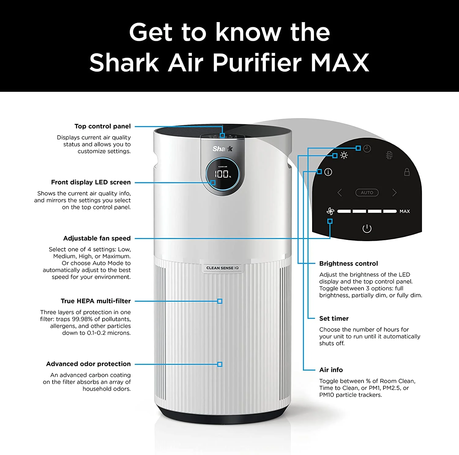 Shark Air Purifier MAX 1000 Sq Ft HEPA Air Purifier, White