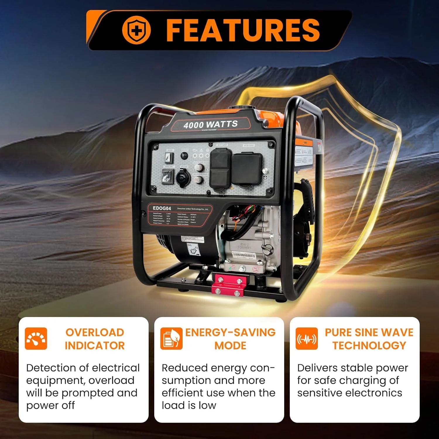 - ?4000W Inverter Generator: With 4000 peak watts and 3200 running watts, Efurden inverter generator effortlessly supports RV air conditioners, refrigerators, essential home appliances during outages, job site tools, and all your outdoor adventures.