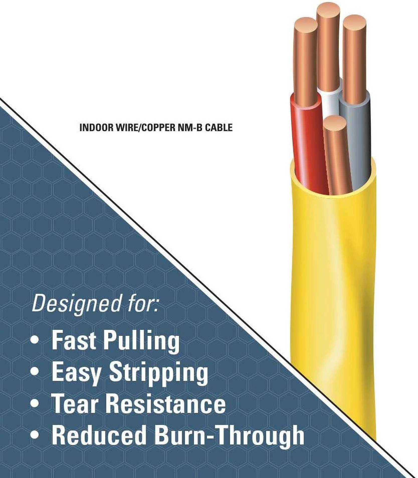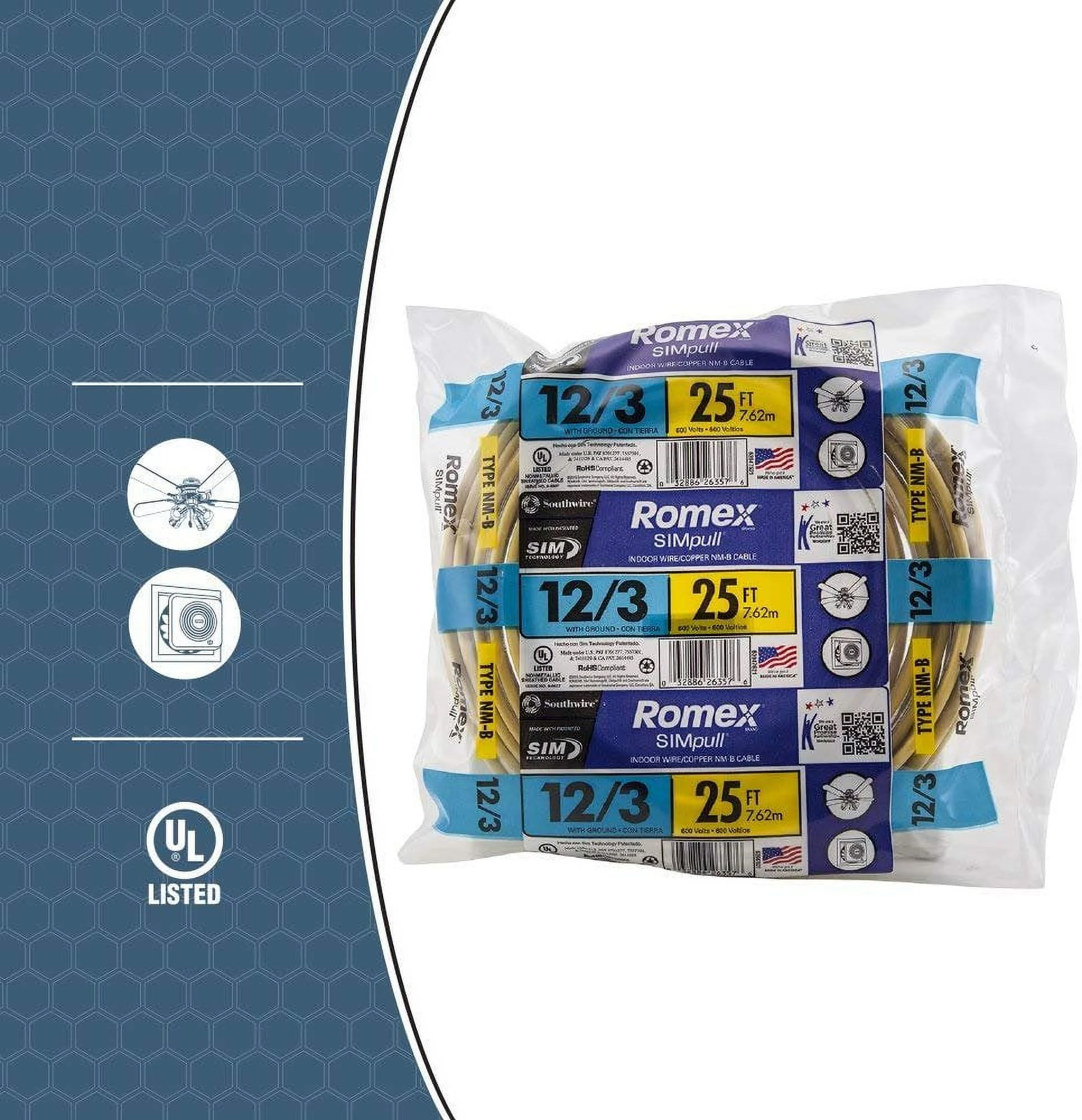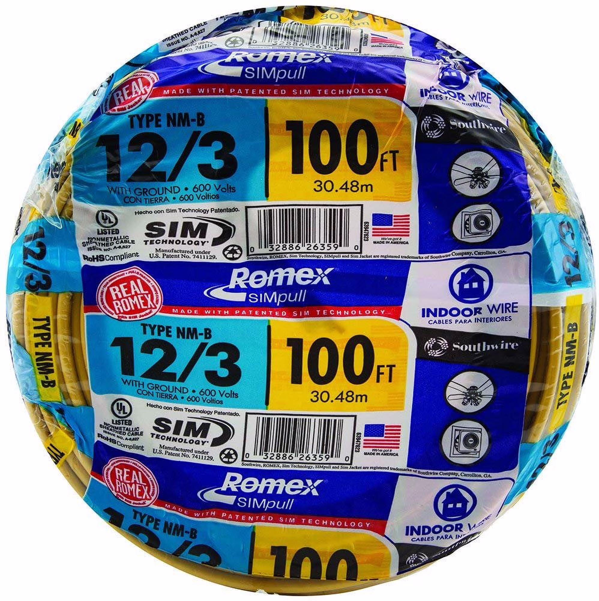 - 12 gauge, 3 conductors with ground, 100' per coil