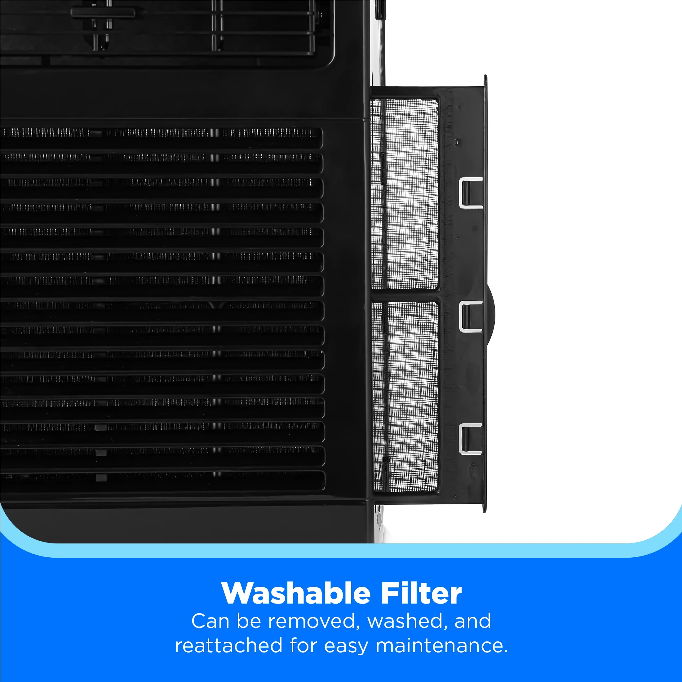 - Easy Maintenance: Clean filter light indicates when the filter needs to be removed and washed