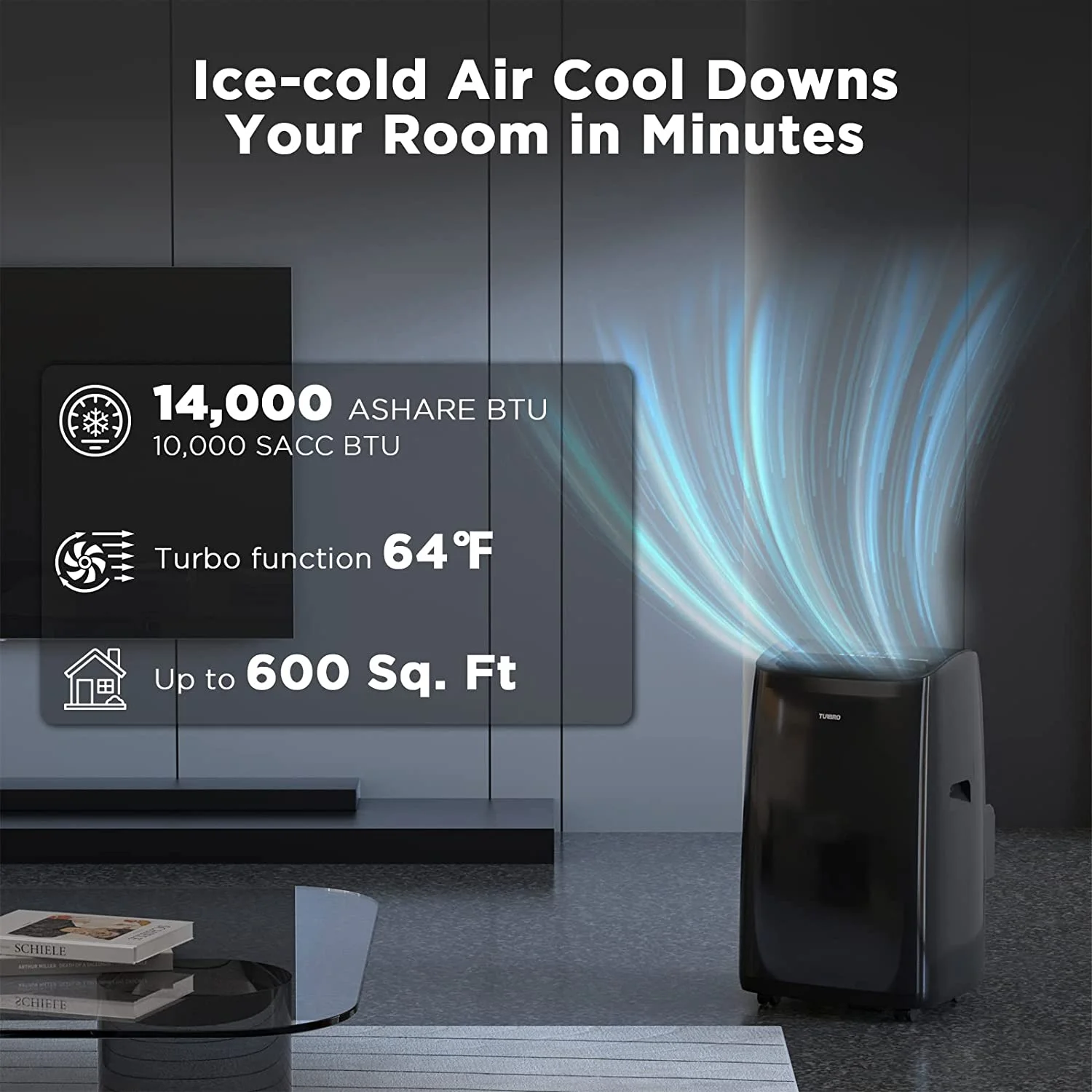 TURBRO 14, 000 BTU Smart WiFi Portable Air Conditioner, Powerful Cooling up to 600 Sq Ft, 3 in 1 Functions with Backlit Remote, Supports Alexa Voice Control, Easy Installation, Greenland Series, Black
